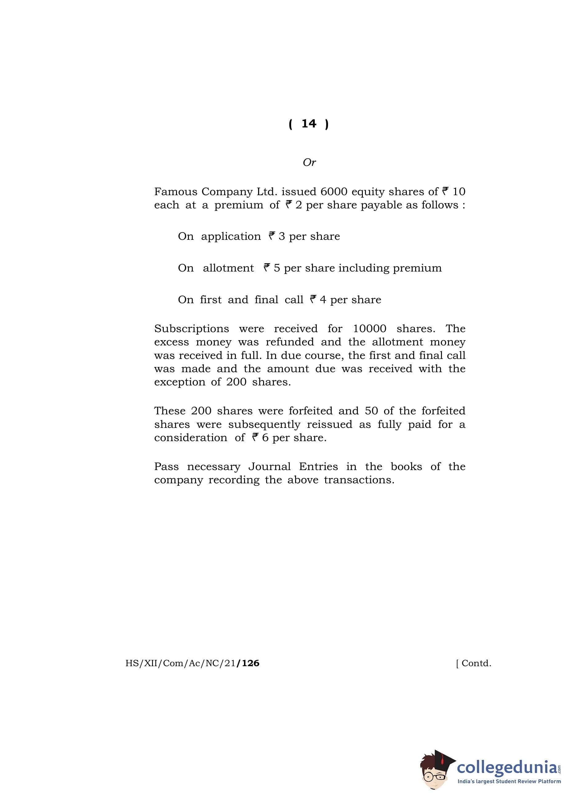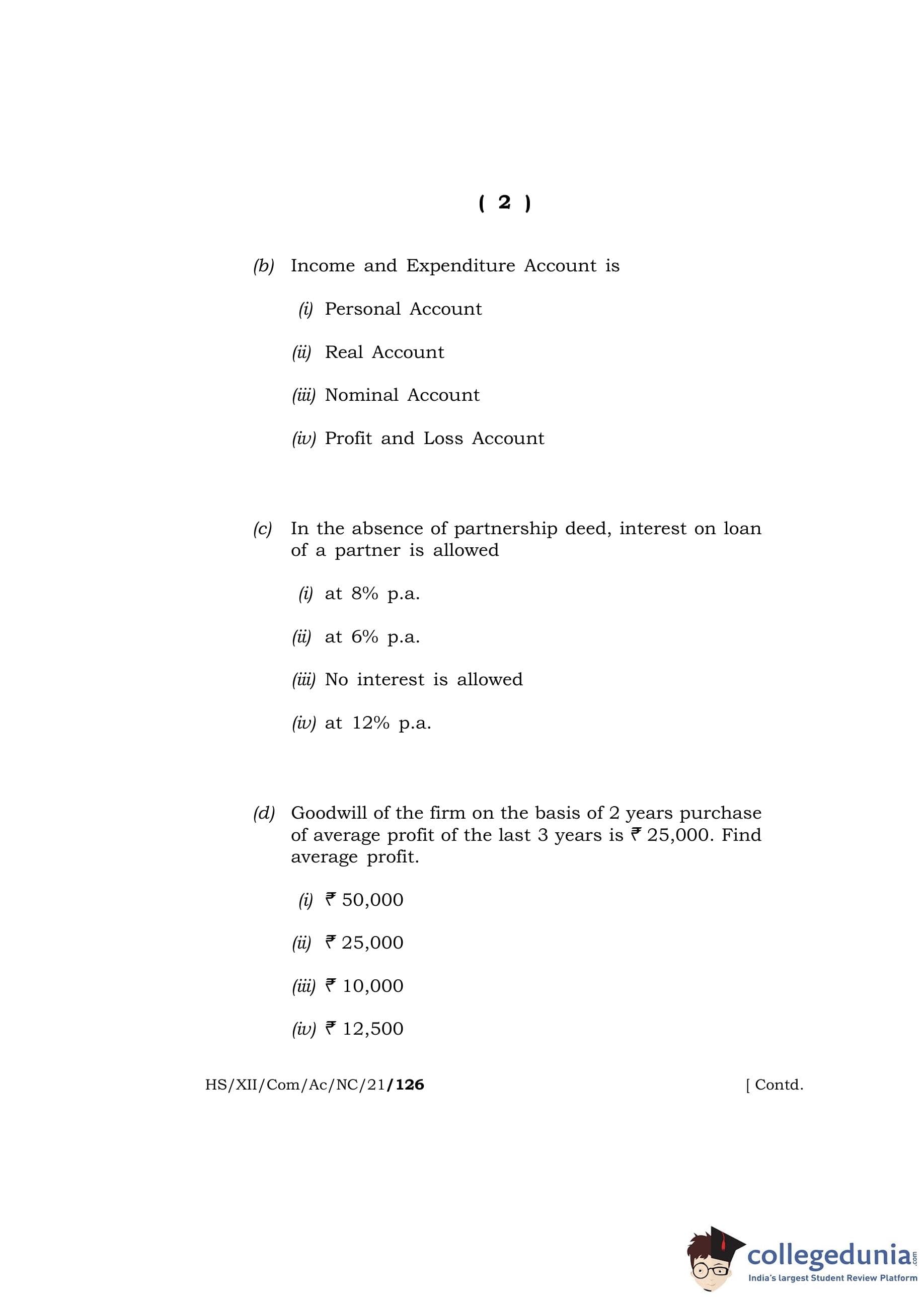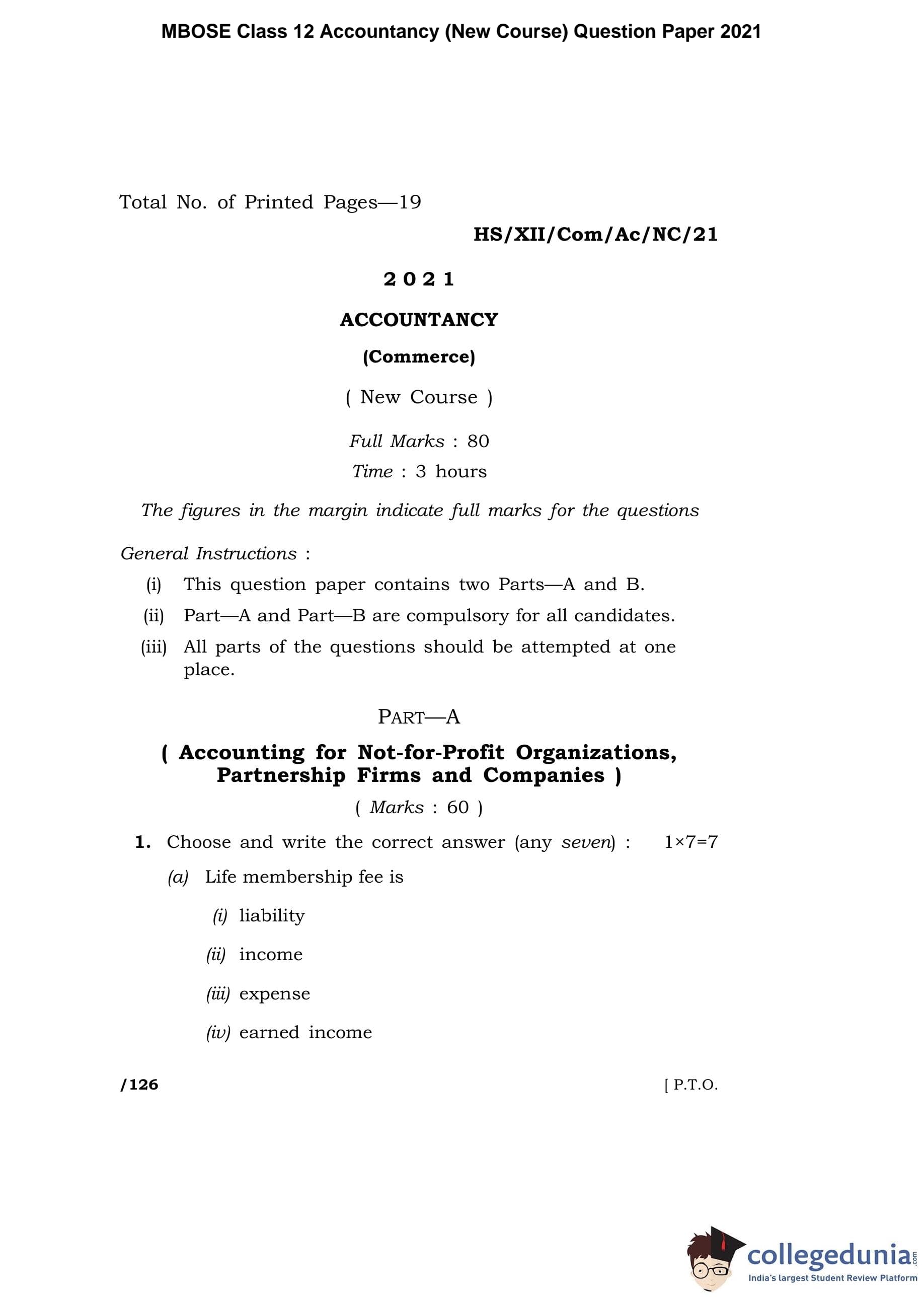 MBOSE Class 12 Accountancy Question Paper 2021 with Answer Key pdf is available for download here. The exam was conducted by Meghalaya Board of School Education on April 23, 2021 in the Morning Session 10 AM to 1 PM. The question paper comprised a total of 18 questions divided among 2 sections.