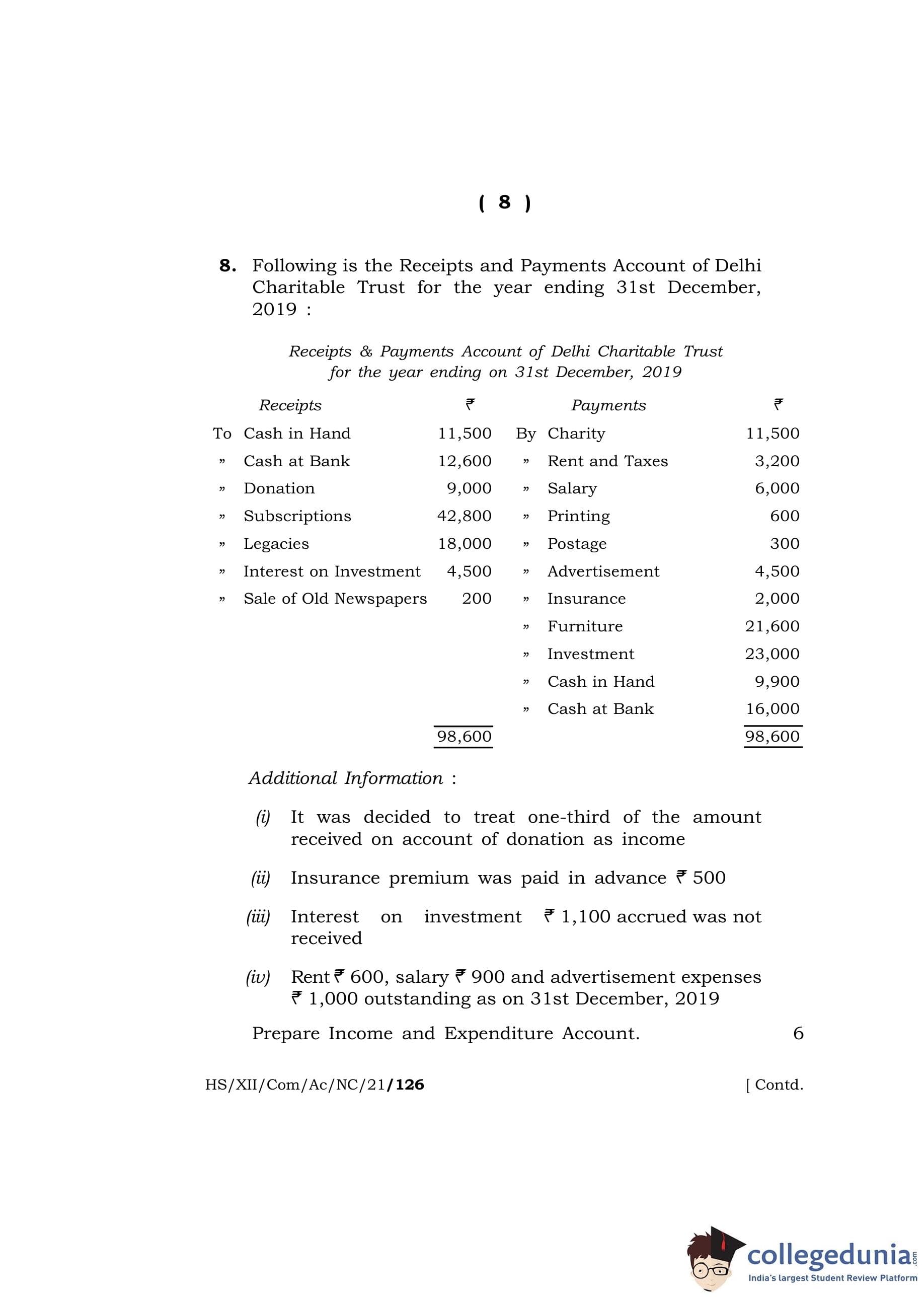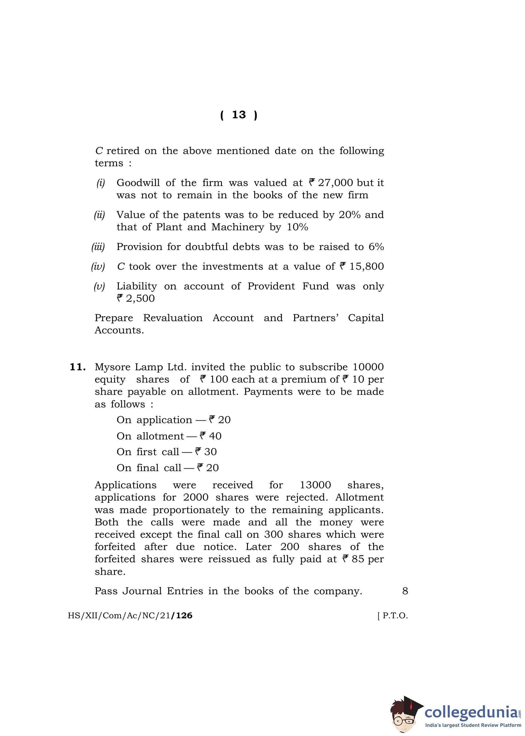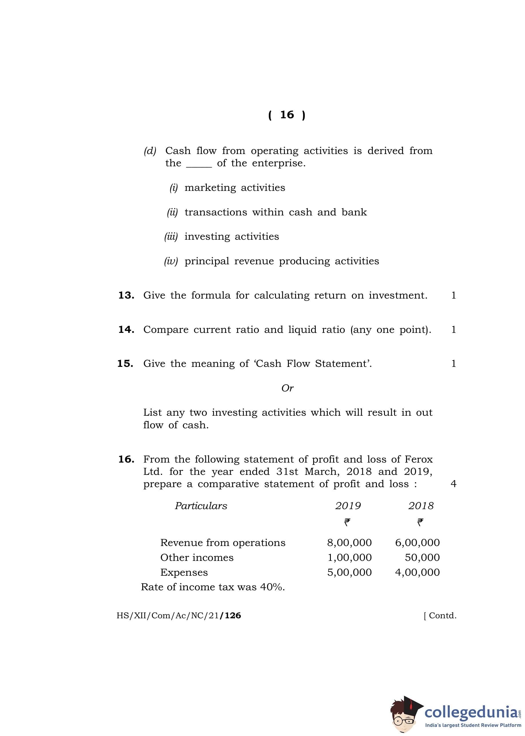 MBOSE Class 12 Accountancy Question Paper 2021 with Answer Key pdf is available for download here. The exam was conducted by Meghalaya Board of School Education on April 23, 2021 in the Morning Session 10 AM to 1 PM. The question paper comprised a total of 18 questions divided among 2 sections.