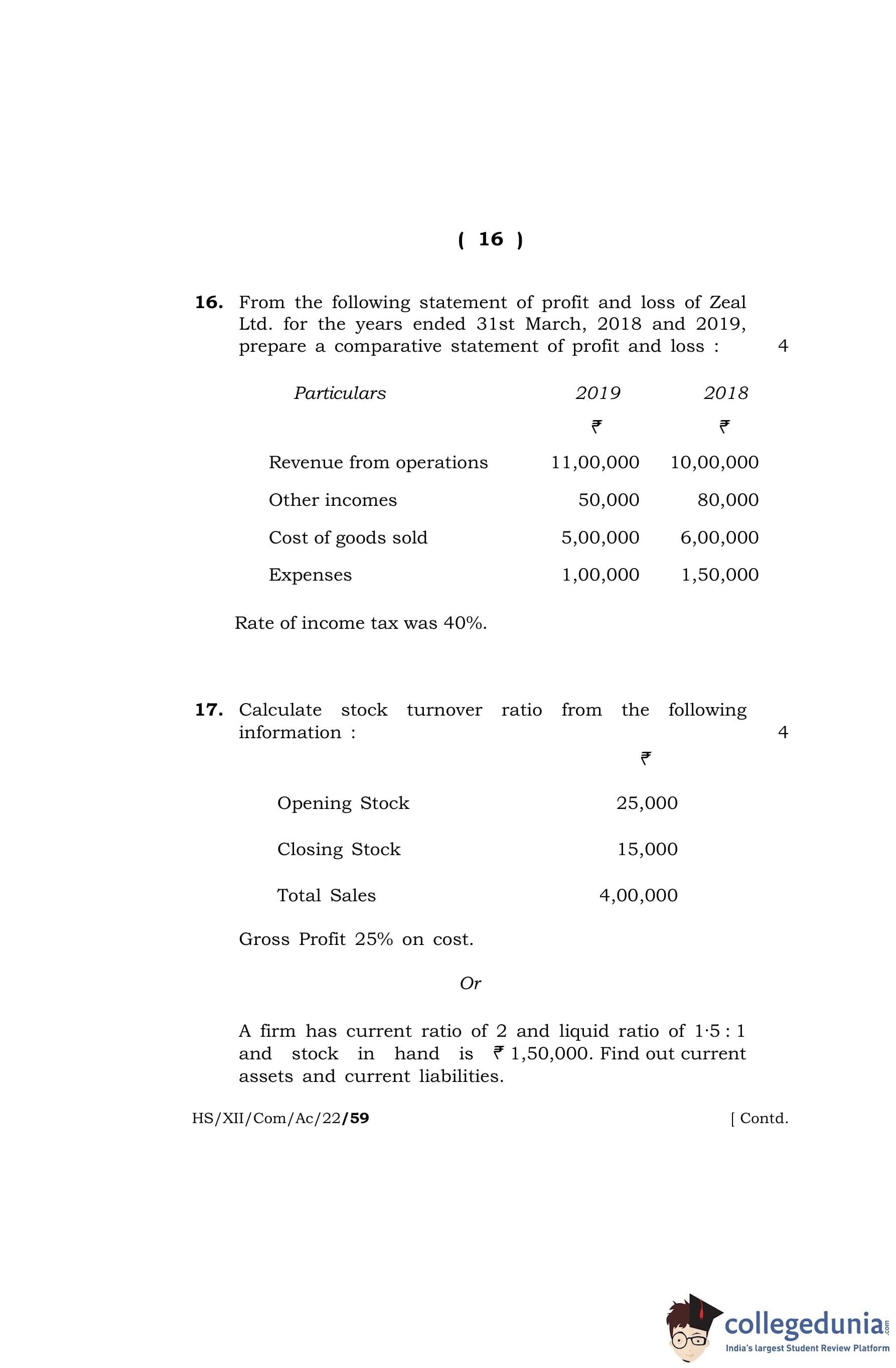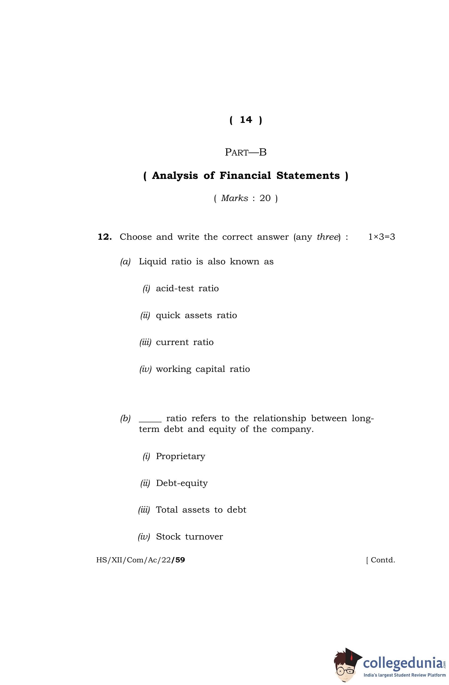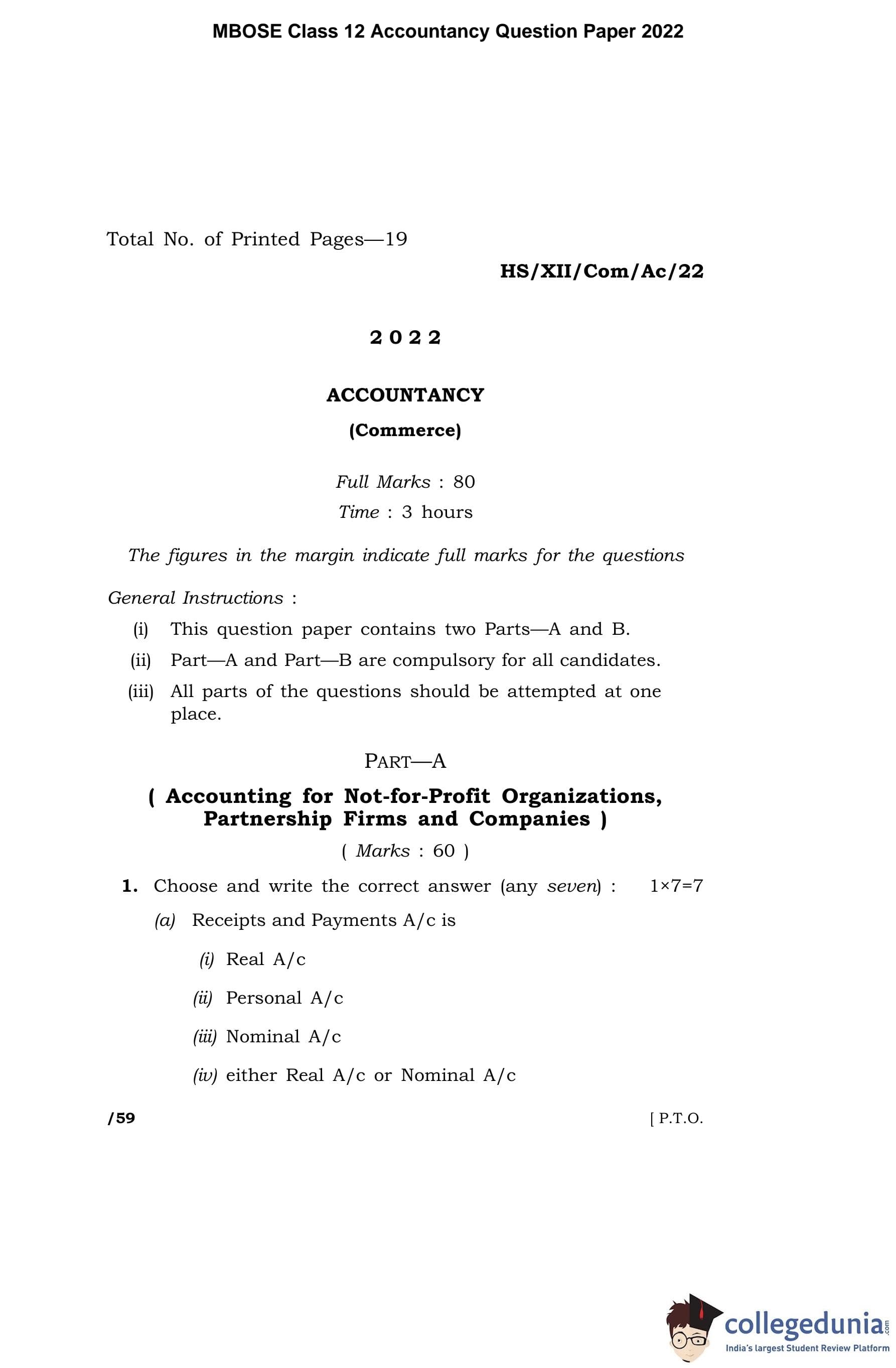 MBOSE Class 12 Accountancy Question Paper 2022 with Answer Key pdf is available for download here. The exam was conducted by Meghalaya Board of School Education on March 28, 2022 in the Morning Session 10 AM to 1 PM. The question paper comprised a total of 18 questions divided among 2 sections.