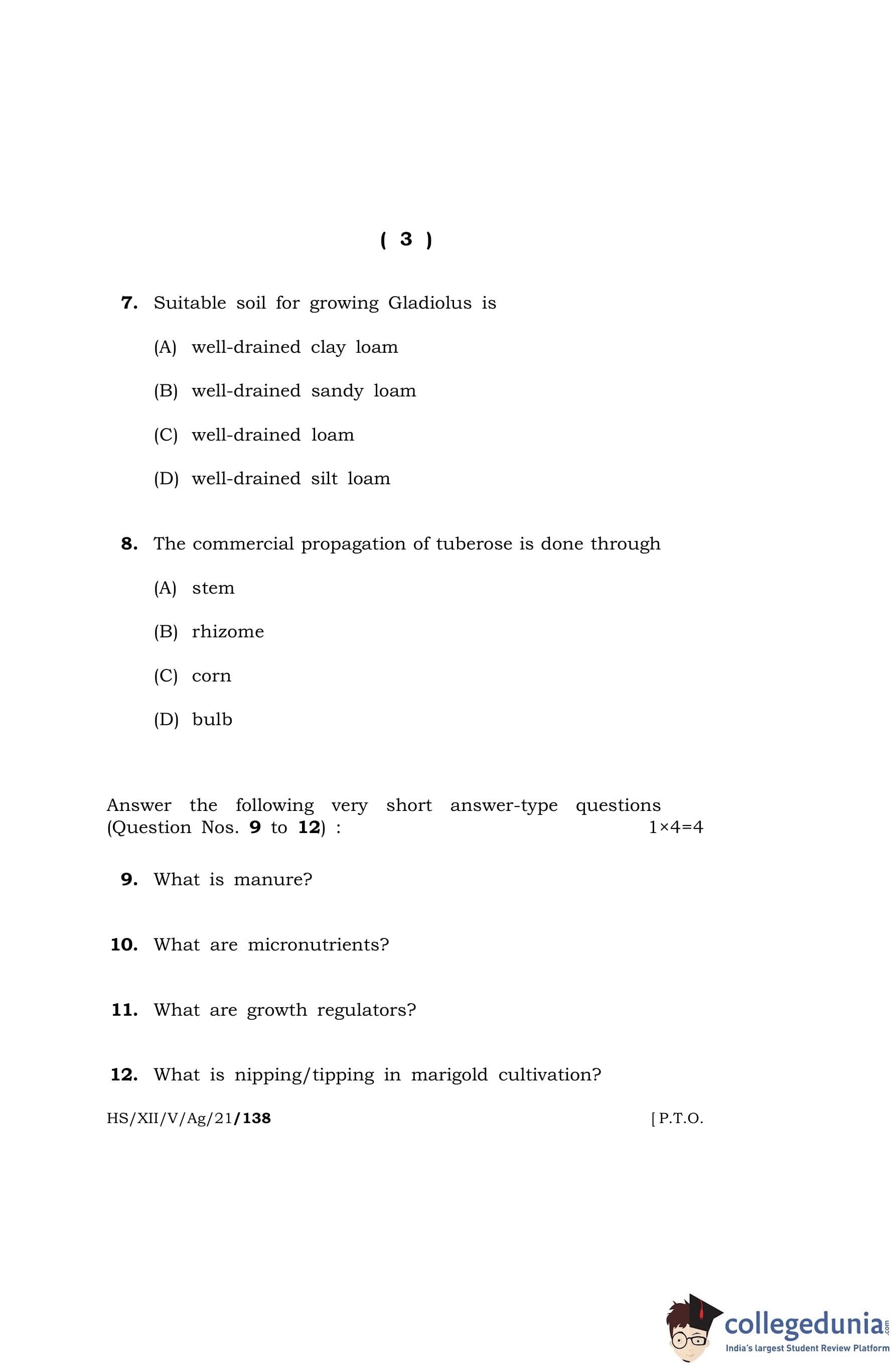 MBOSE Class 12 Agriculture (Floriculturist) Question Paper 2021 with Answer Key