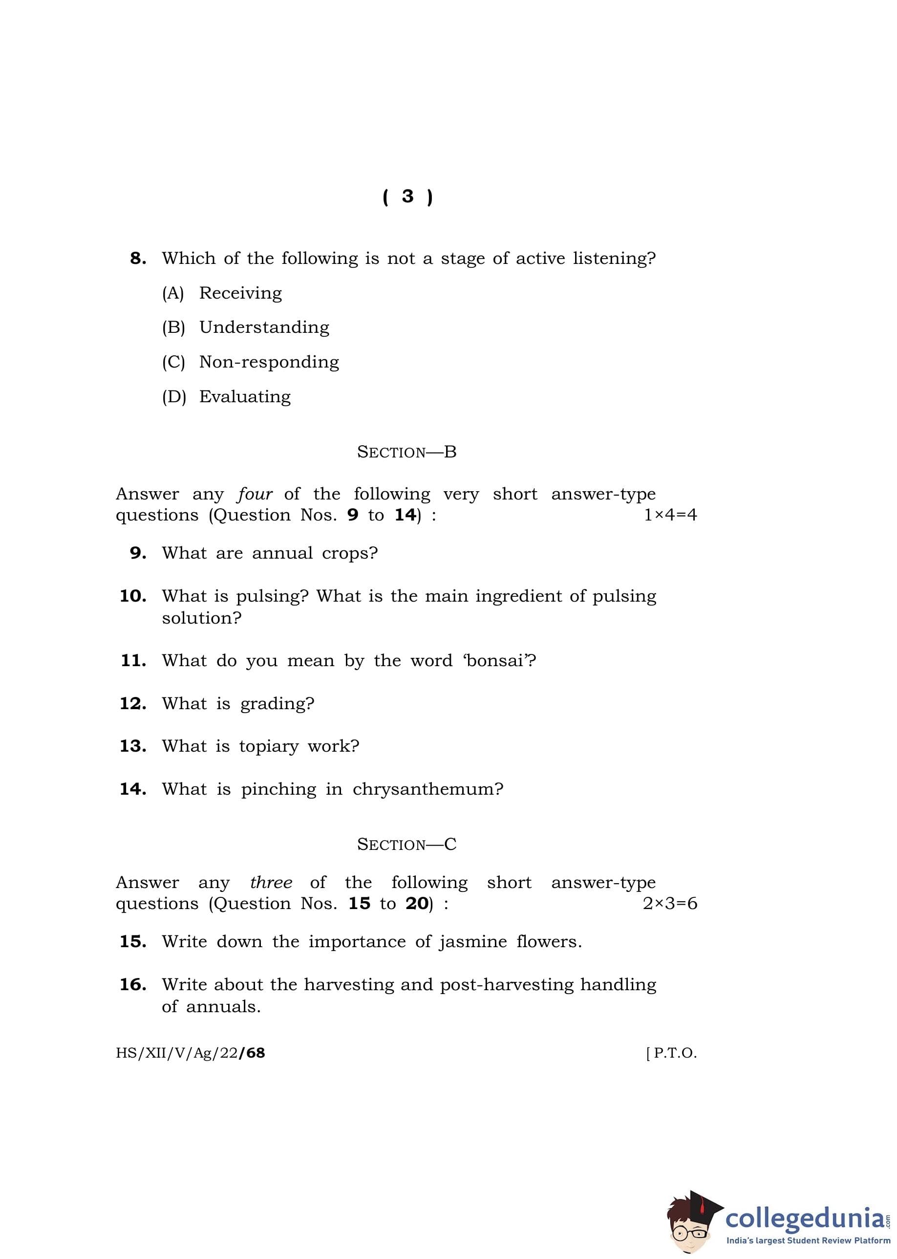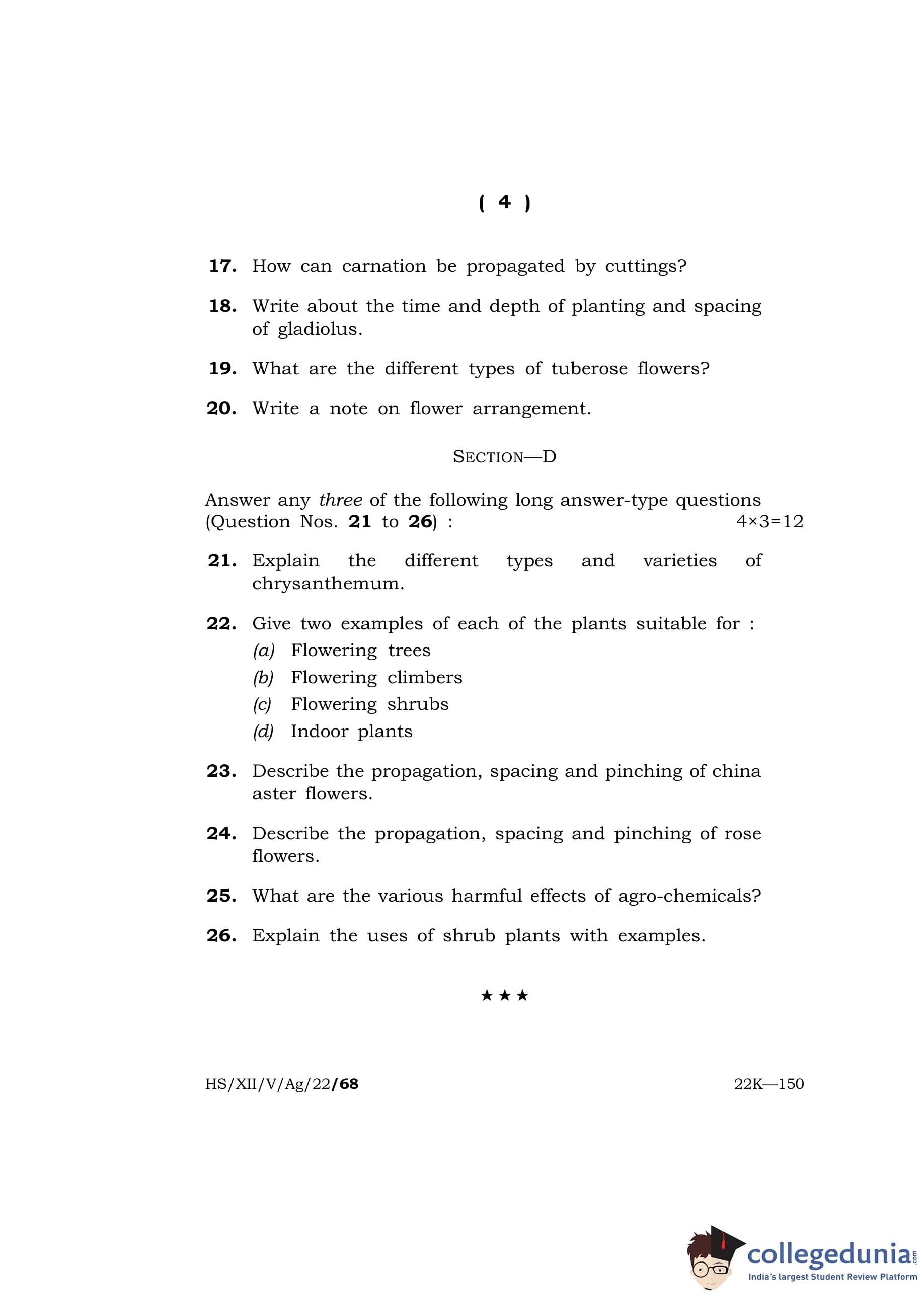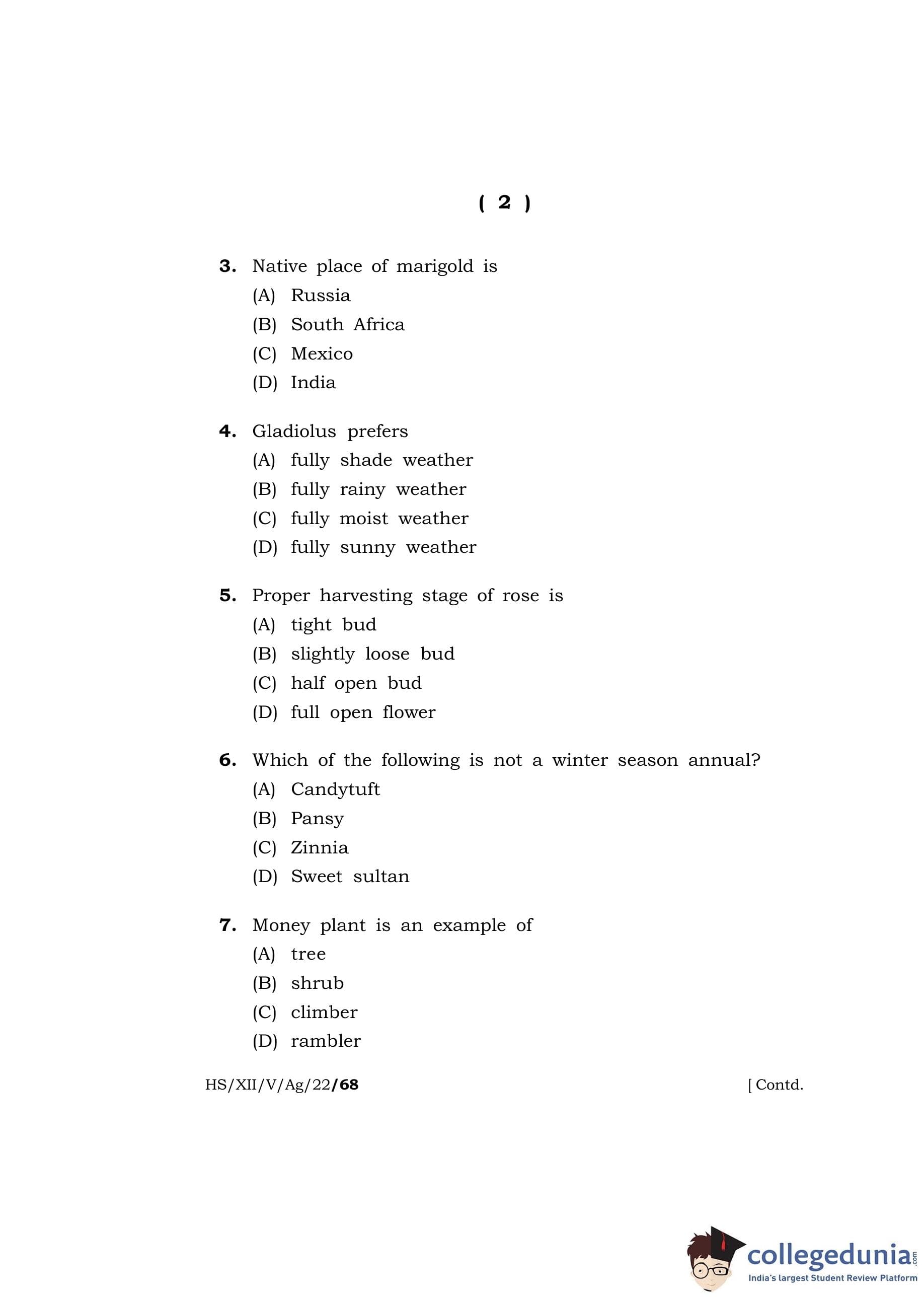 MBOSE Class 12 Agriculture Question Paper 2022 with Answer Key pdf is available for download here. The exam was conducted by Meghalaya Board of School Education on April 14, 2022 in the Morning Session 10 AM to 11 AM. The question paper comprised a total of 26 questions divided among 4 sections.