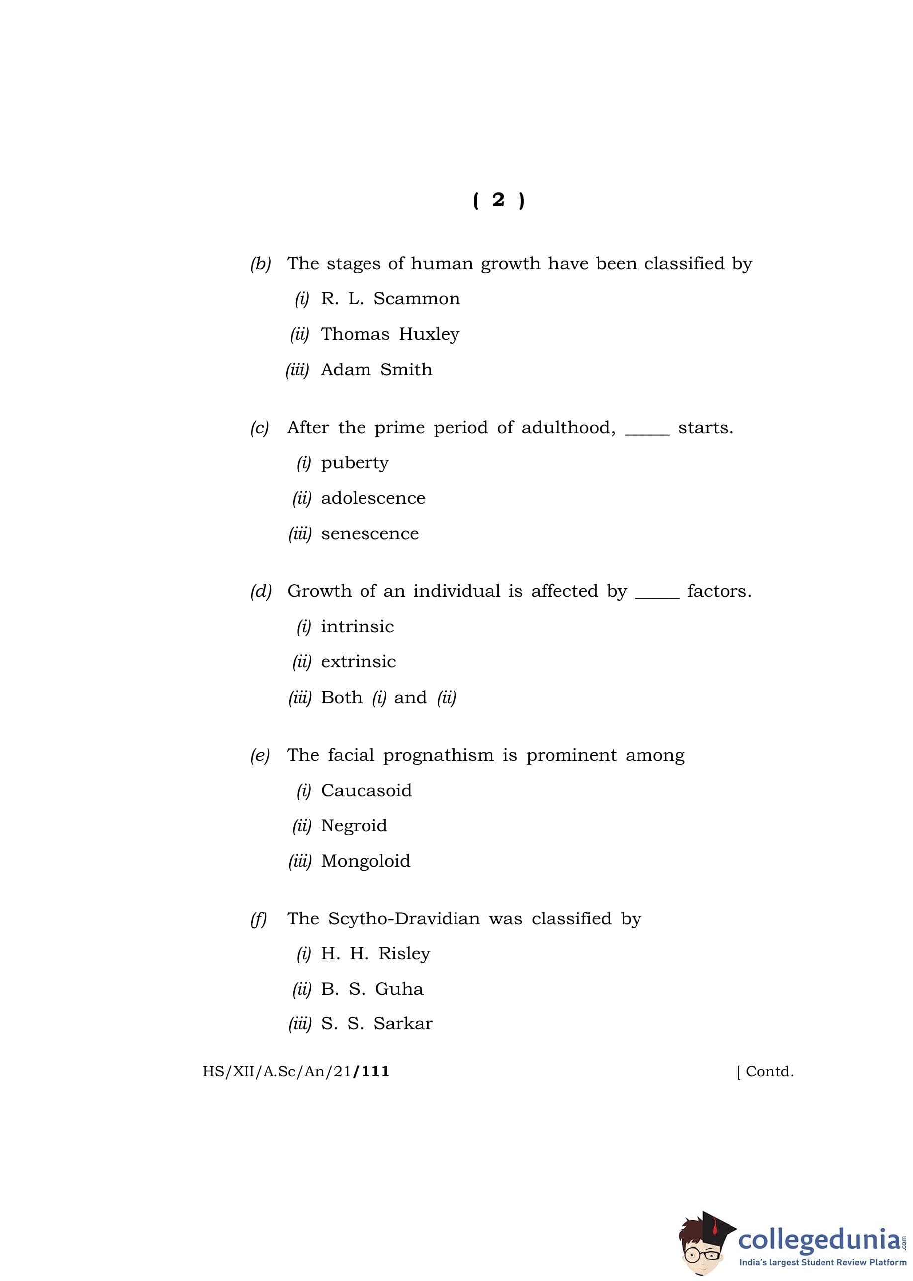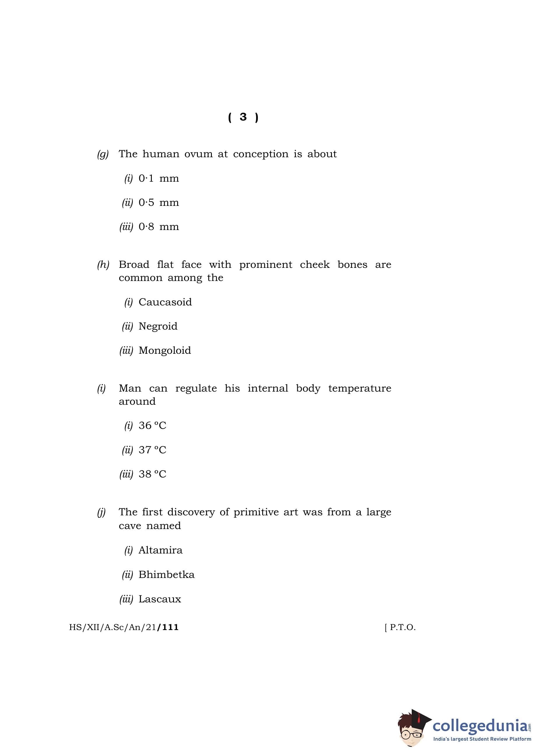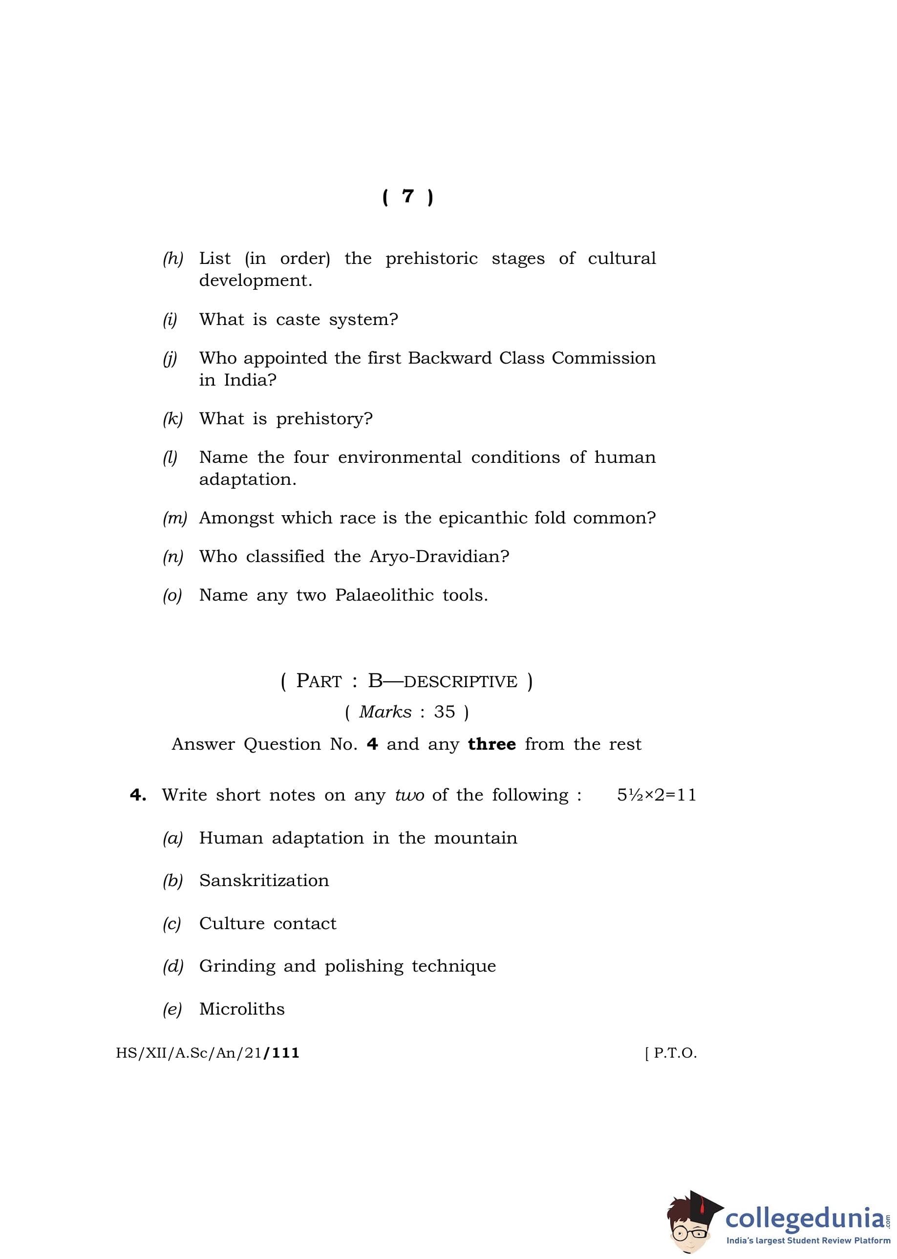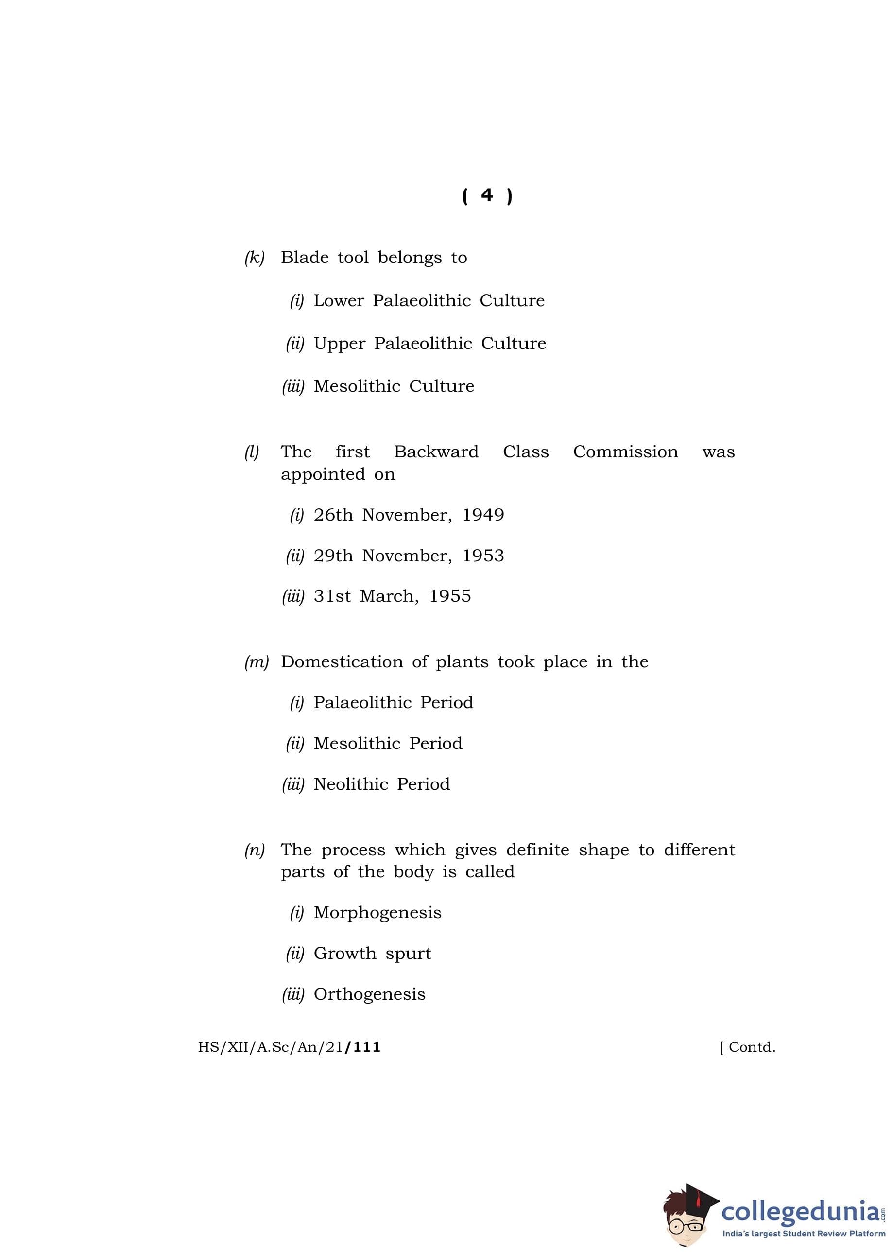 MBOSE Class 12 Anthropology Question Paper 2021 with Answer Key