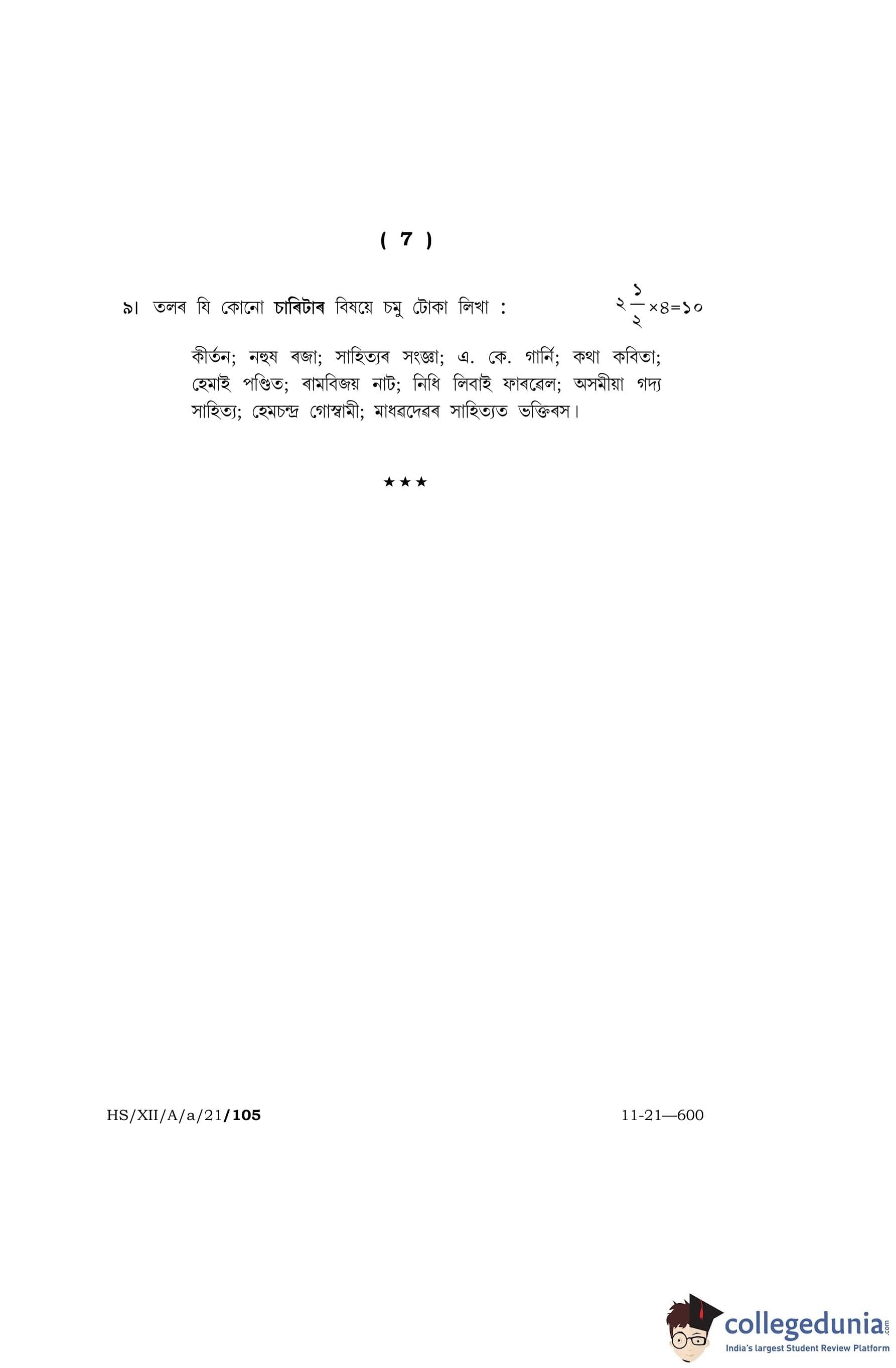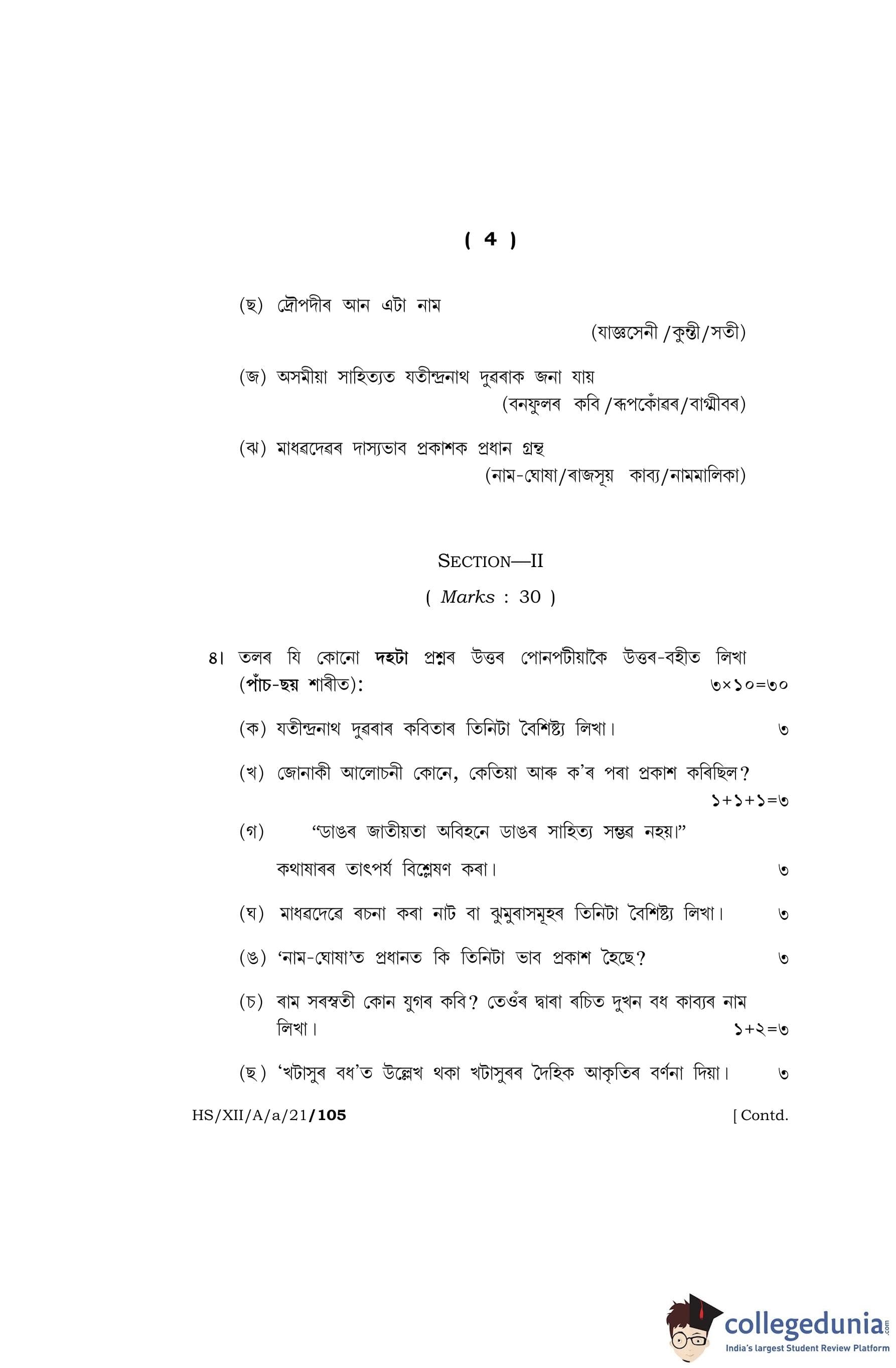 MBOSE Class 12 Assamese (Elective) Question Paper 2021 with Answer Key pdf is available for download here. The exam was conducted by Meghalaya Board of School Education on April 22, 2021 in the Morning Session 10 AM to 1 PM. The question paper comprised a total of 9 questions divided among 2 sections.
