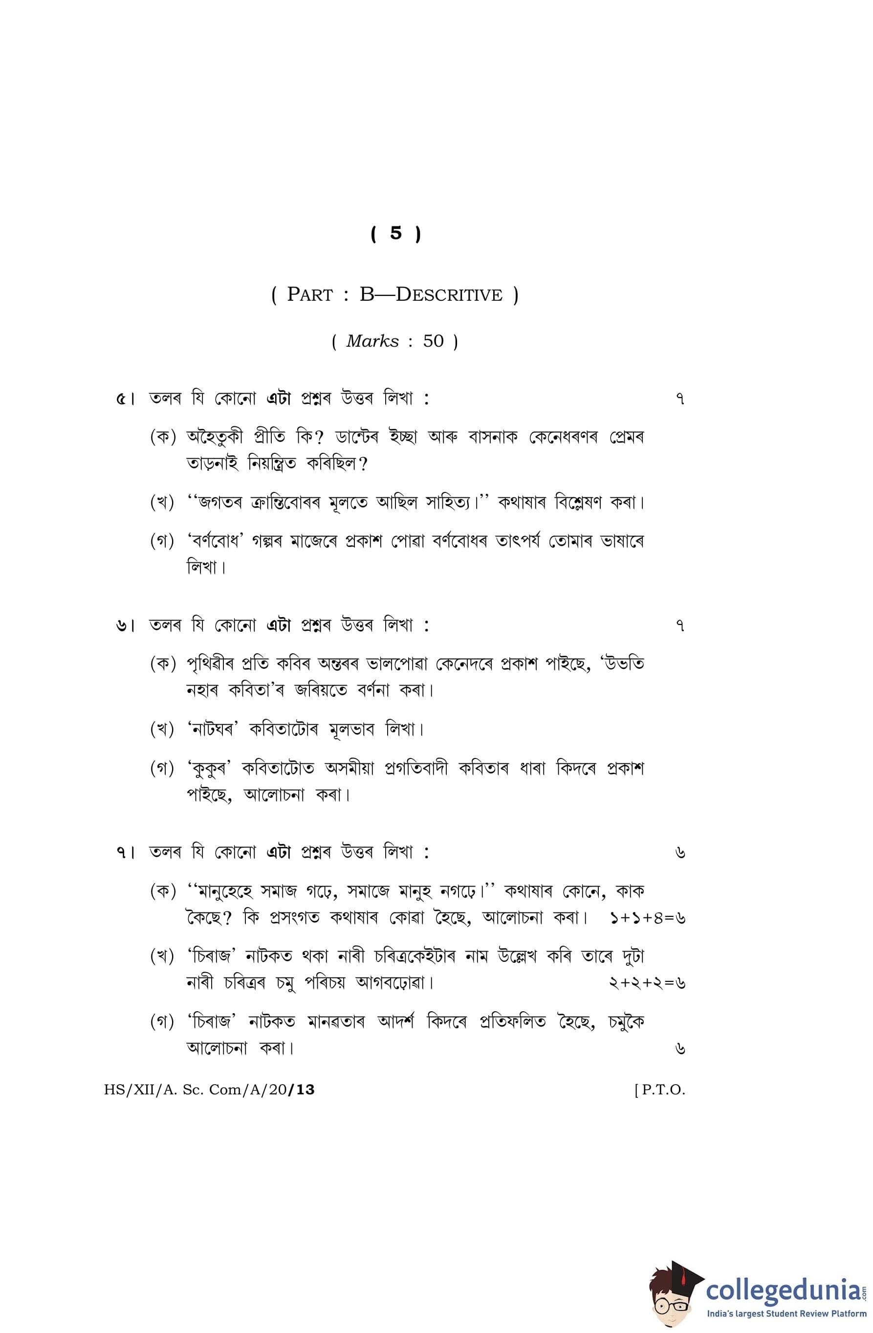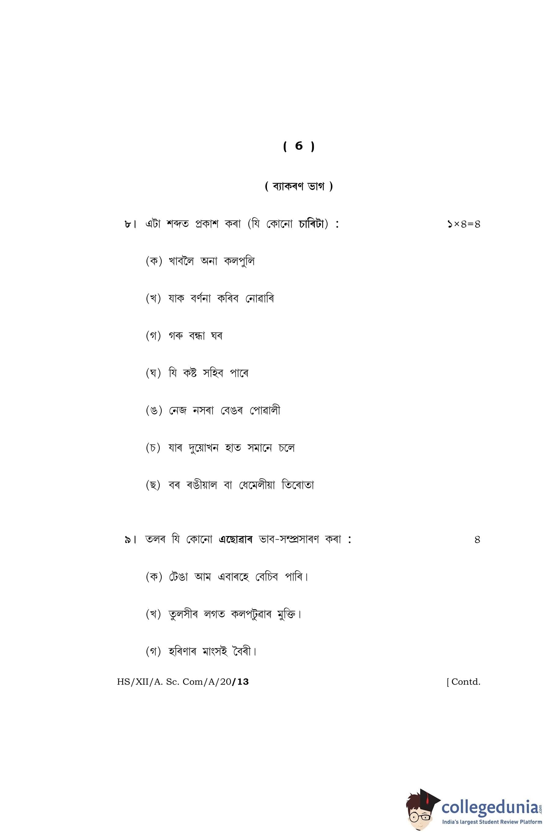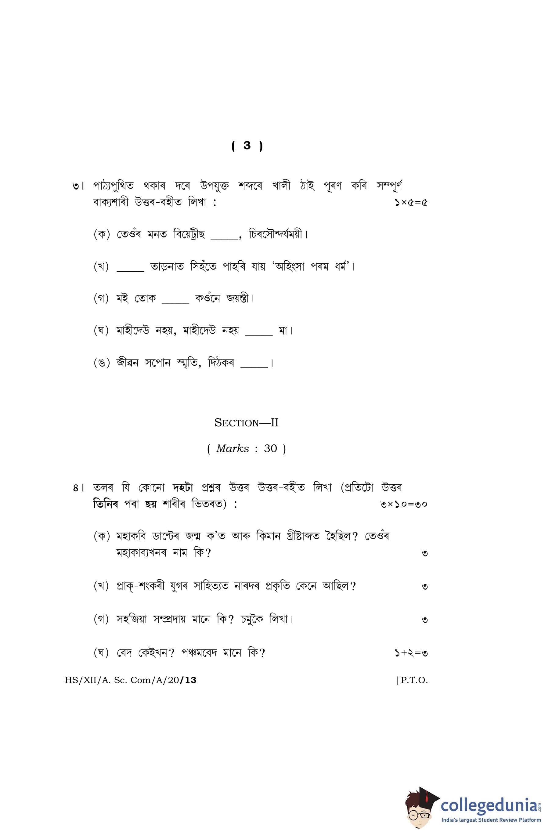 MBOSE Class 12 Assamese Question Paper 2020 with Answer Key