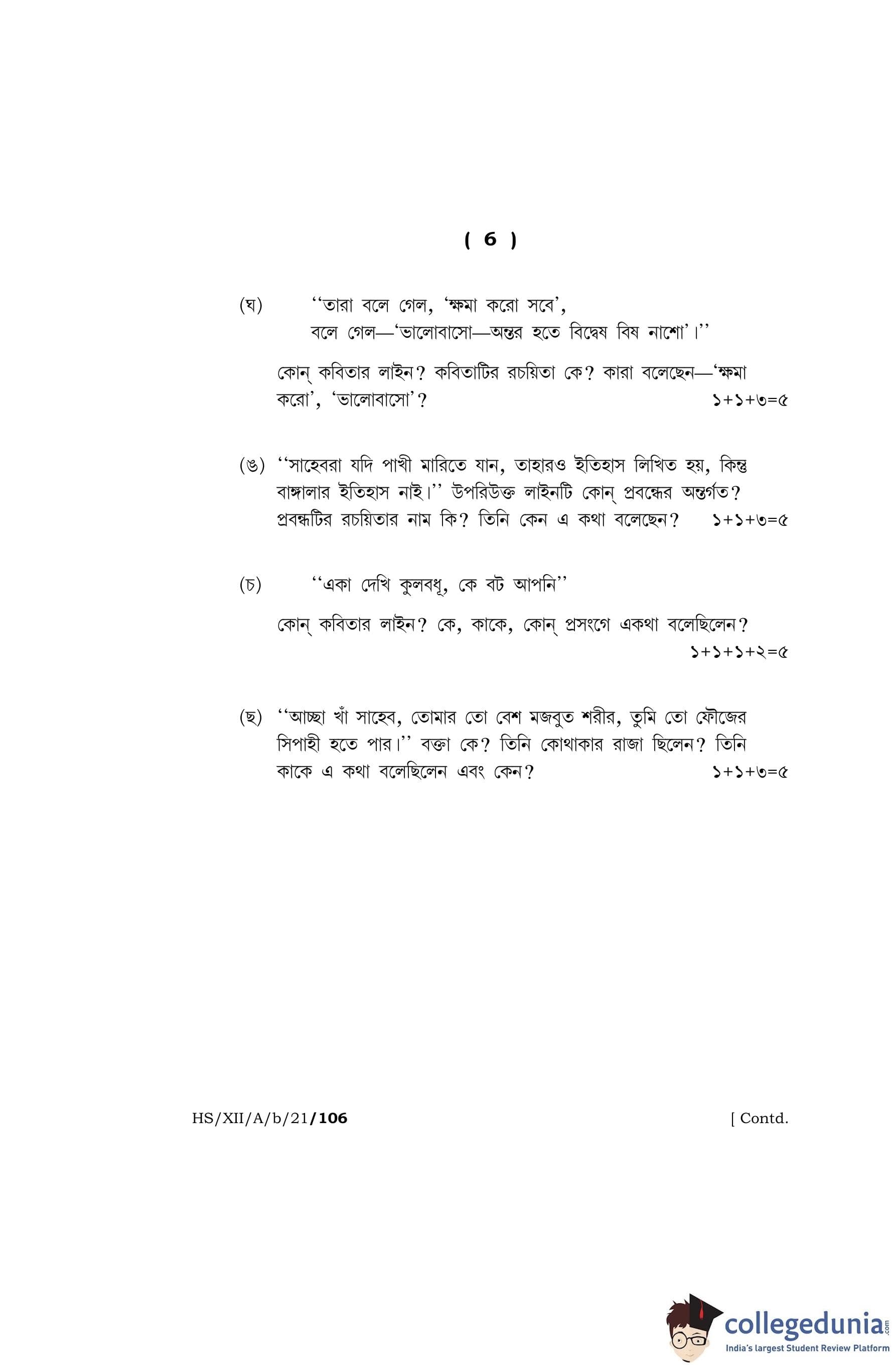 MBOSE Class 12 Bengali (Elective) Question Paper 2021 with Answer Key pdf is available for download here. The exam was conducted by Meghalaya Board of School Education on April 22, 2021 in the Morning Session 10 AM to 1 PM. The question paper comprised a total of 9 questions divided among 2 sections.