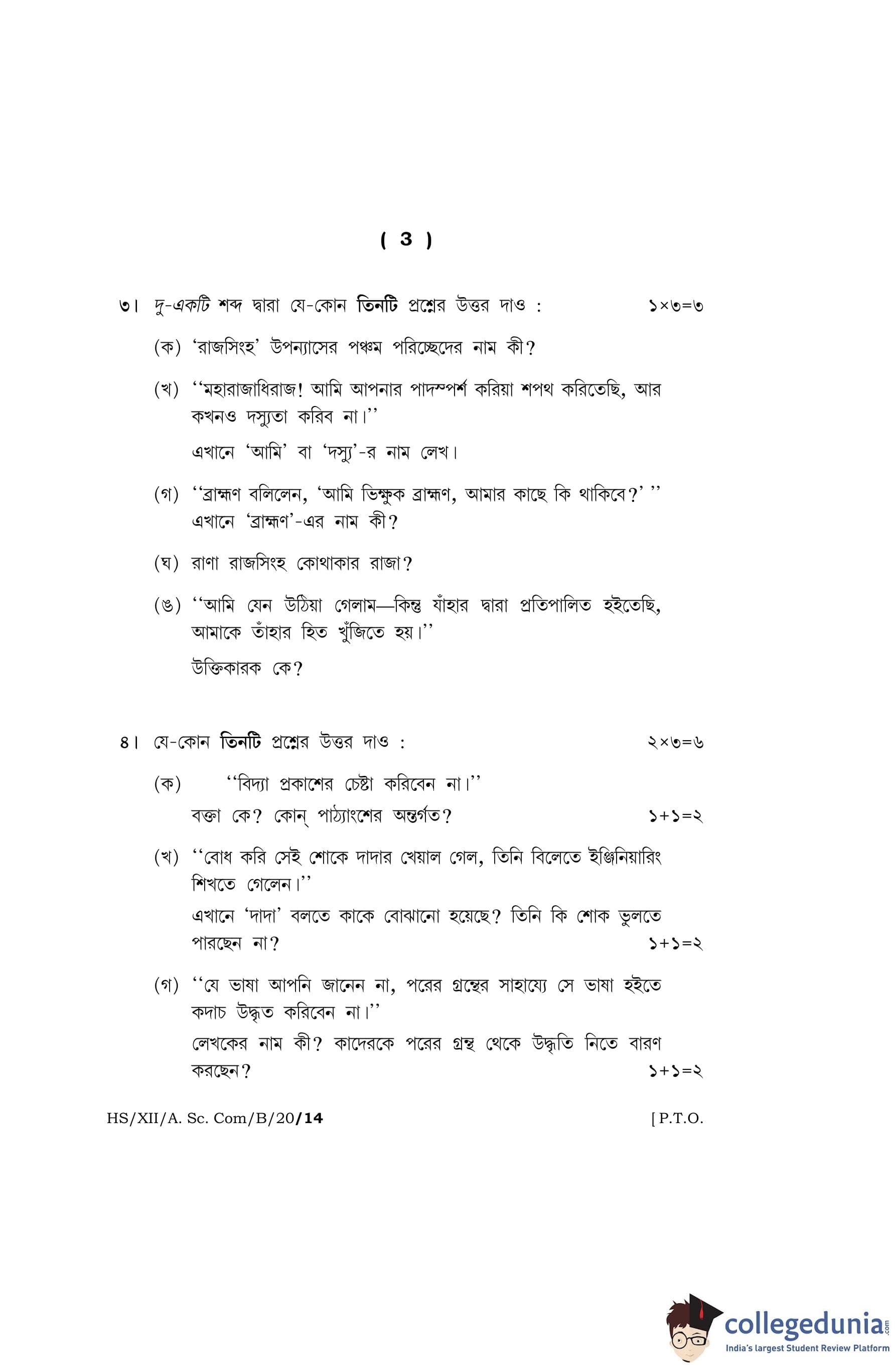 MBOSE Class 12 Bengali Question Paper 2020 with Answer Key pdf is available for download here. The exam was conducted by Meghalaya Board of School Education on March 3, 2020 in the Morning Session 10 AM to 1 PM. The question paper comprised a total of 15 questions.