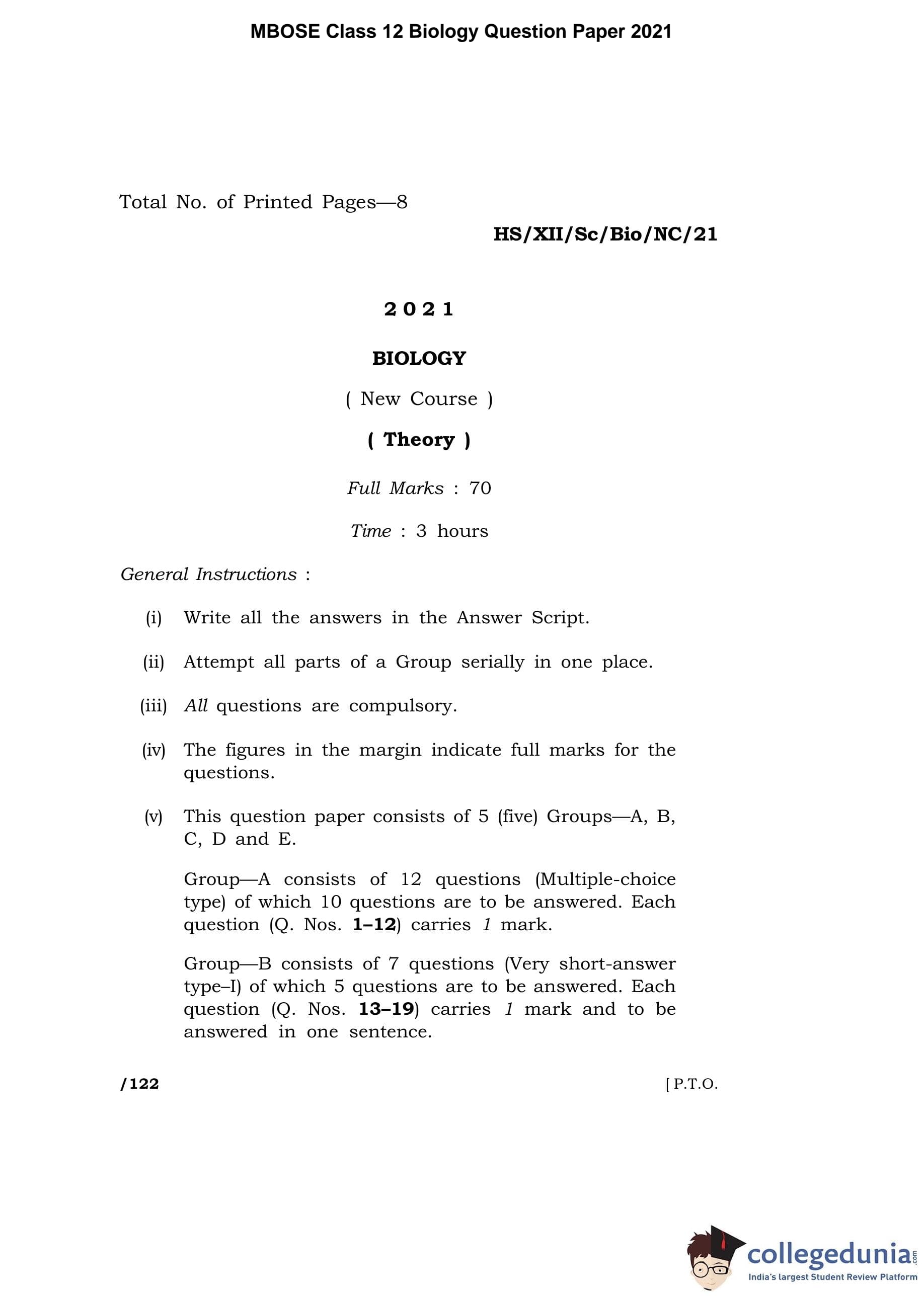 | MBOSE Class 12 Biology Question Paper 2021 PDF | MBOSE Class 12 Biology Answer Key 2021 PDF |