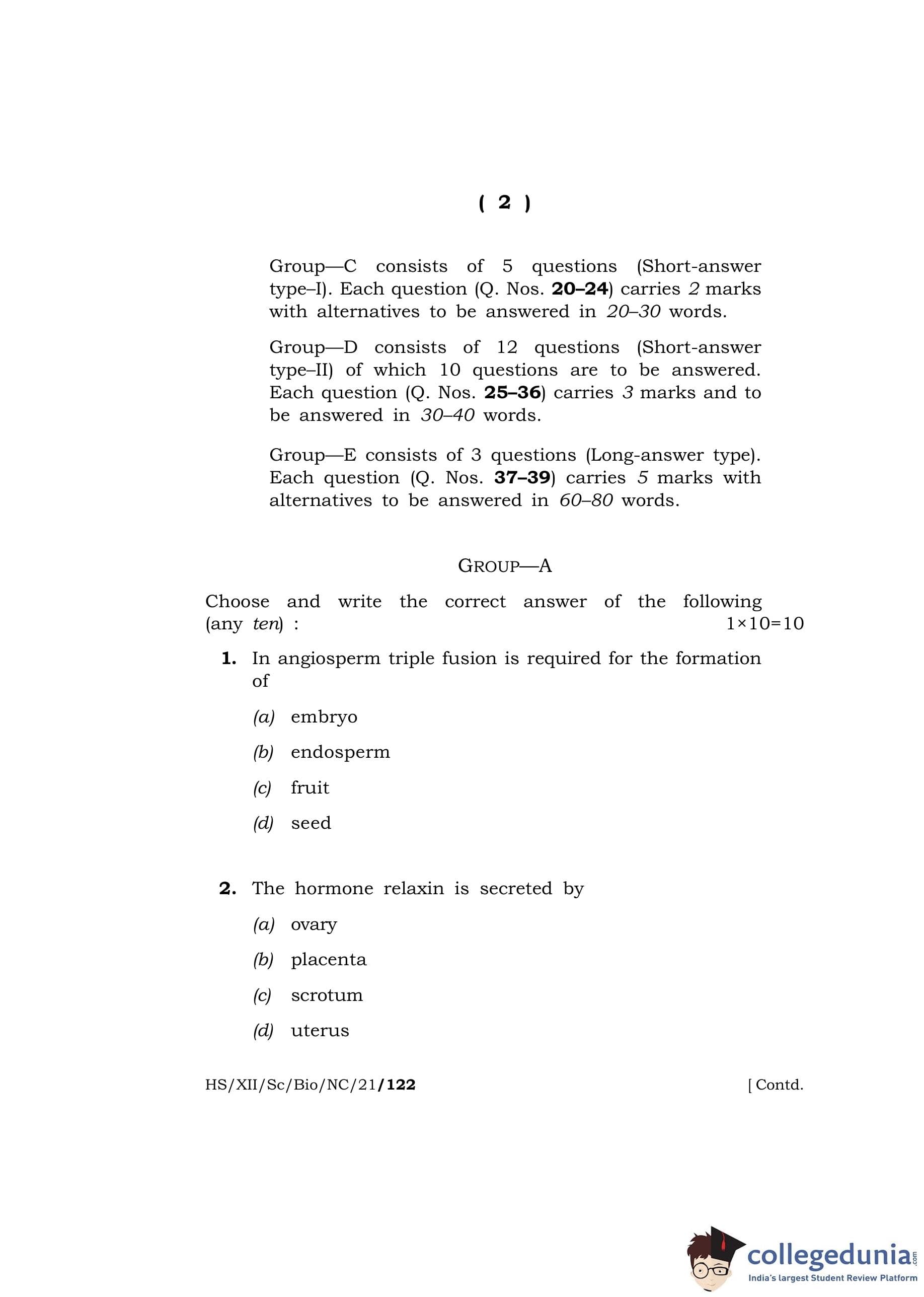MBOSE Class 12 Biology Question Paper 2021 with Answer Key pdf is available for download here. The exam was conducted by Meghalaya Board of School Education on April 22, 2021 in the Morning Session 10 AM to 1 PM. The question paper comprised a total of 39 questions divided among 5 sections.