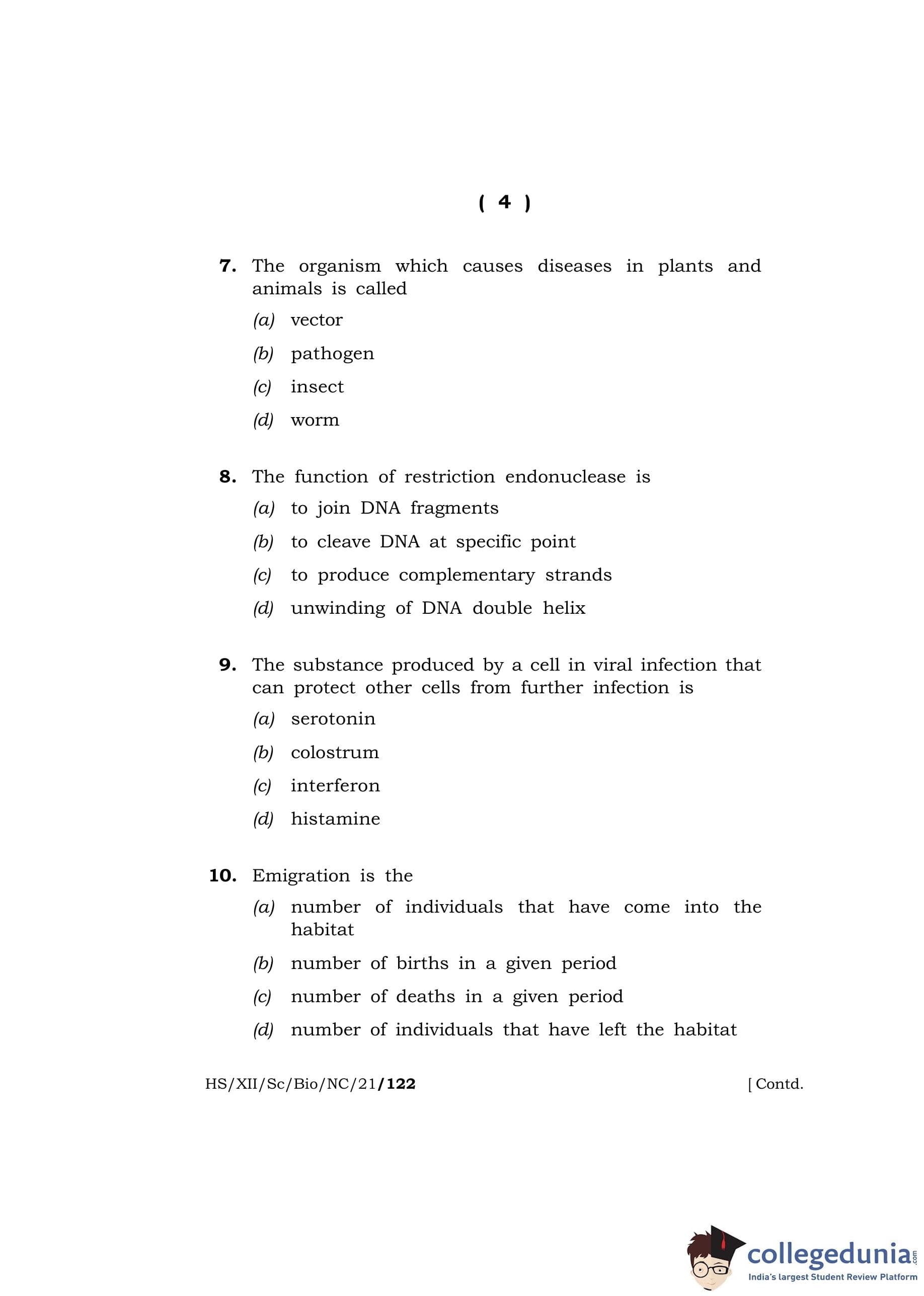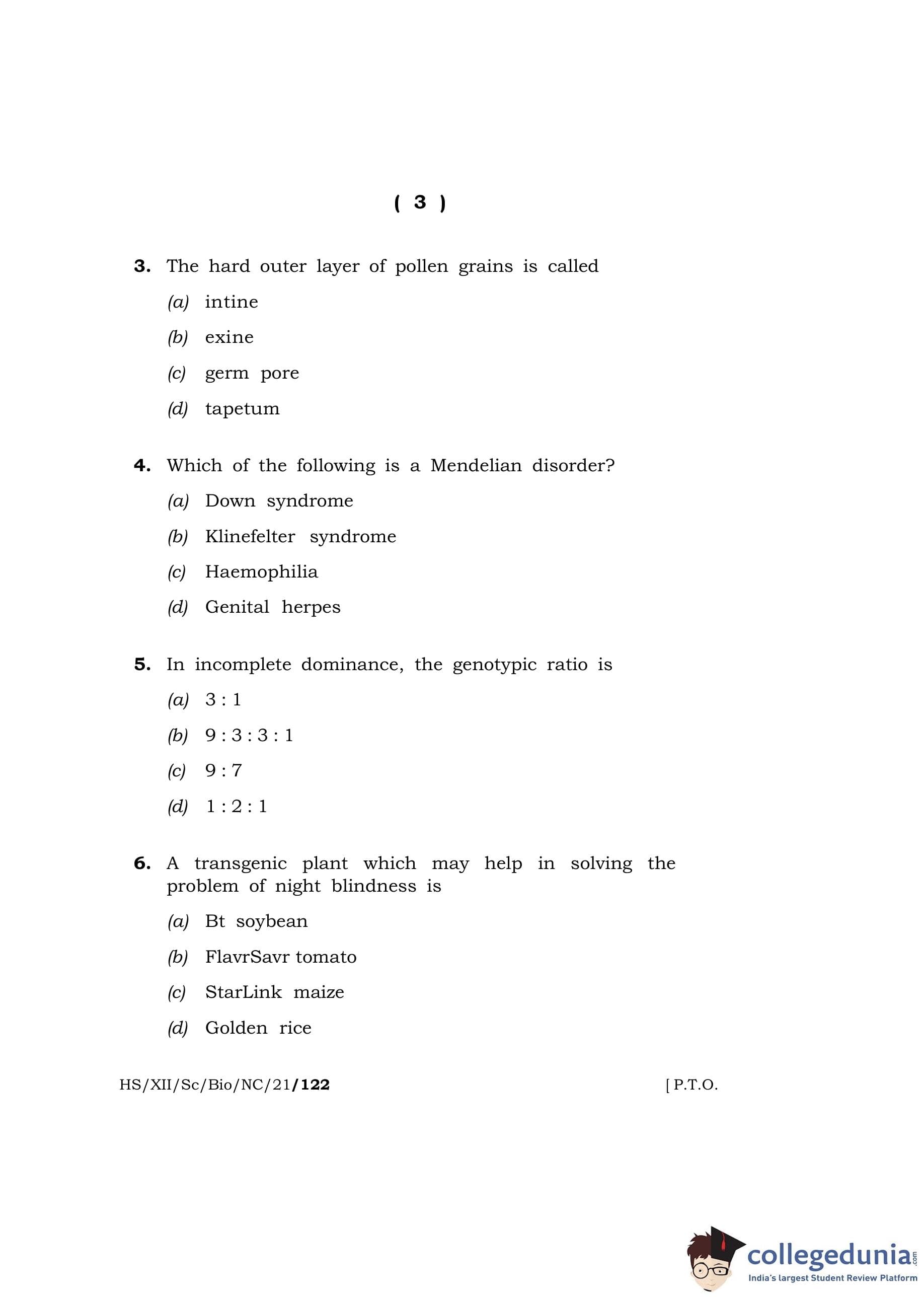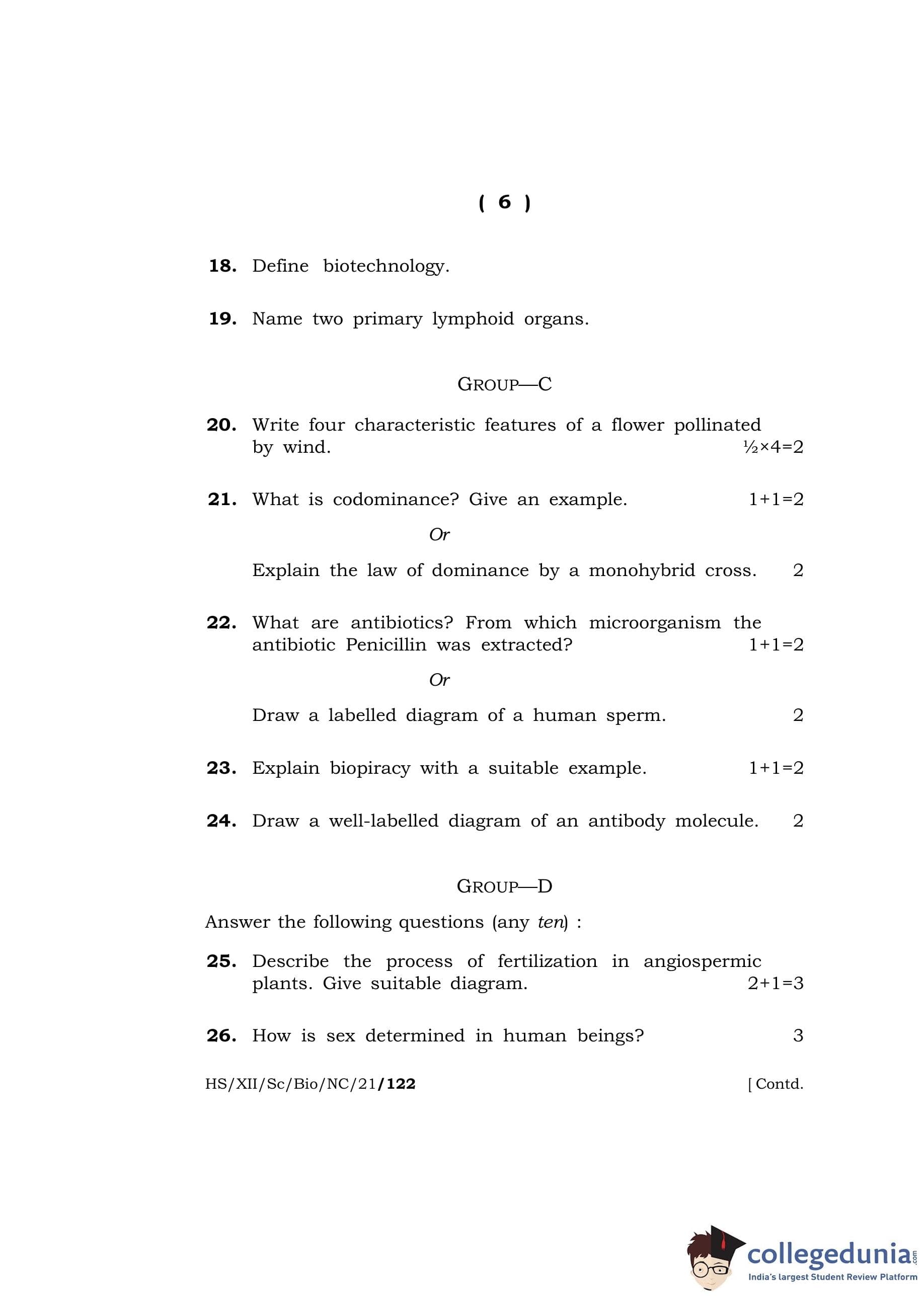 MBOSE Class 12 Biology Question Paper 2021