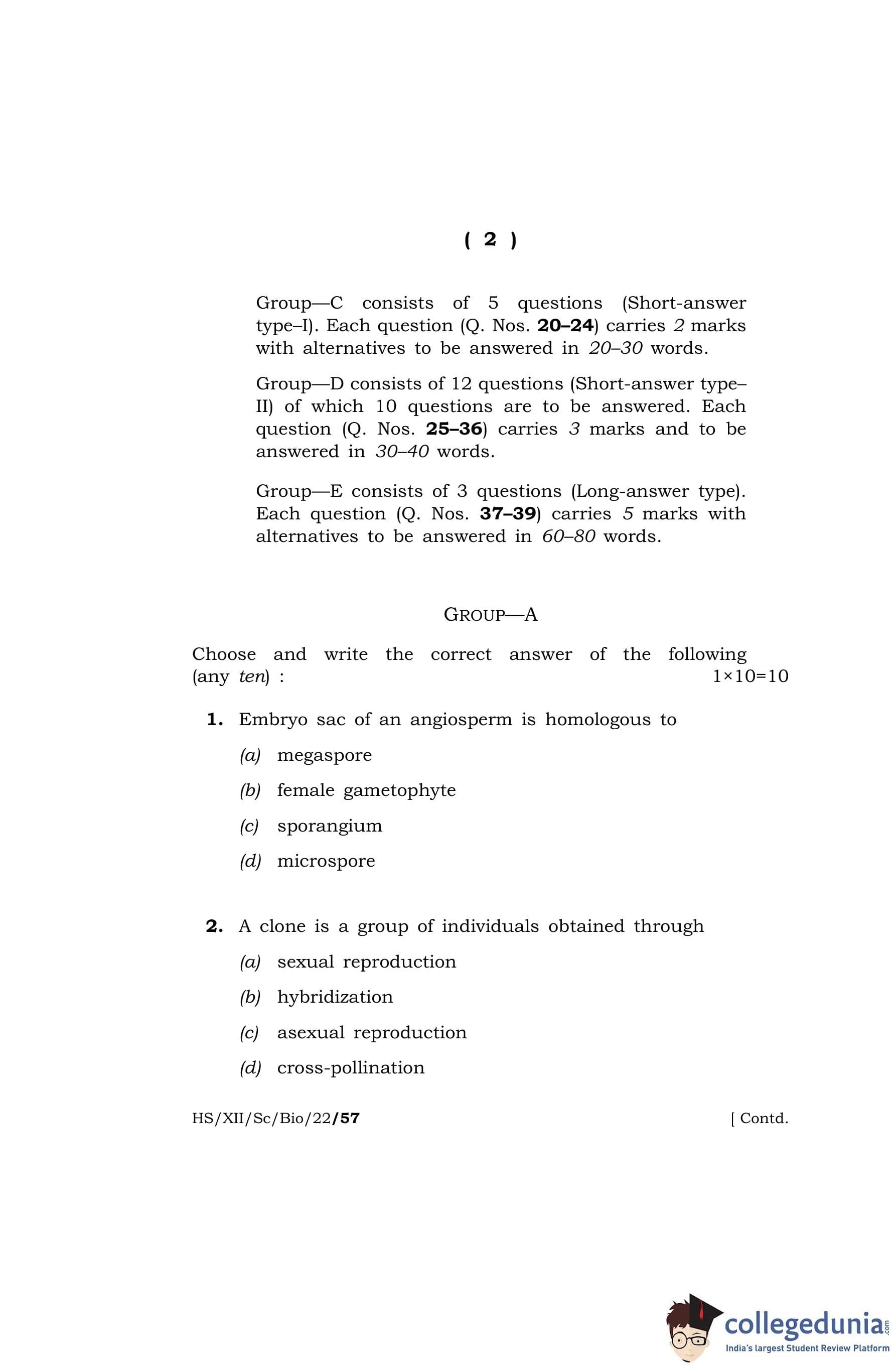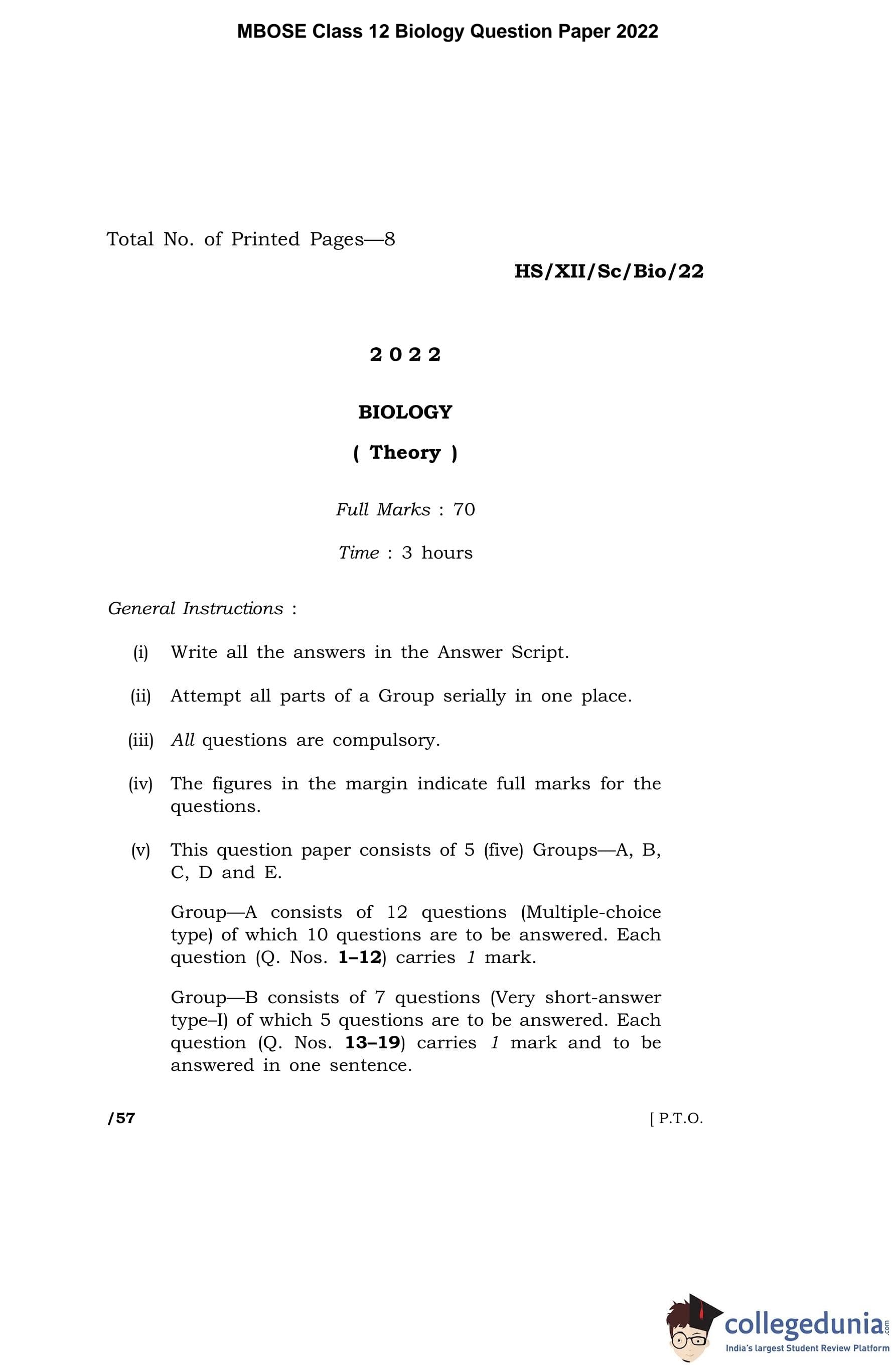 MBOSE Class 12 Biology Question Paper 2022 with Answer Key pdf is available for download here. The exam was conducted by Meghalaya Board of School Education on March 31, 2022 in the Morning Session 10 AM to 1 PM. The question paper comprised a total of 39 questions divided among 5 sections.