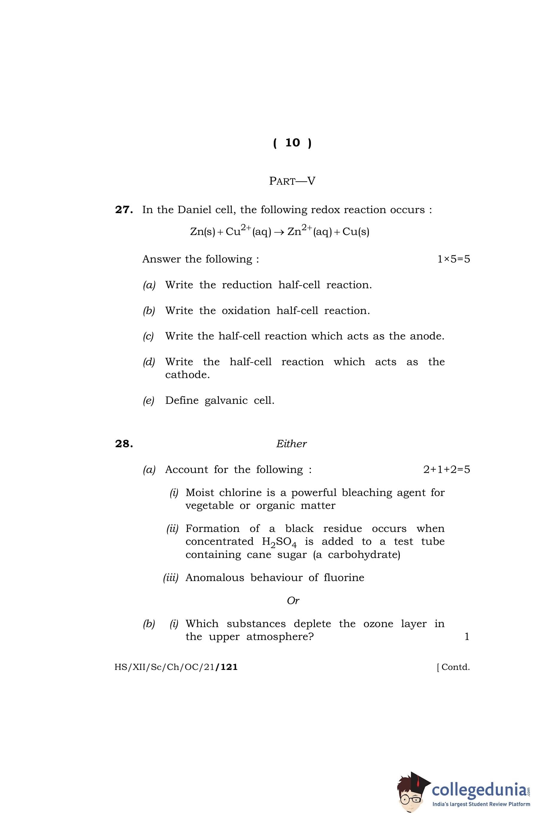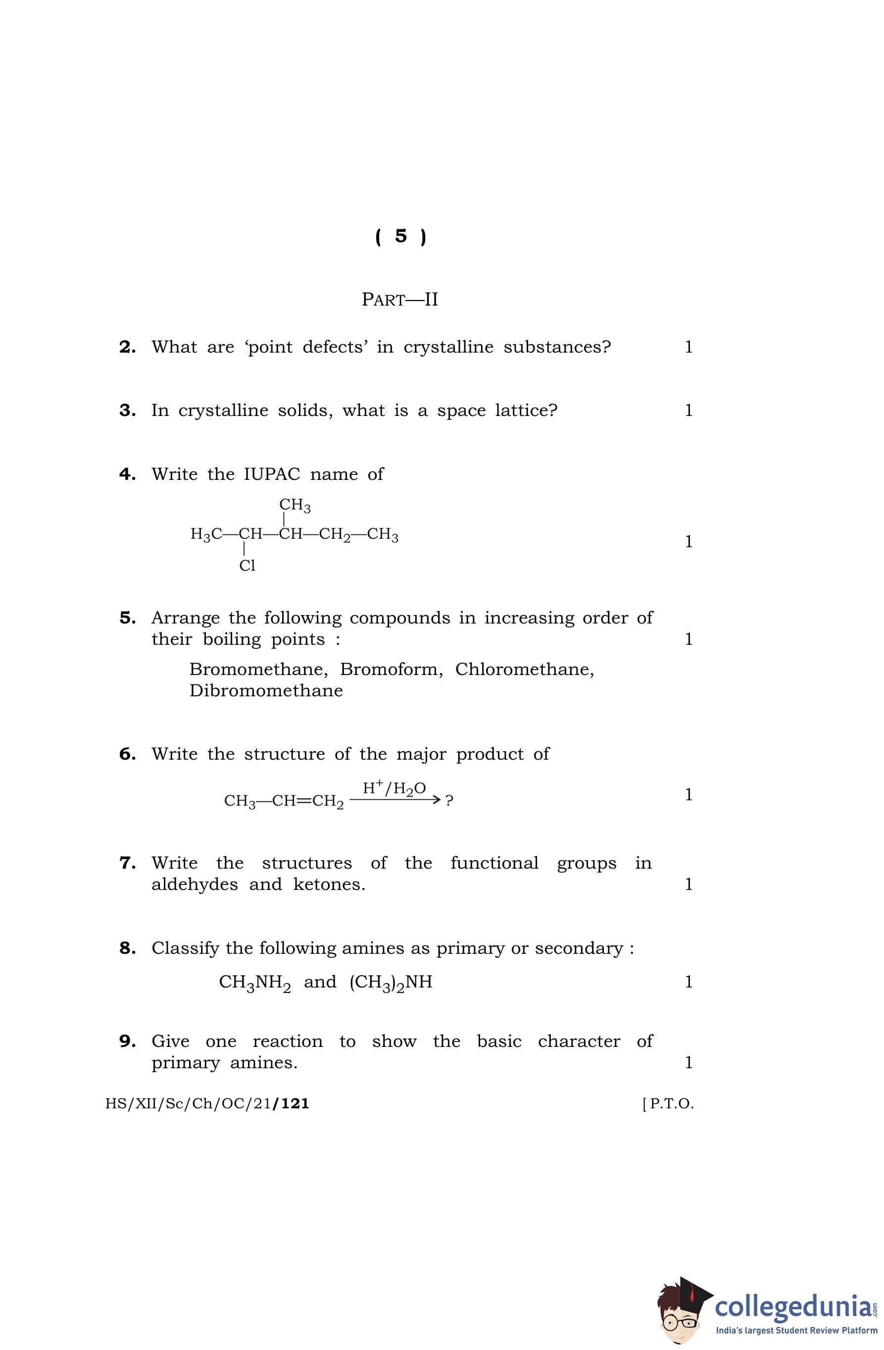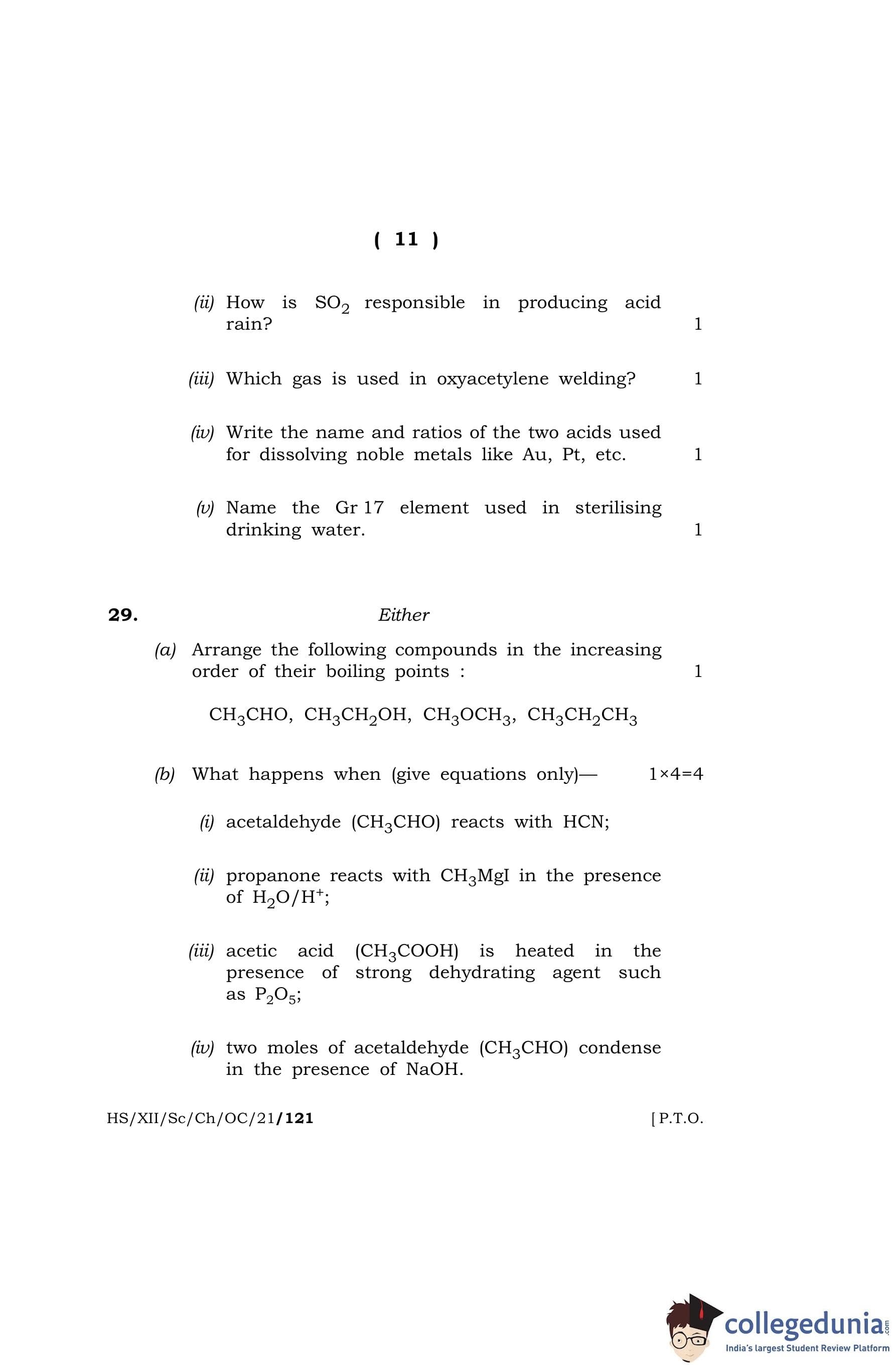 MBOSE Class 12 Chemistry (Old Course) Question Paper 2021 with Answer Key pdf is available for download here. The exam was conducted by Meghalaya Board of School Education on April 26, 2021 in the Morning Session 10 AM to 1 PM. The question paper comprised a total of 29 questions divided among 5 sections.