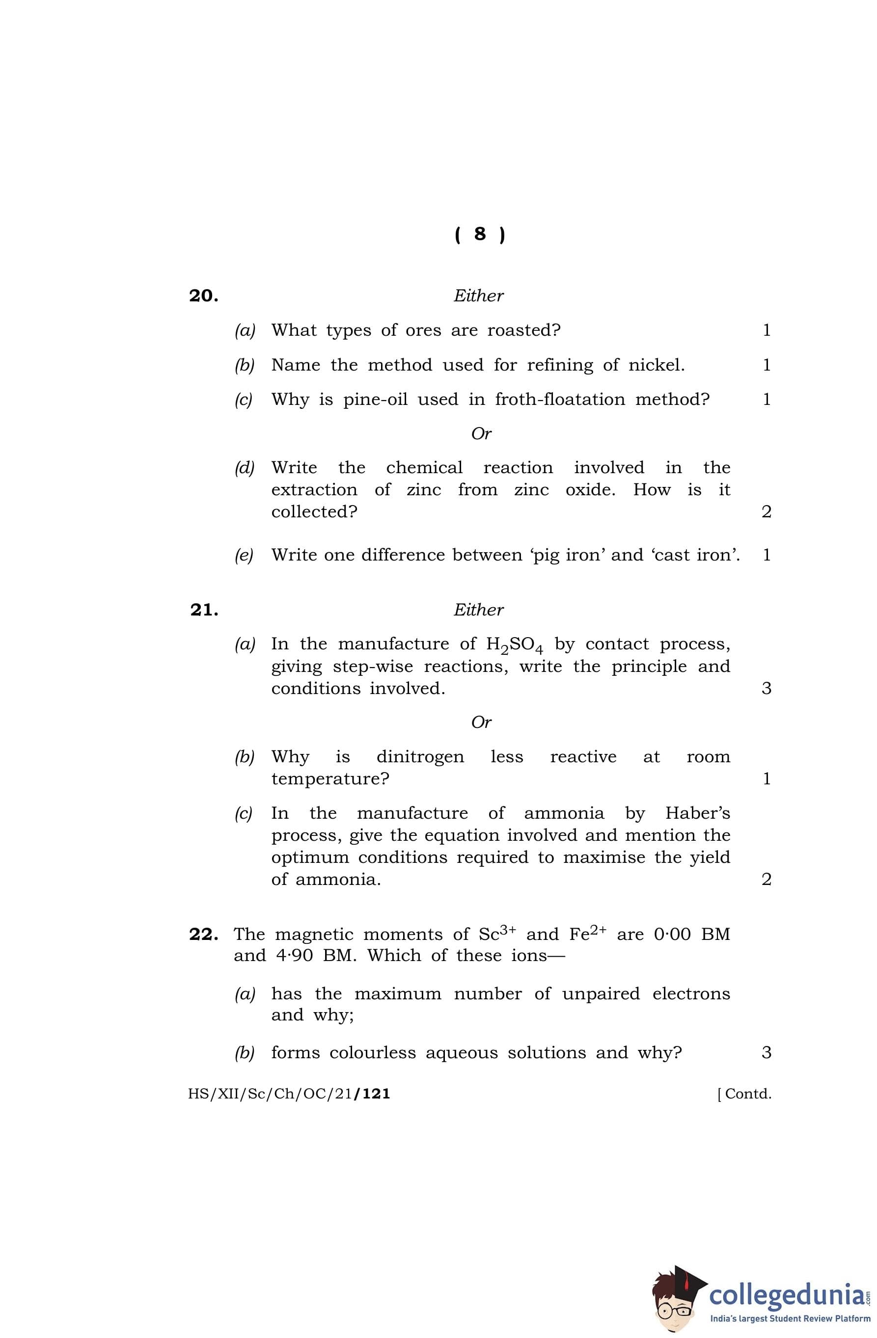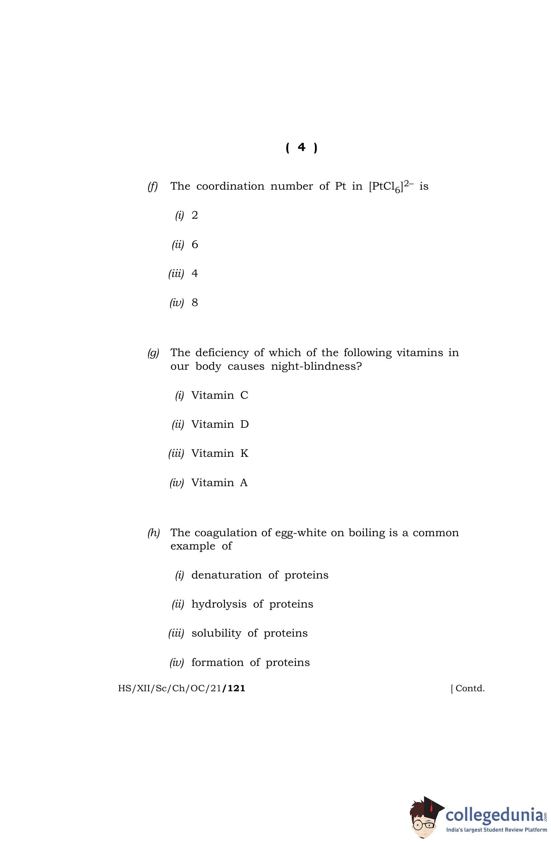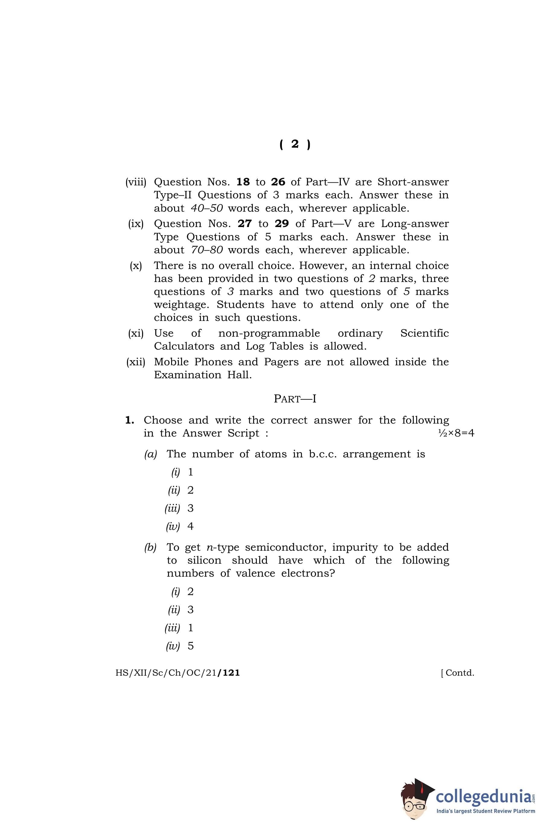 MBOSE Class 12 Chemistry (Old Course) Question Paper 2021 with Answer Key pdf is available for download here. The exam was conducted by Meghalaya Board of School Education on April 26, 2021 in the Morning Session 10 AM to 1 PM. The question paper comprised a total of 29 questions divided among 5 sections.