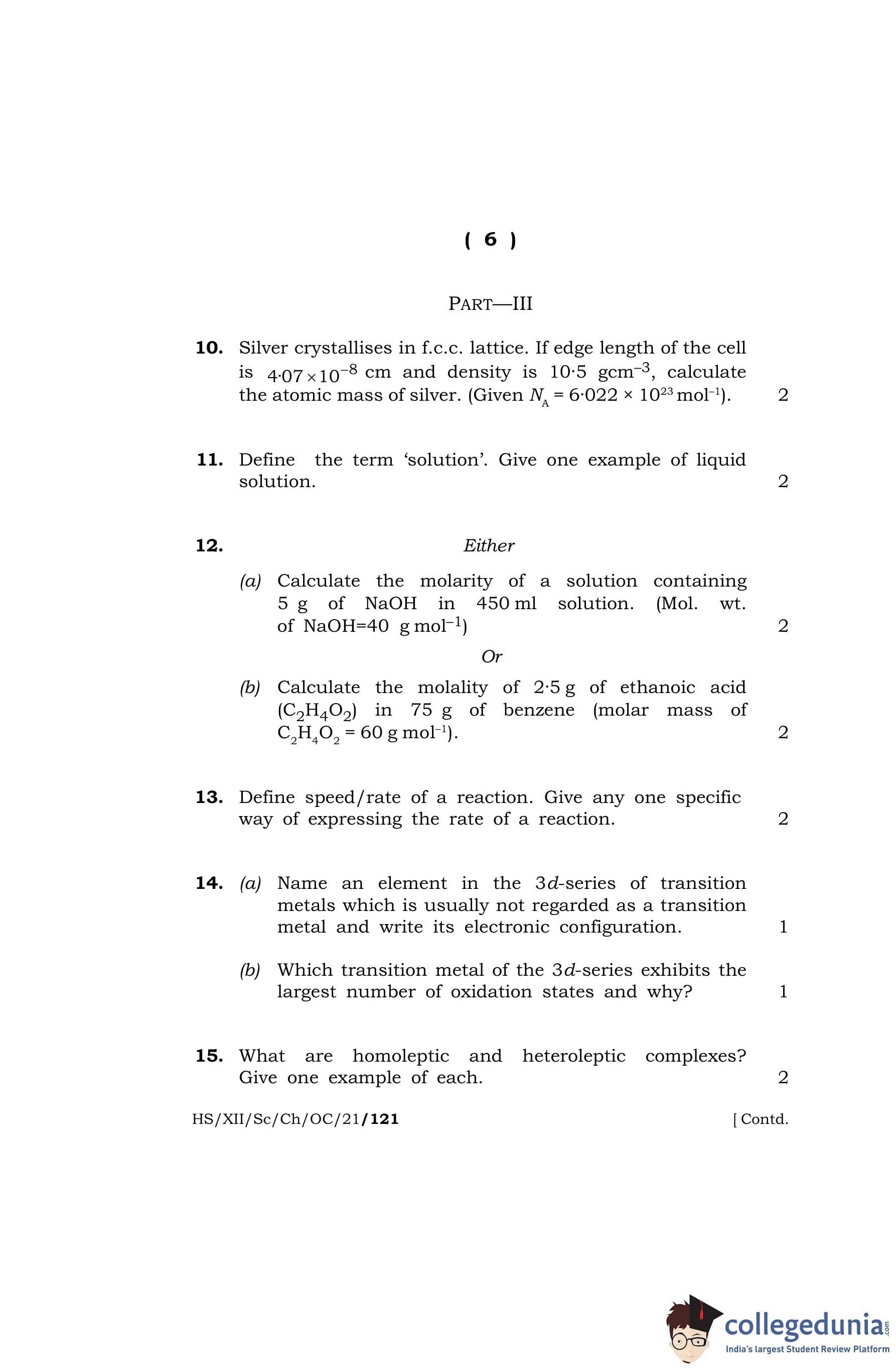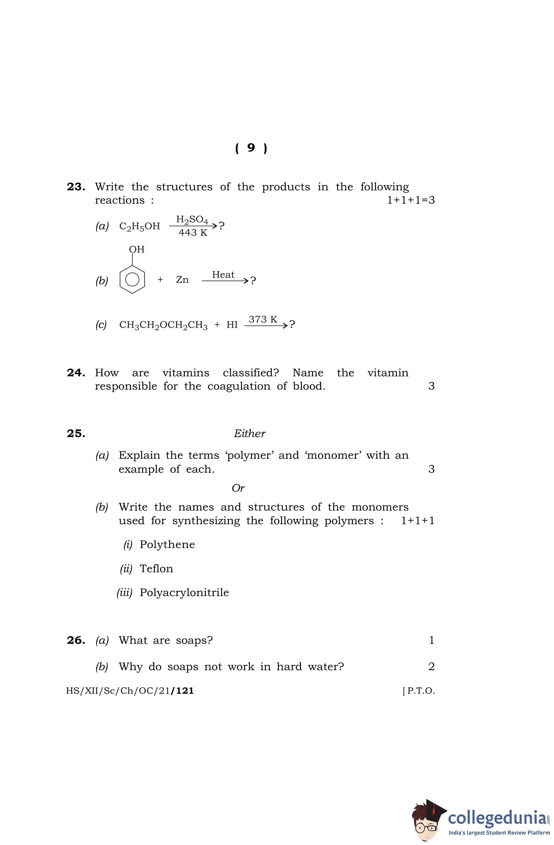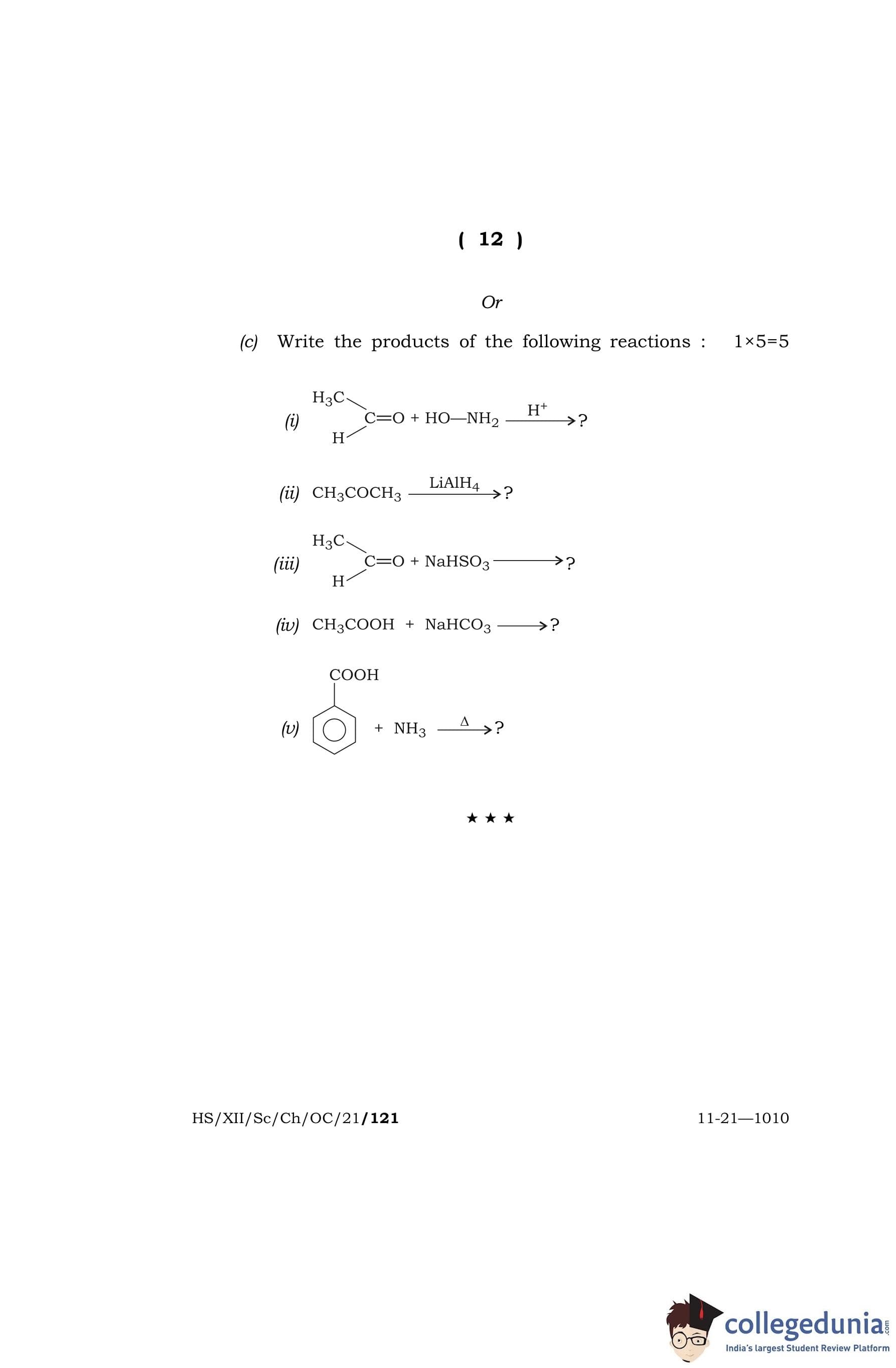 MBOSE Class 12 Chemistry Question Paper 2021 with Answer Key