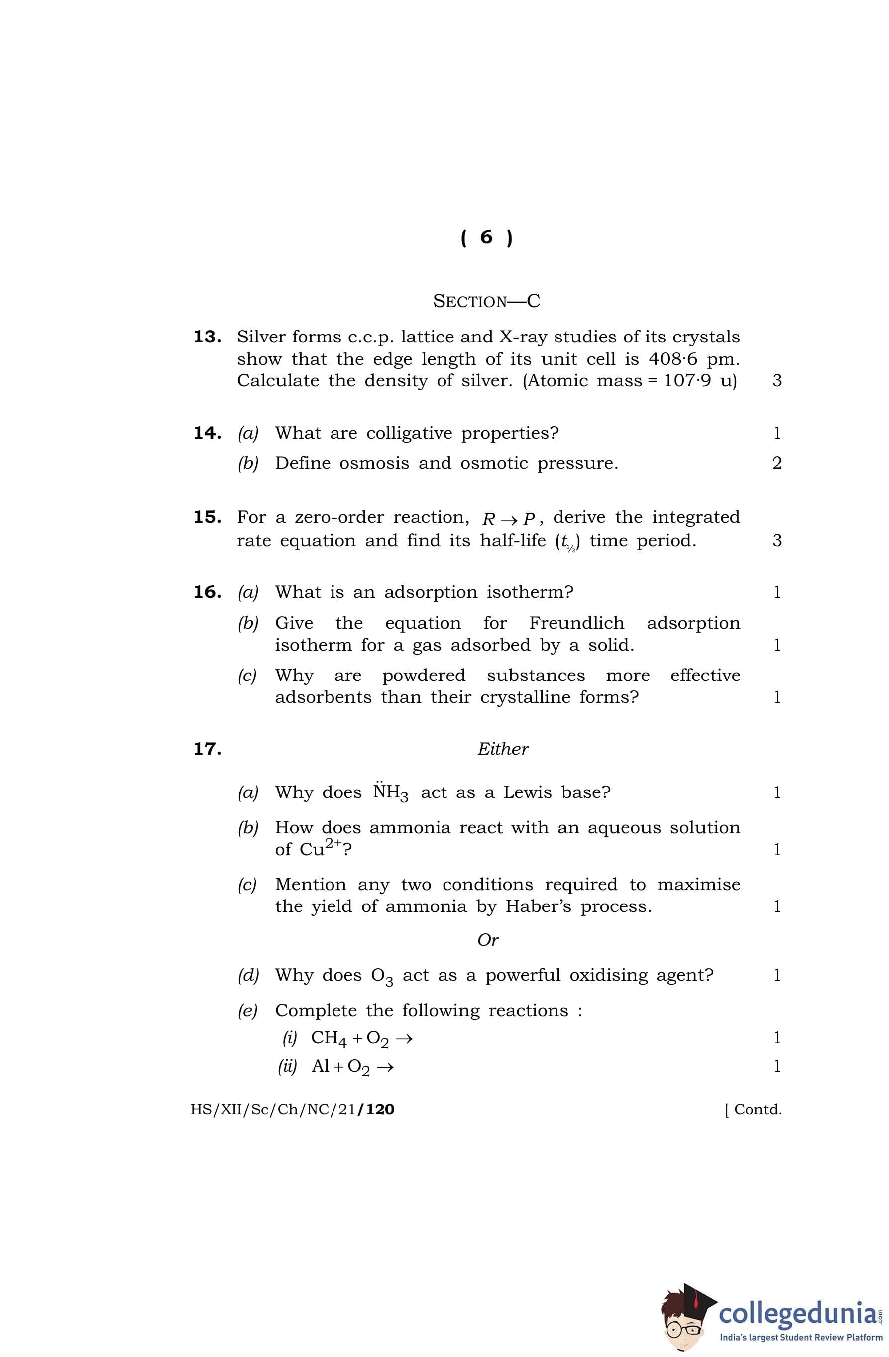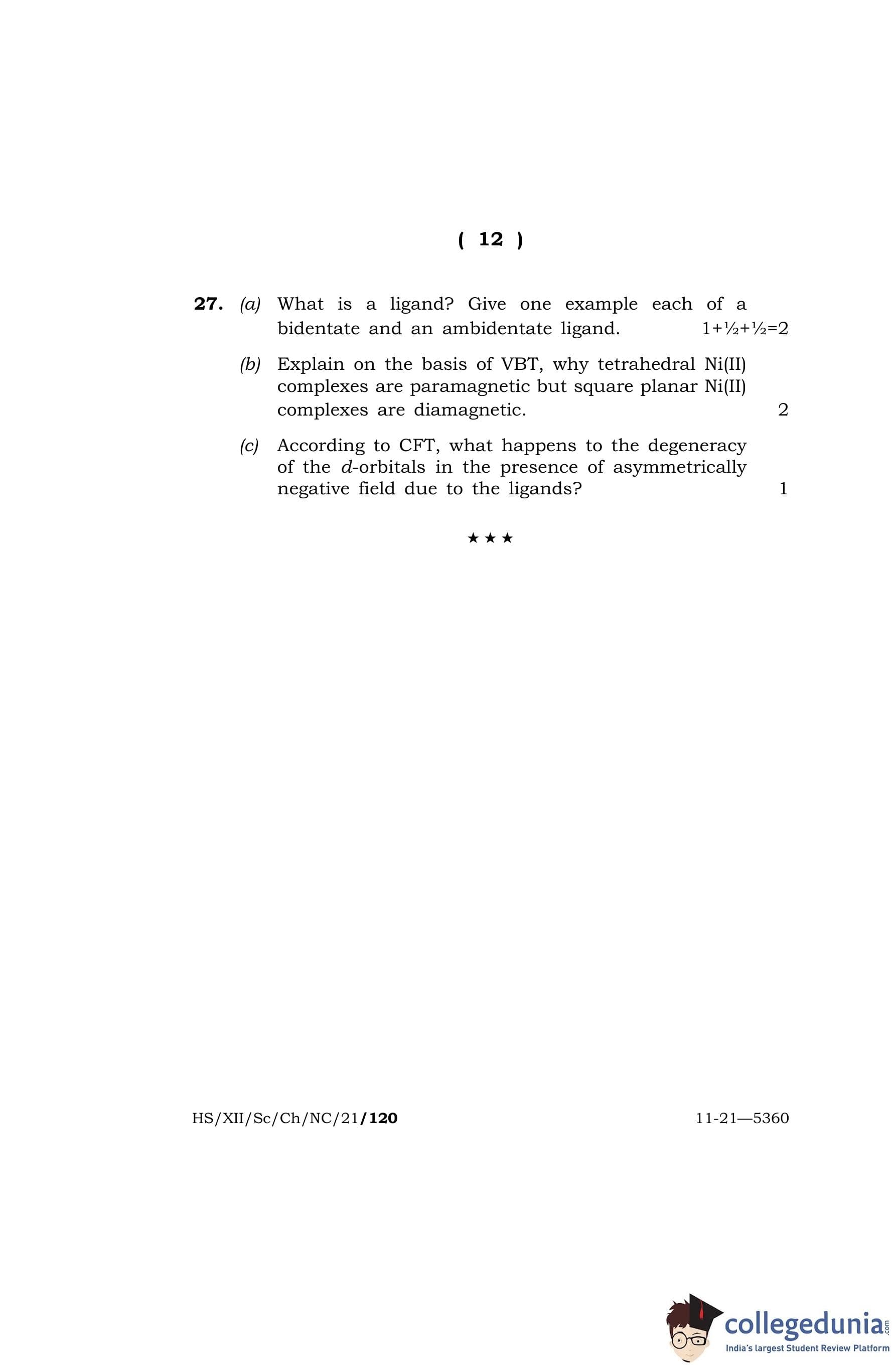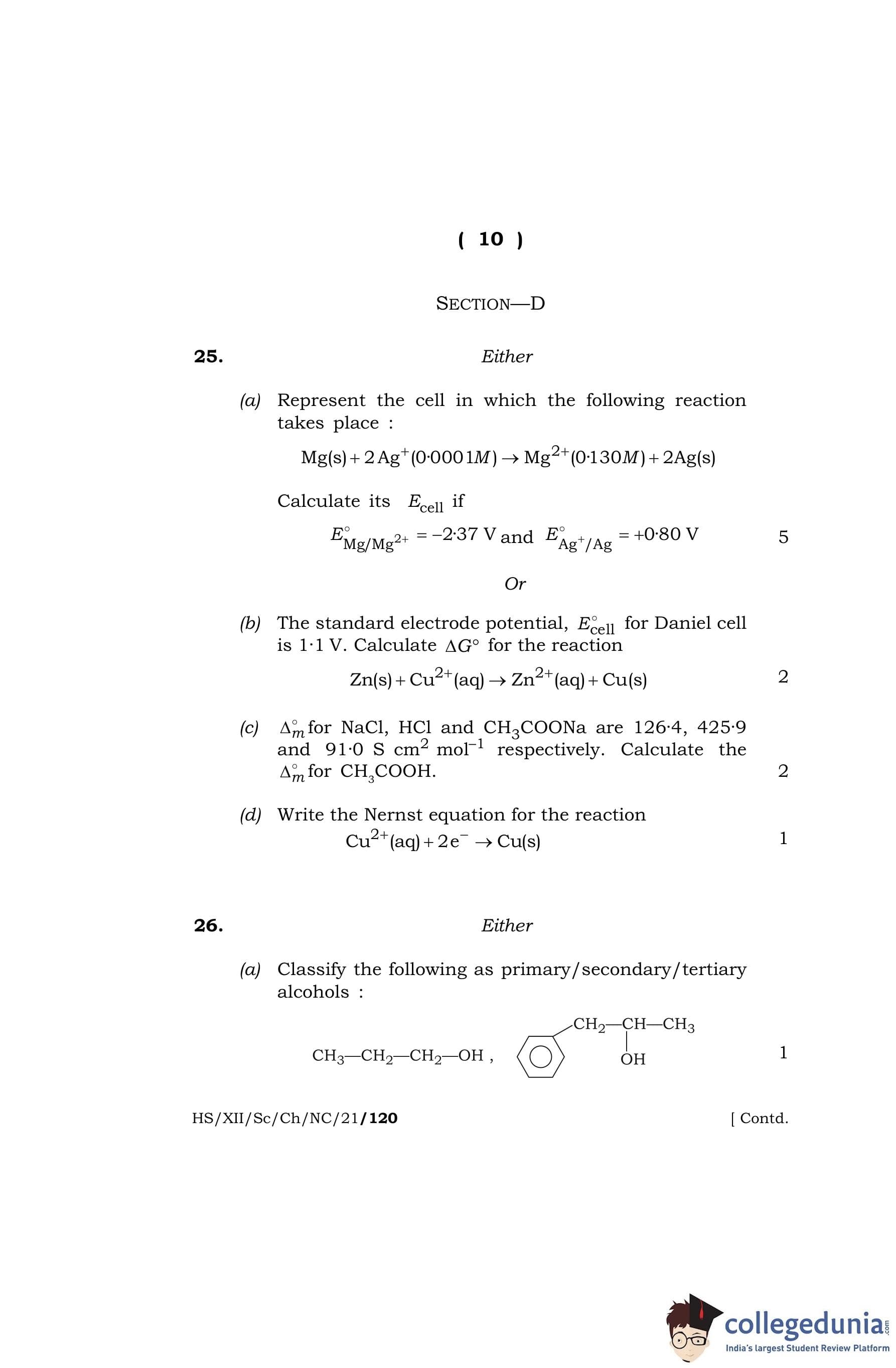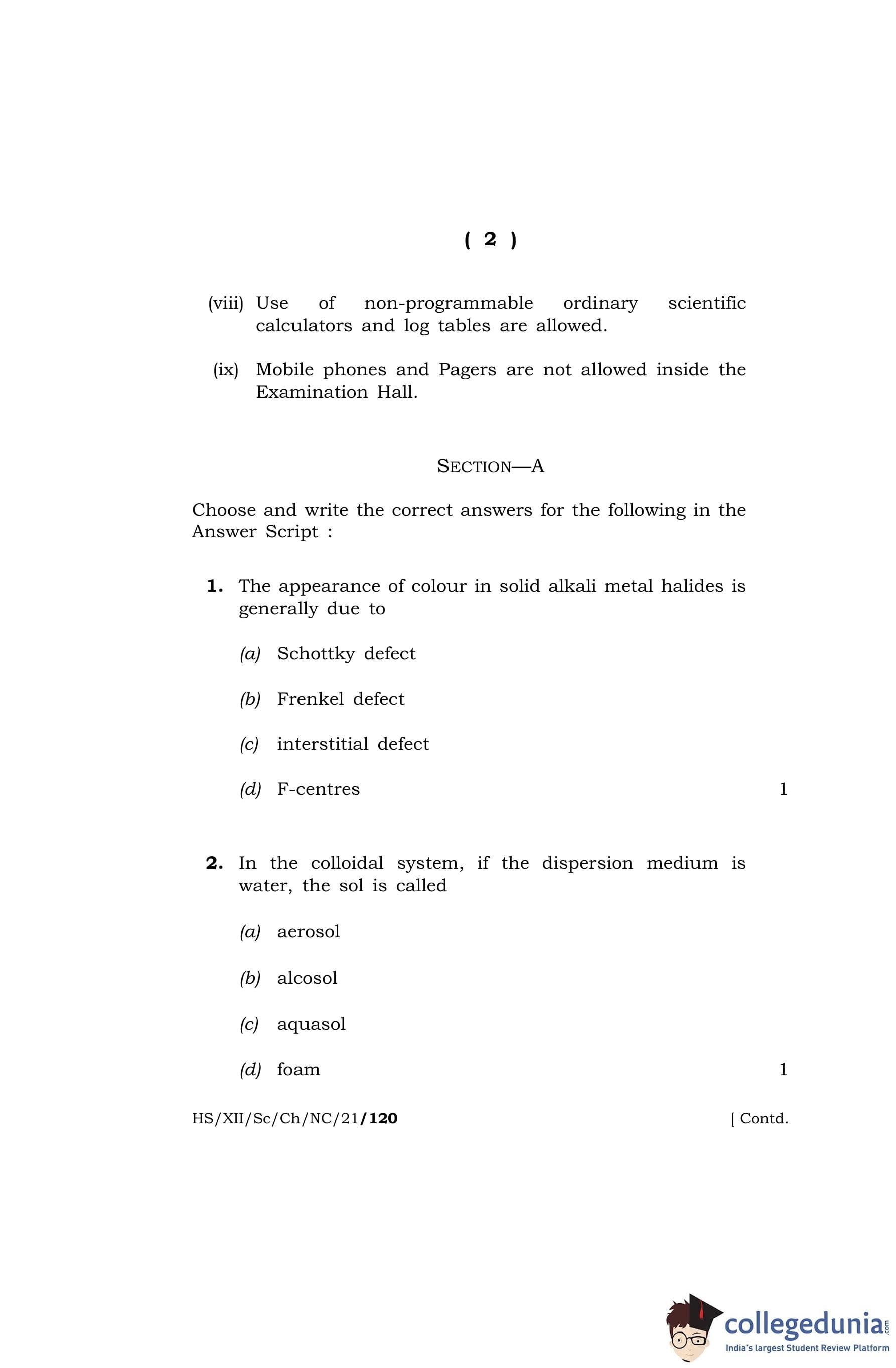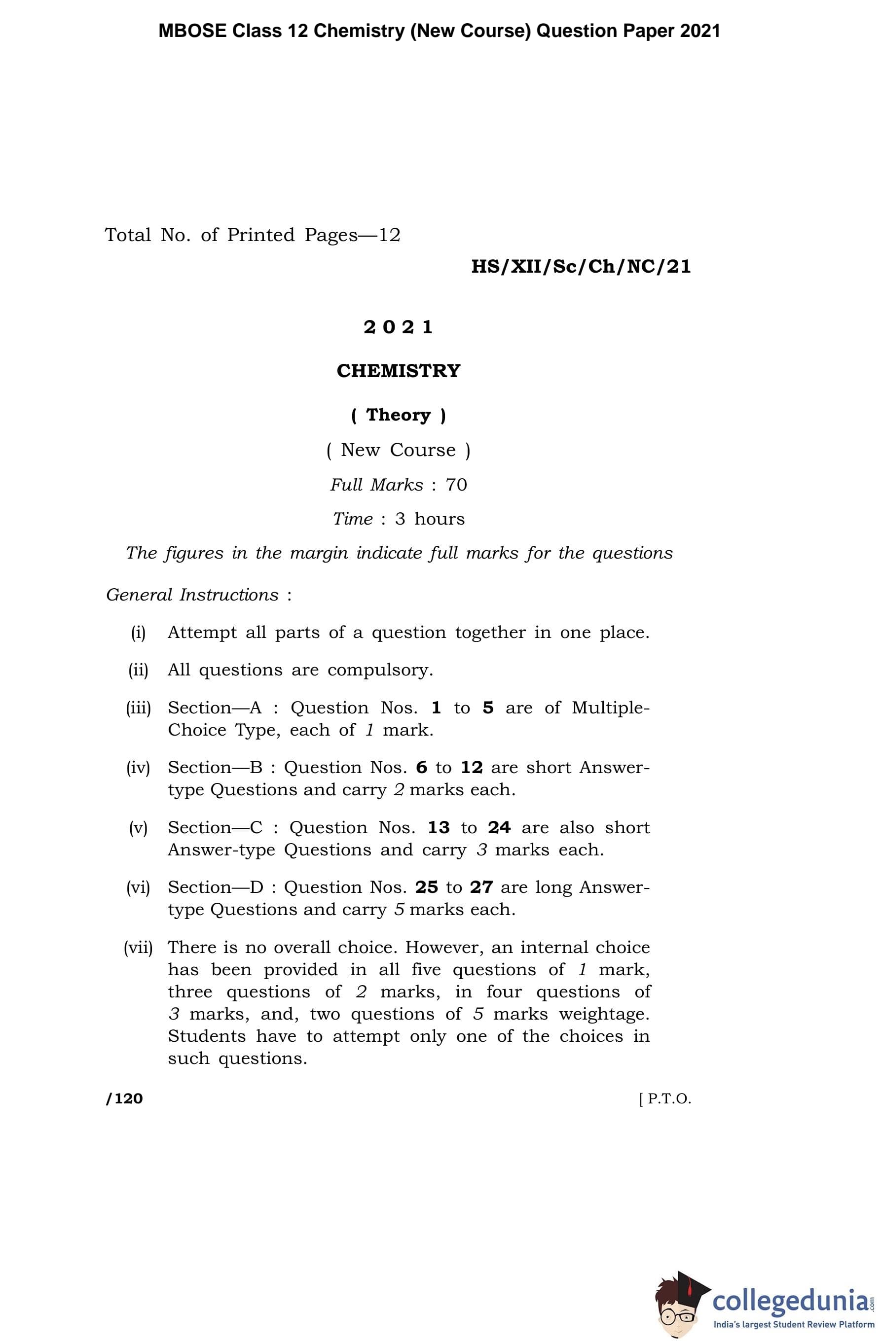 MBOSE Class 12 Chemistry Question Paper 2021 with Answer Key pdf is available for download here. The exam was conducted by Meghalaya Board of School Education on April 26, 2021 in the Morning Session 10 AM to 1 PM. The question paper comprised a total of 27 questions divided among 4 sections.
