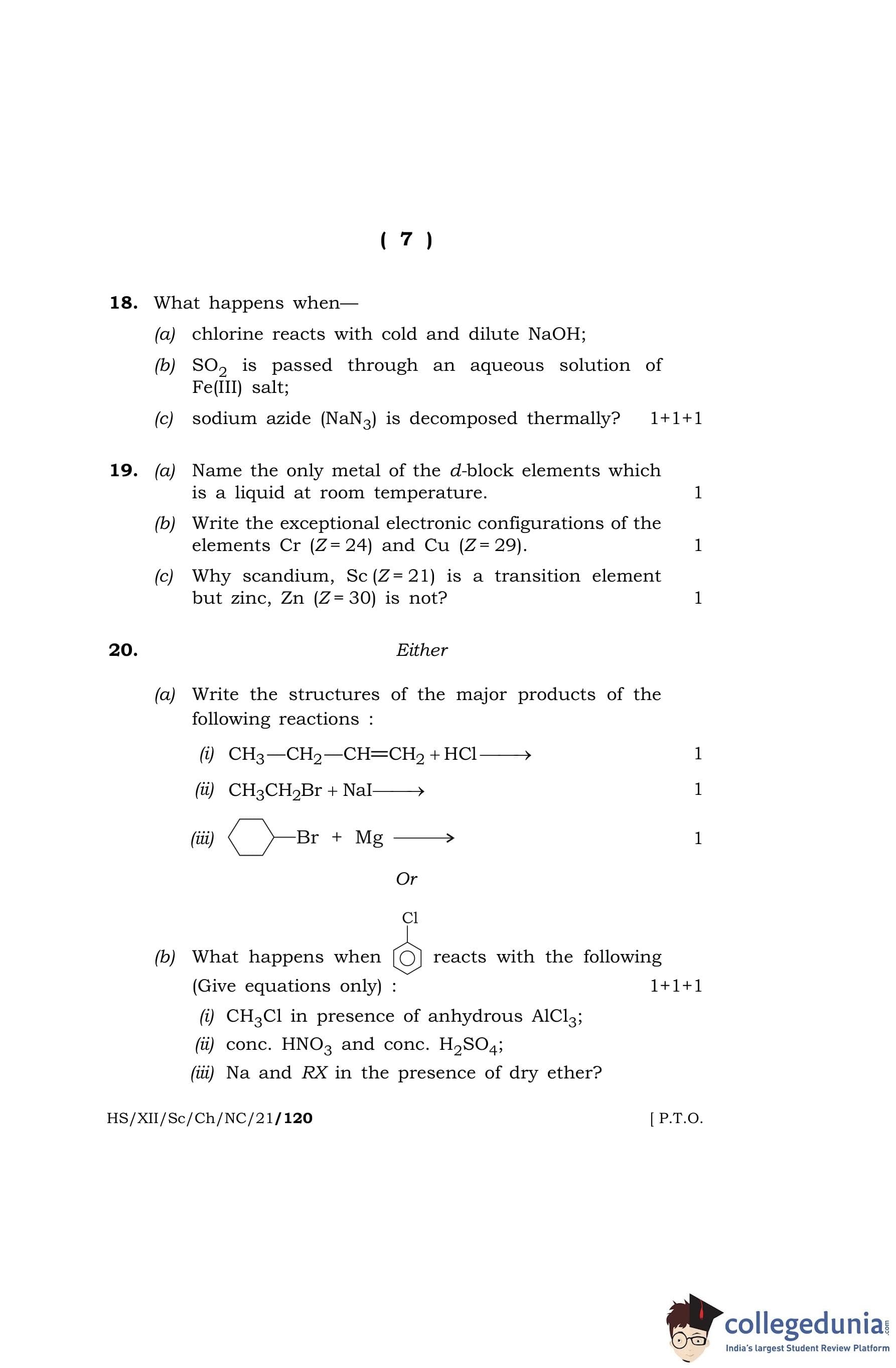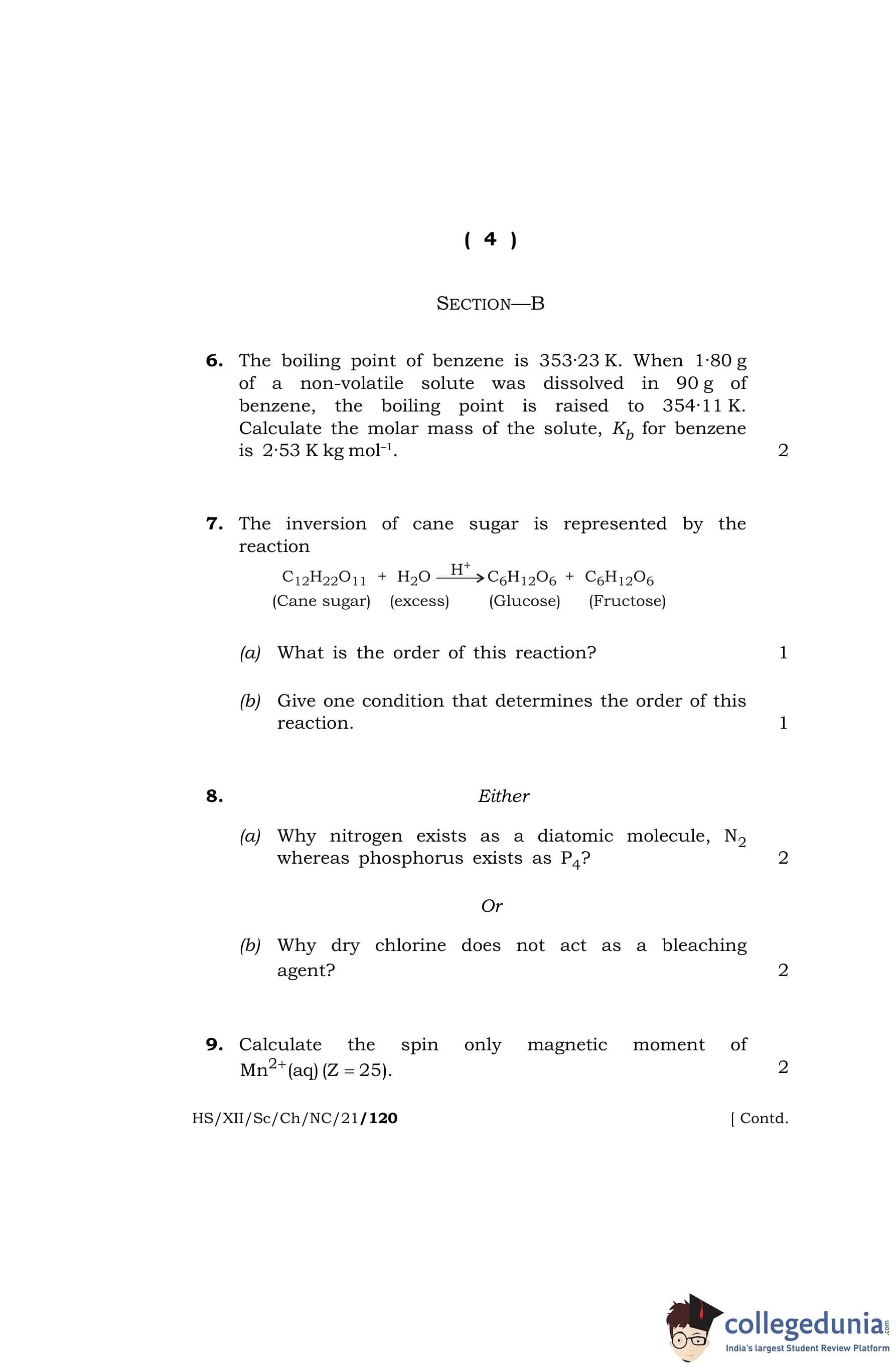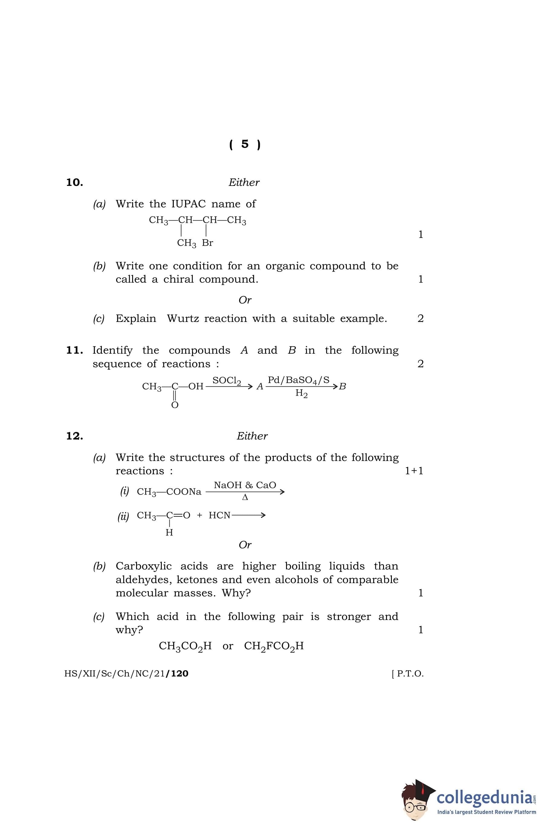 MBOSE Class 12 Chemistry Question Paper 2021