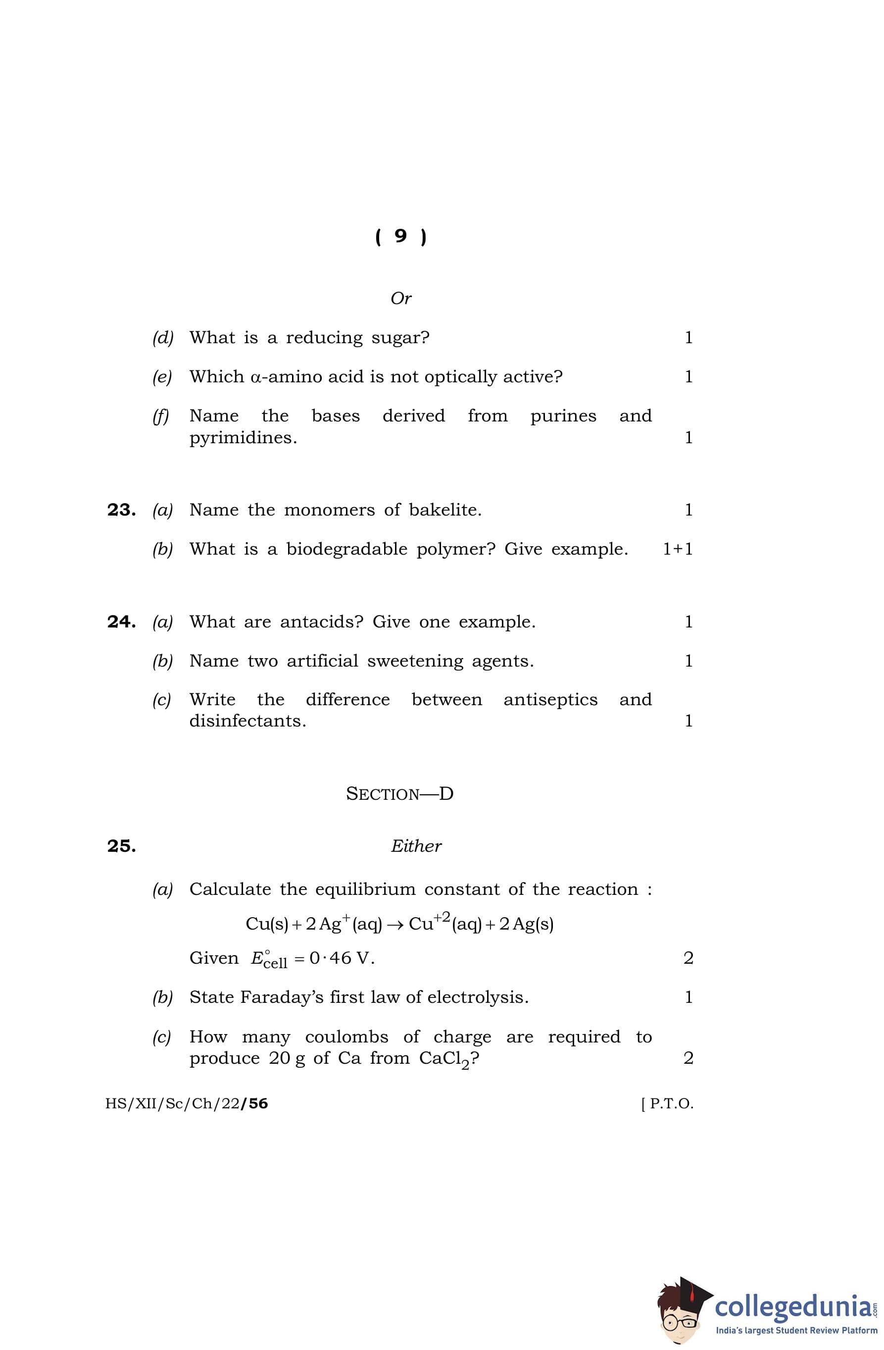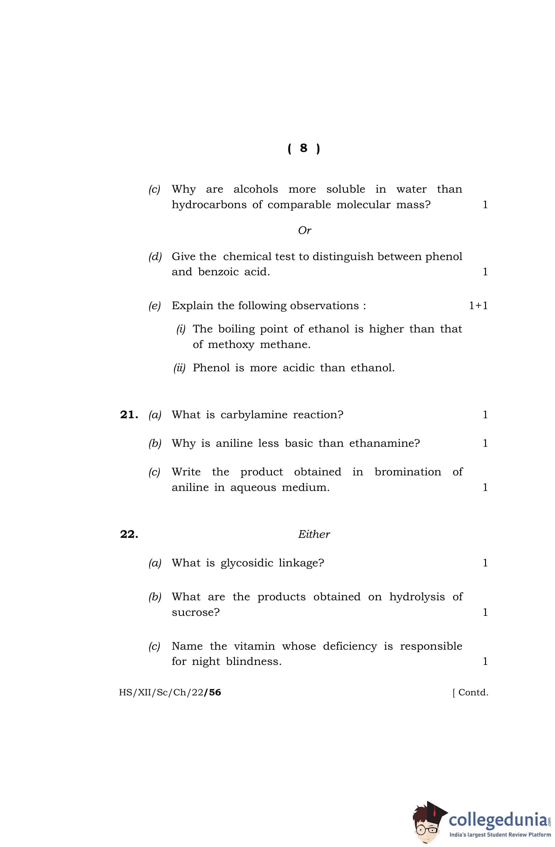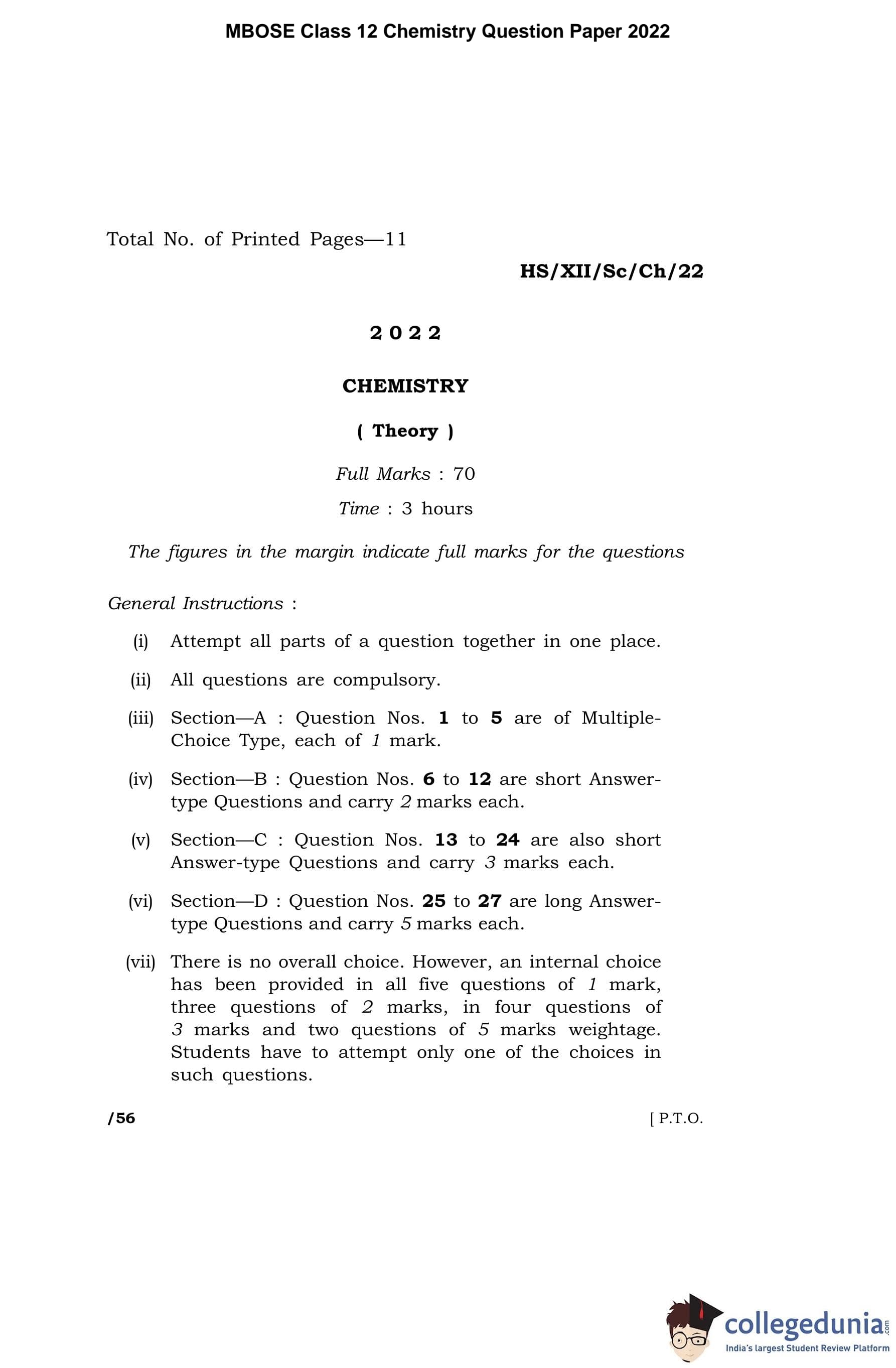 | MBOSE Class 12 Chemistry Question Paper 2022 PDF | MBOSE Class 12 Chemistry Answer Key 2022 PDF |