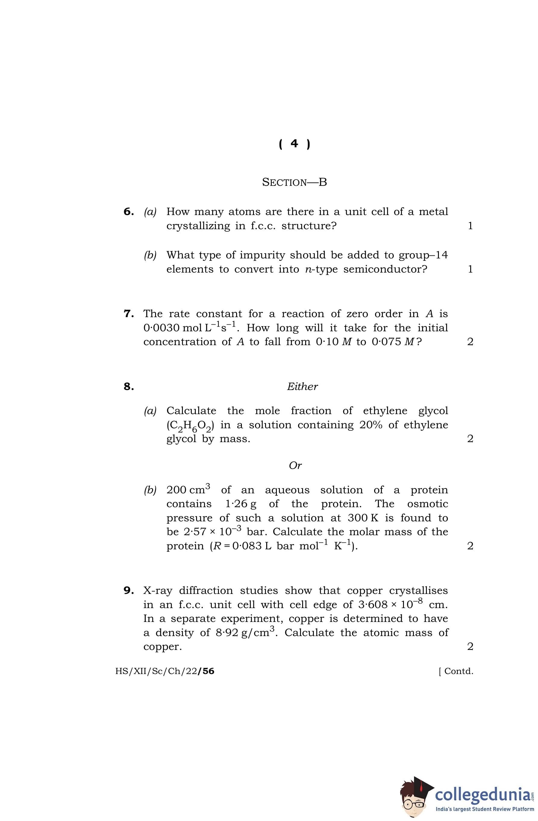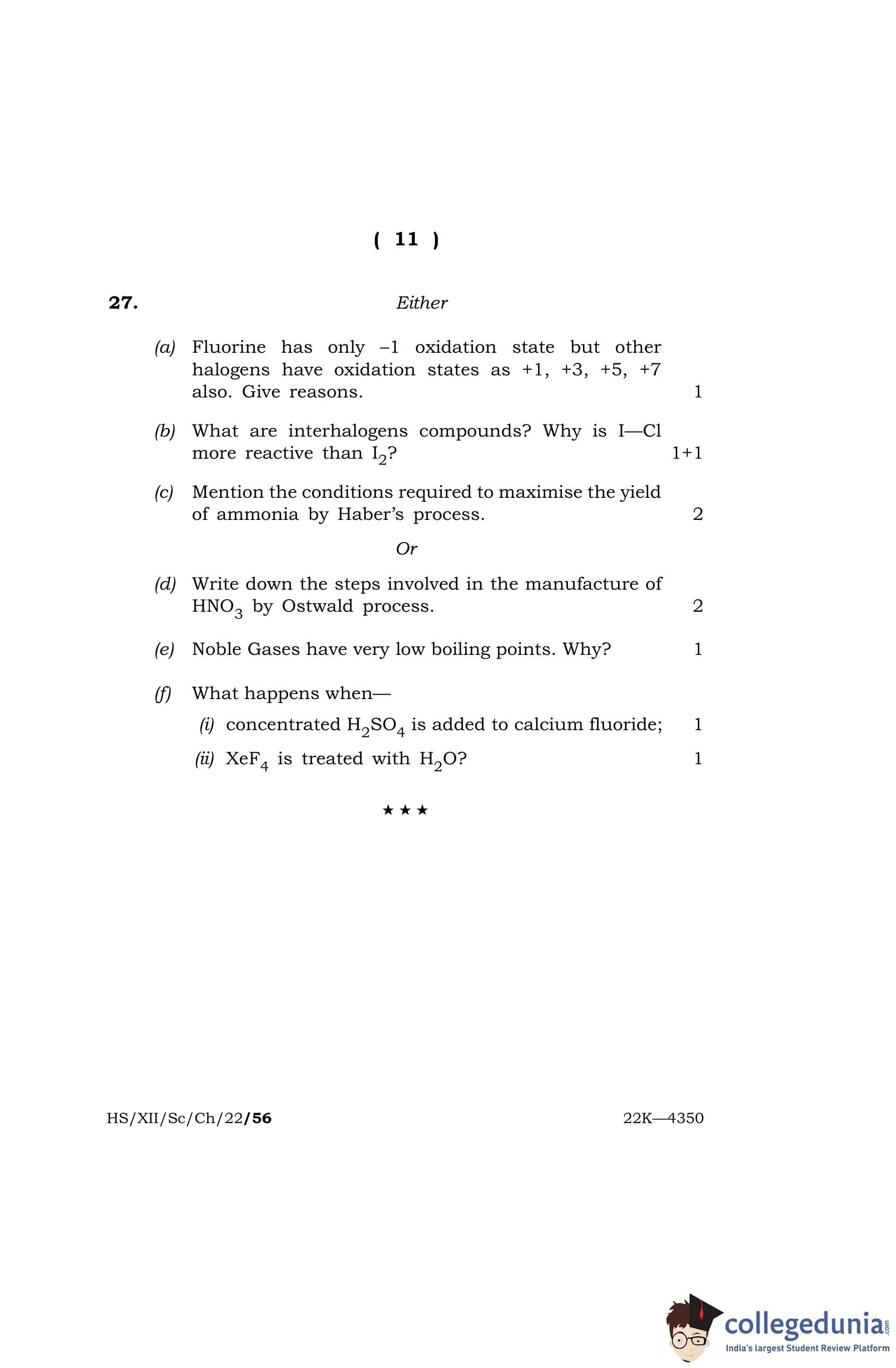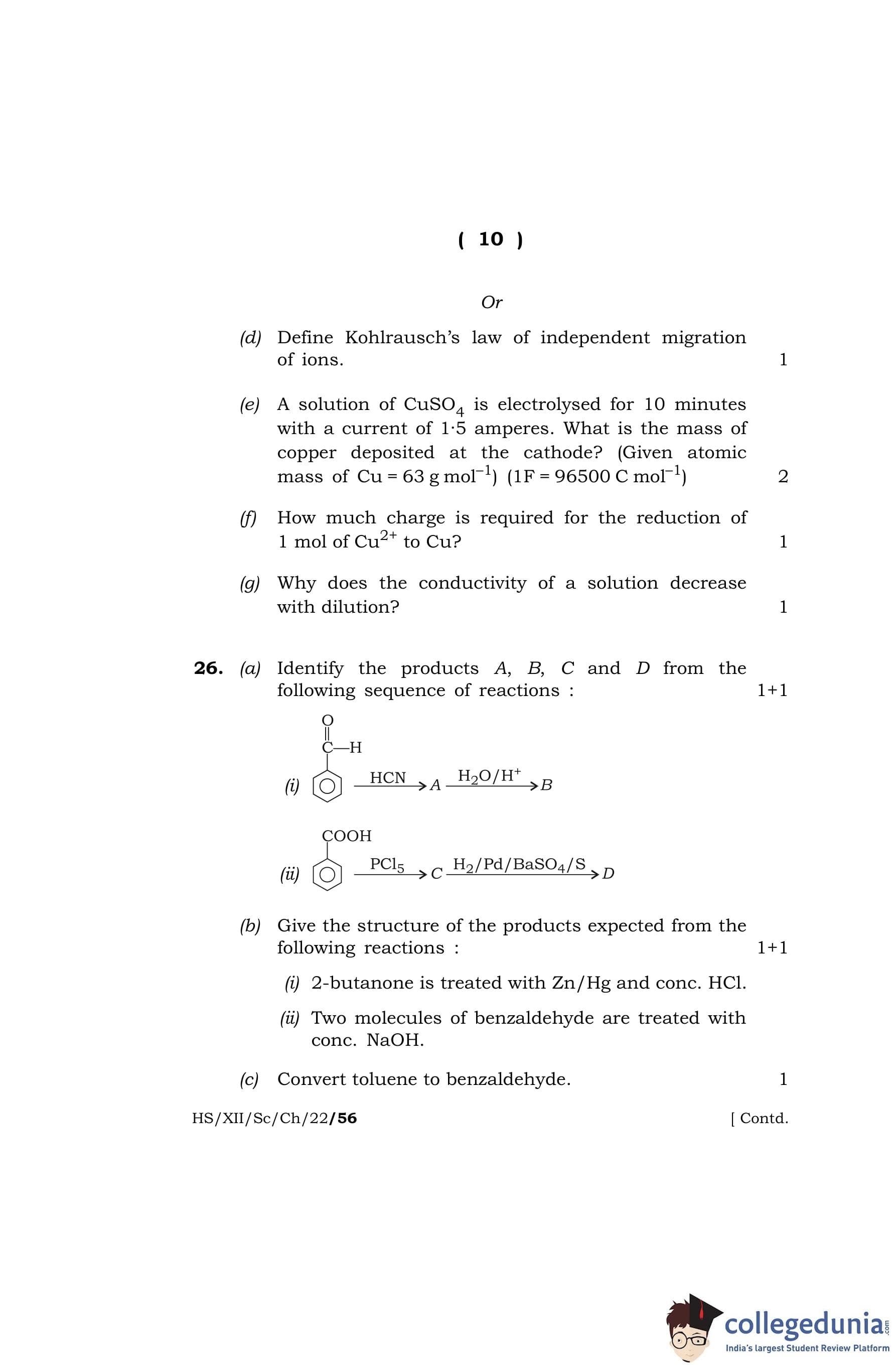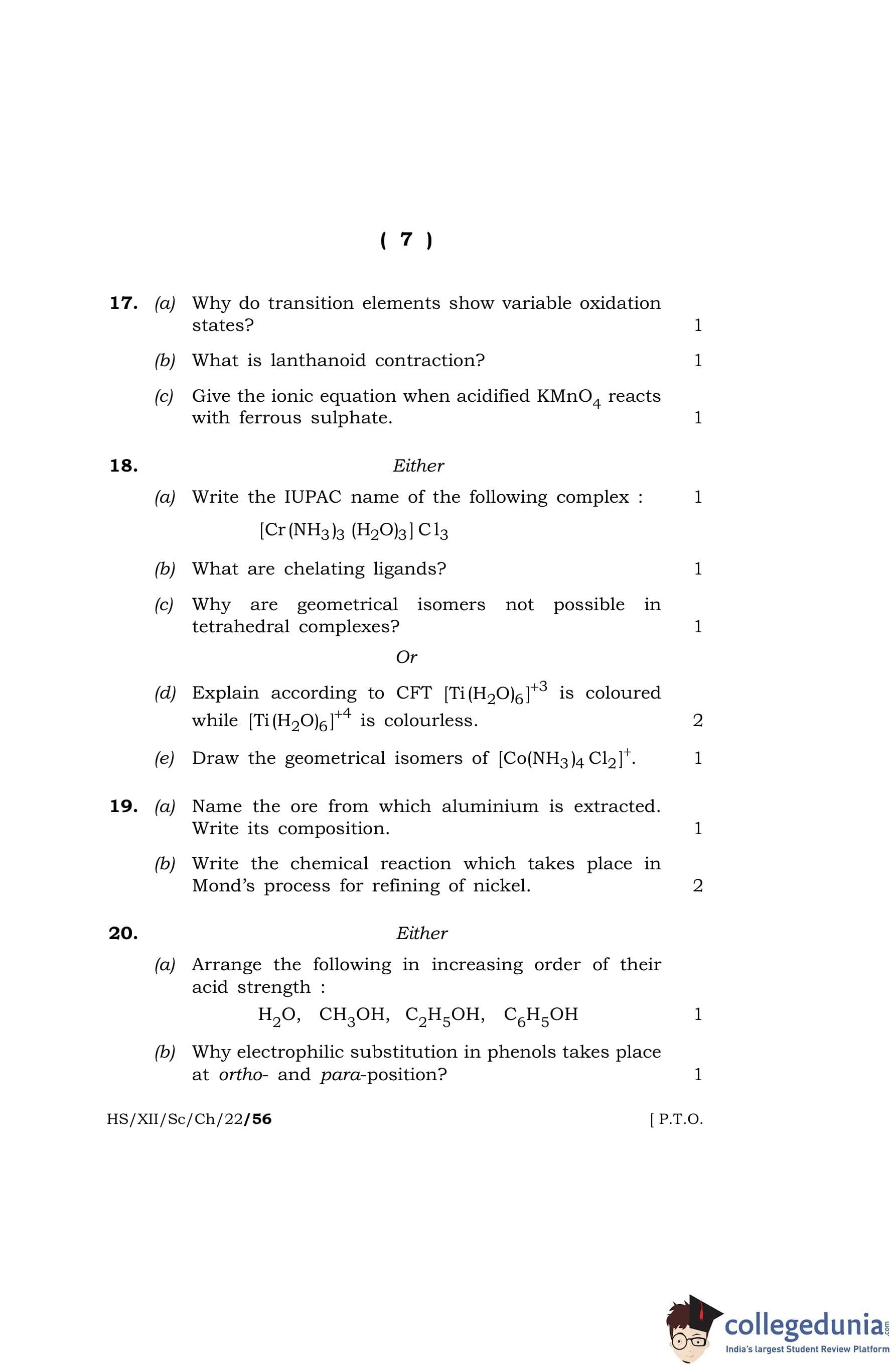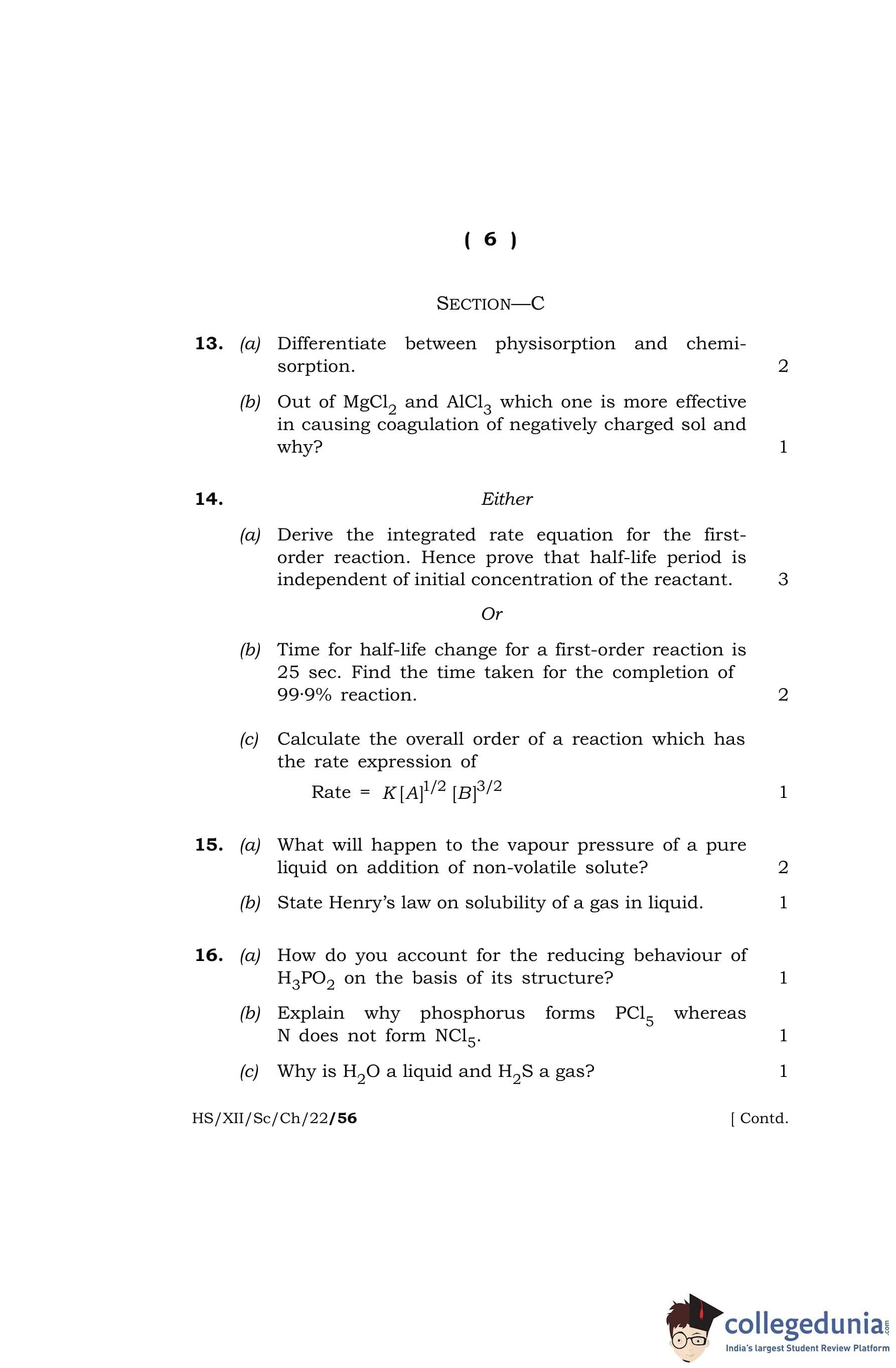 MBOSE Class 12 Chemistry Question Paper 2022 with Answer Key pdf is available for download here. The exam was conducted by Meghalaya Board of School Education on April 4, 2022 in the Morning Session 10 AM to 1 PM. The question paper comprised a total of 27 questions divided among 4 sections.