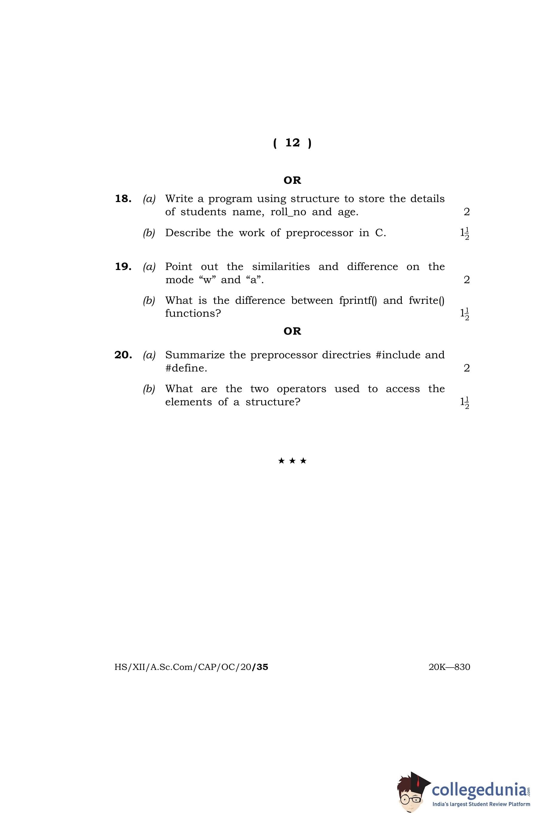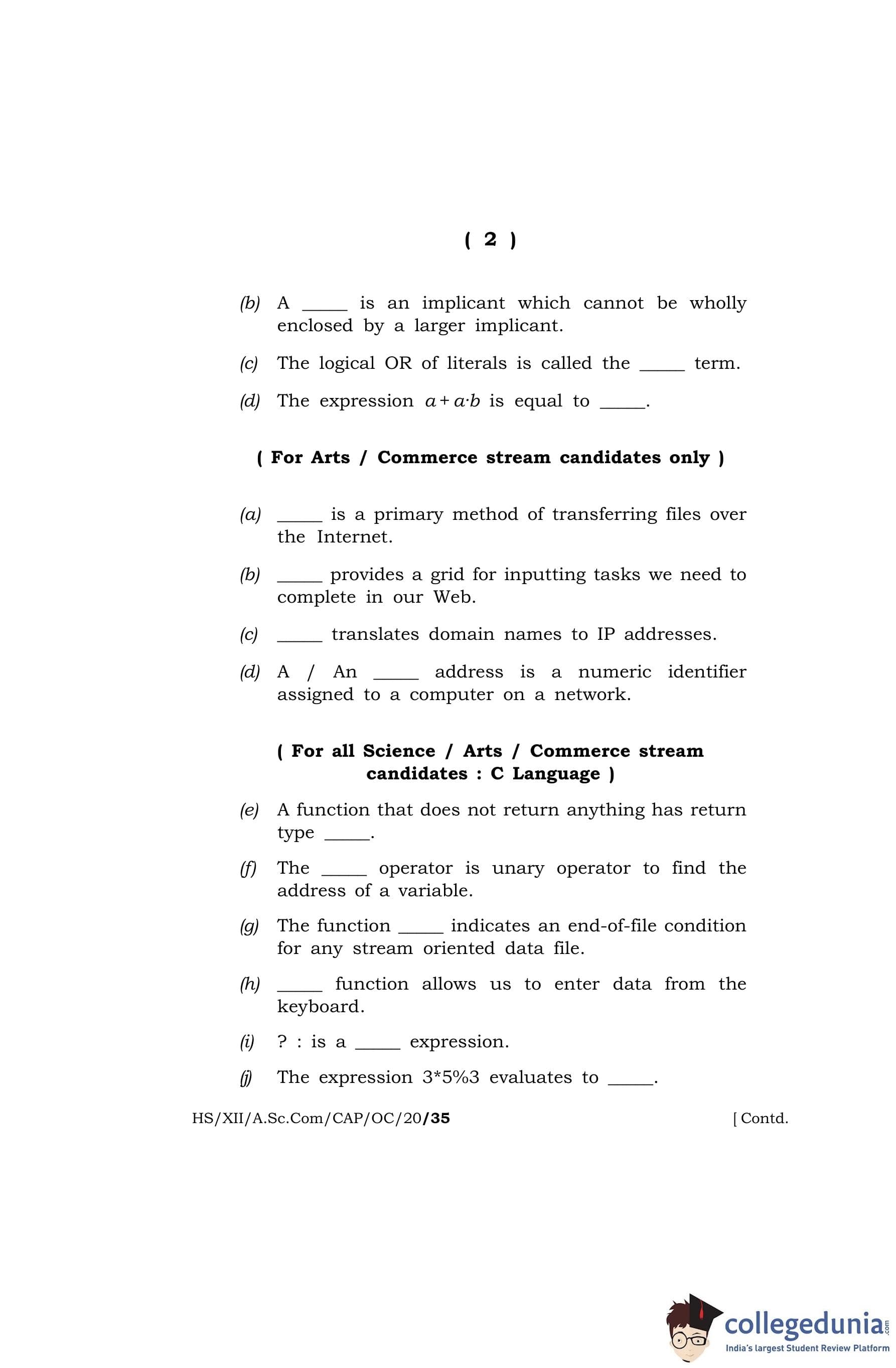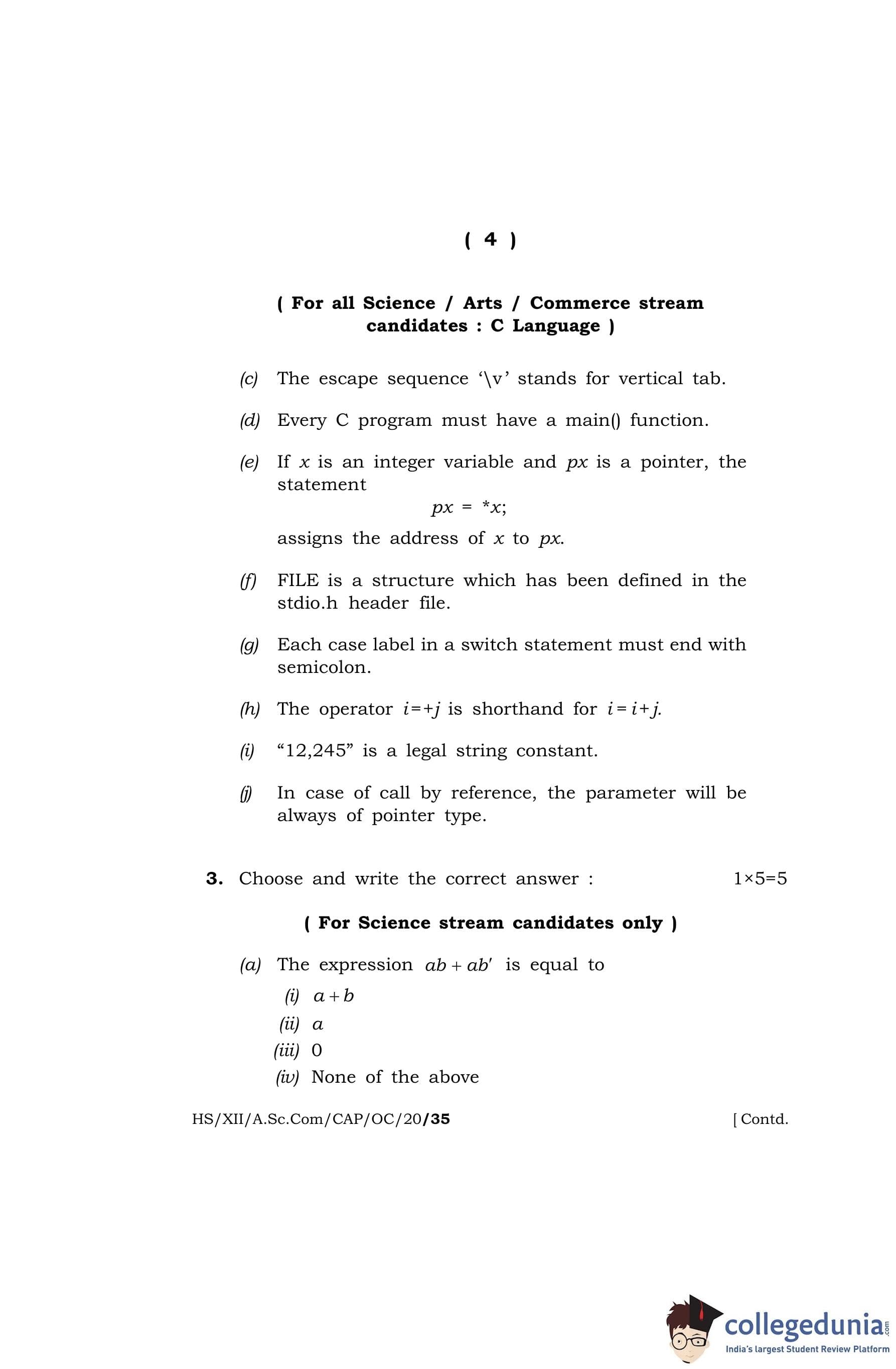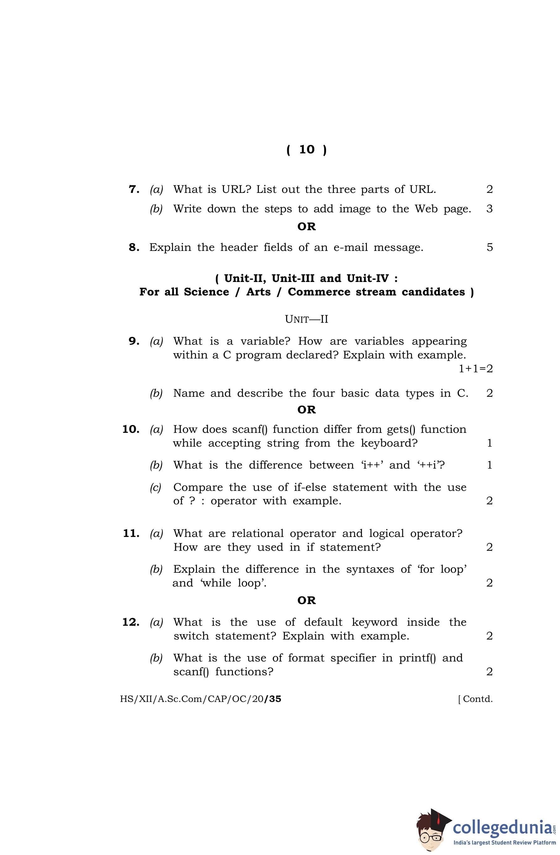 MBOSE Class 12 Computer Applications Question Paper 2020 with Answer Key