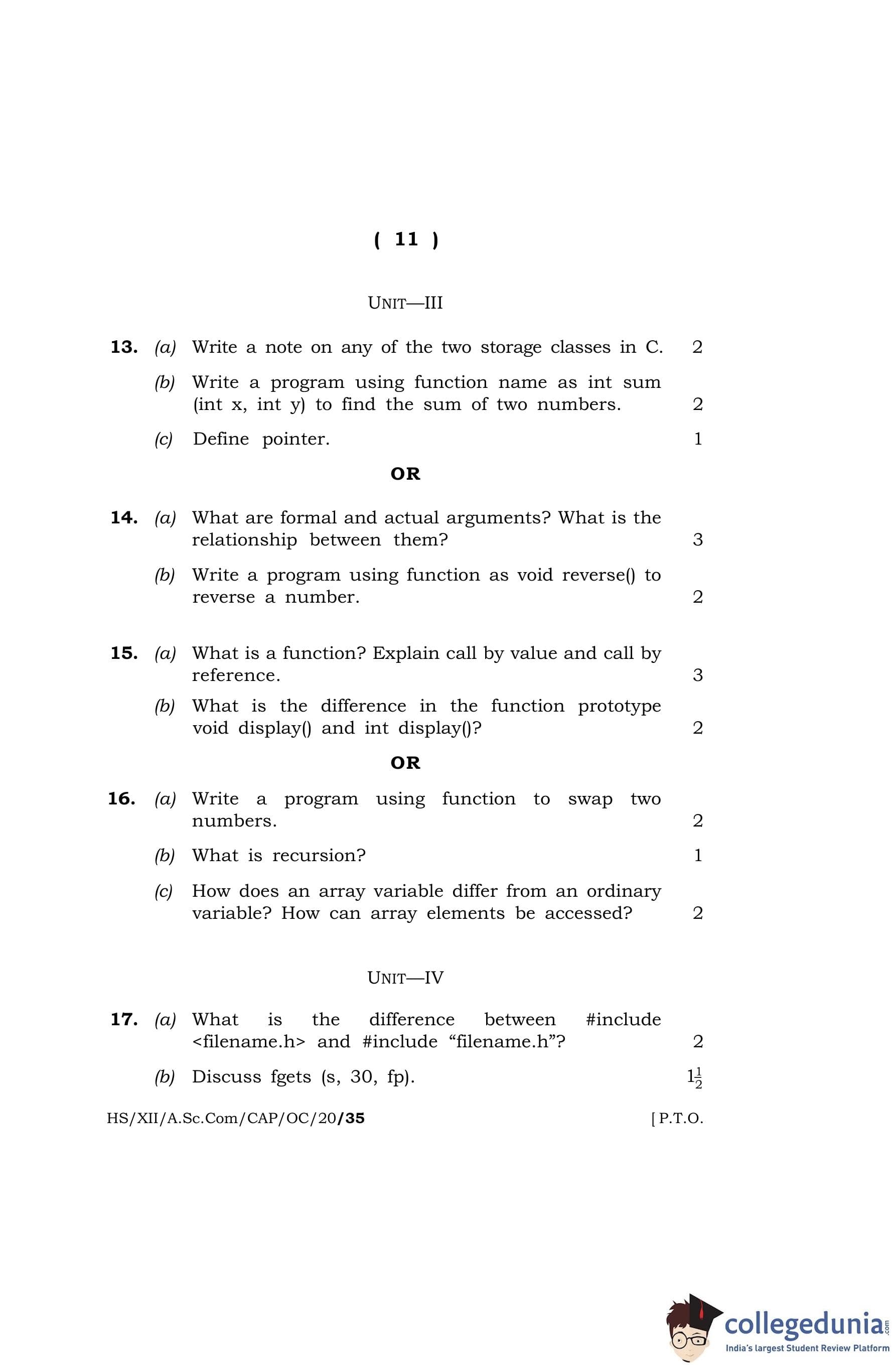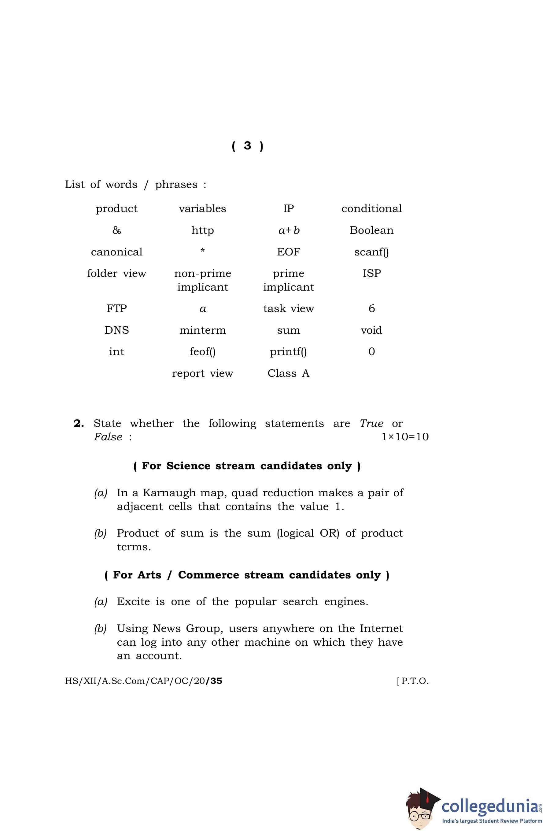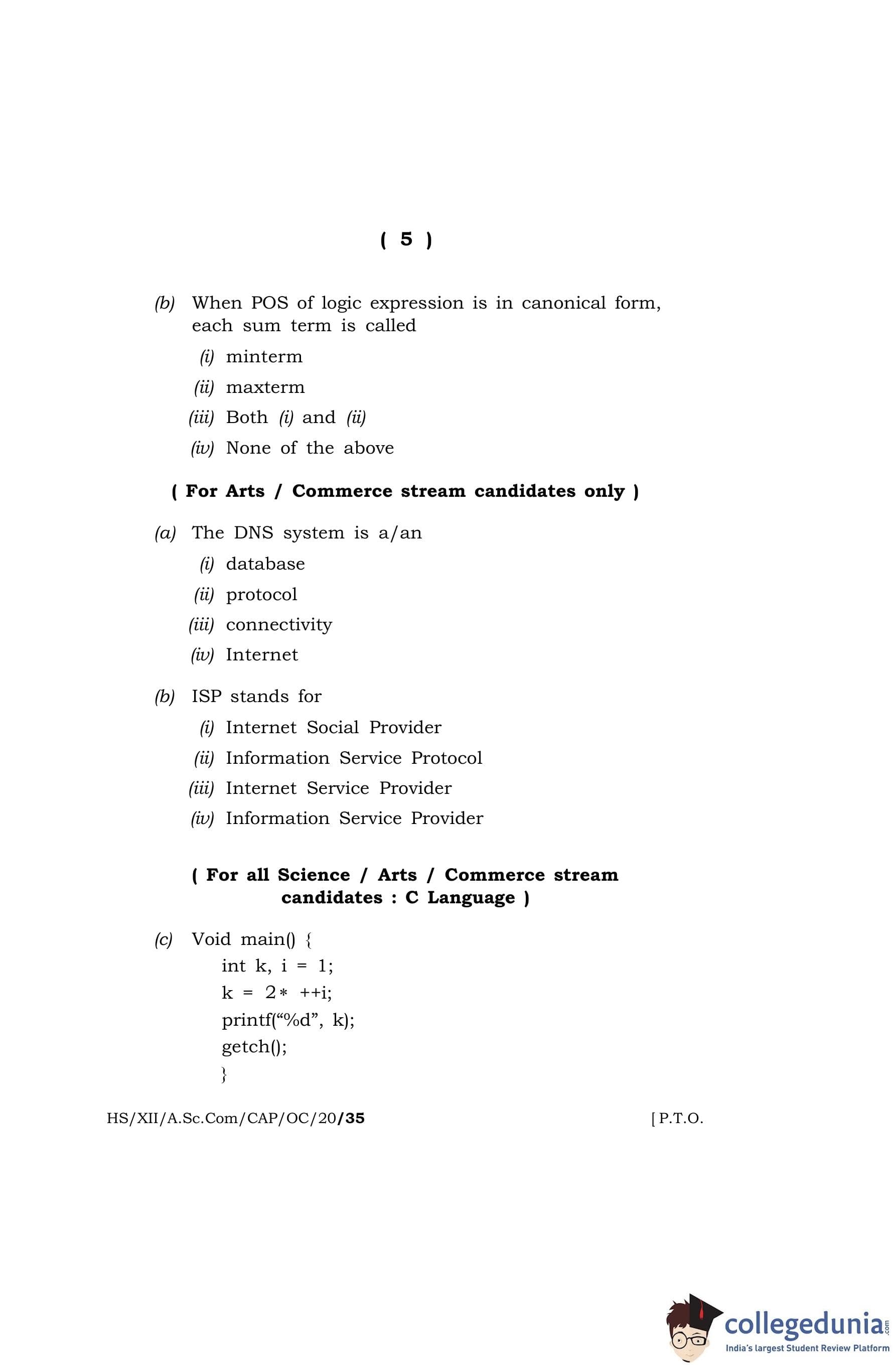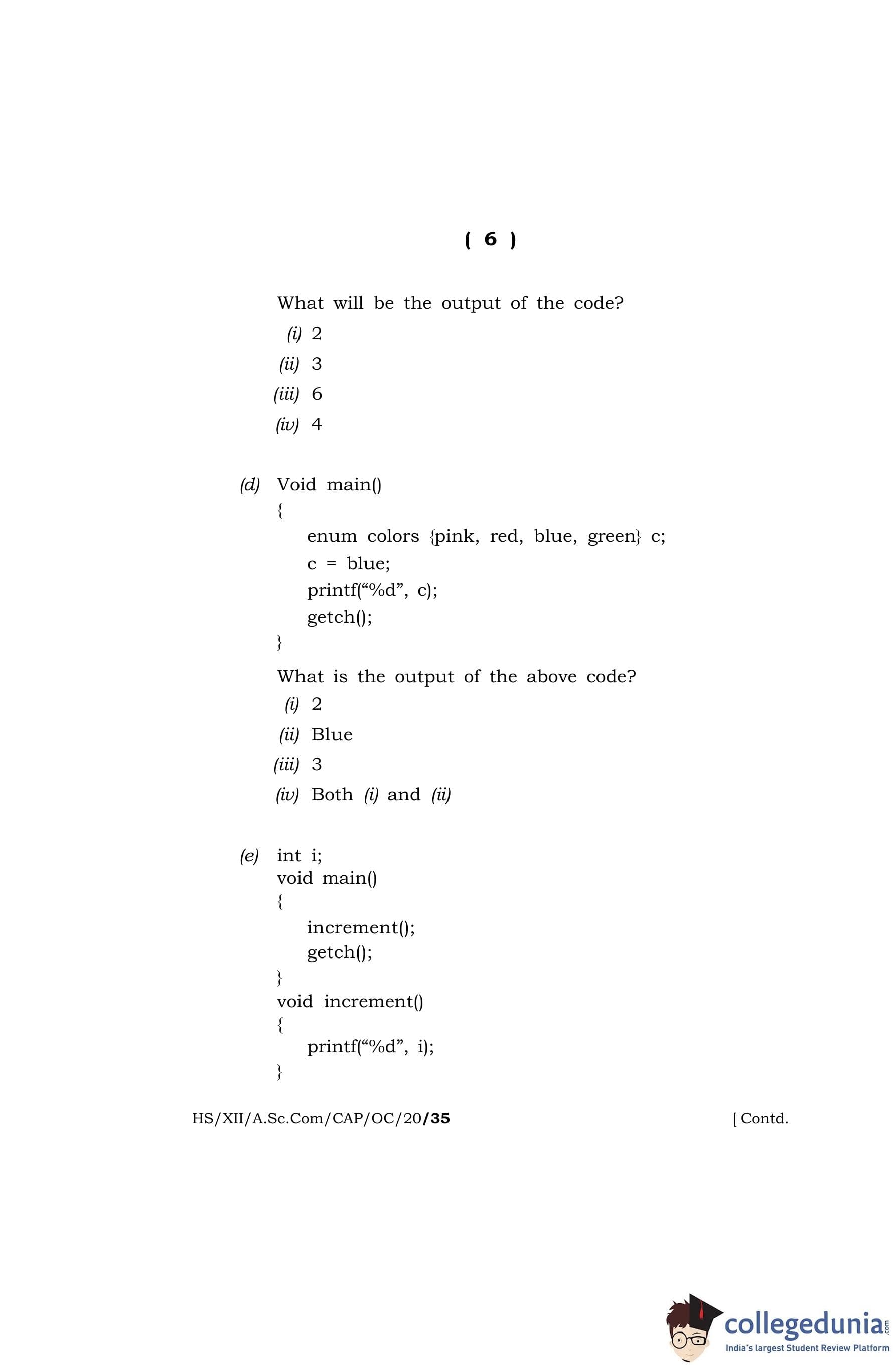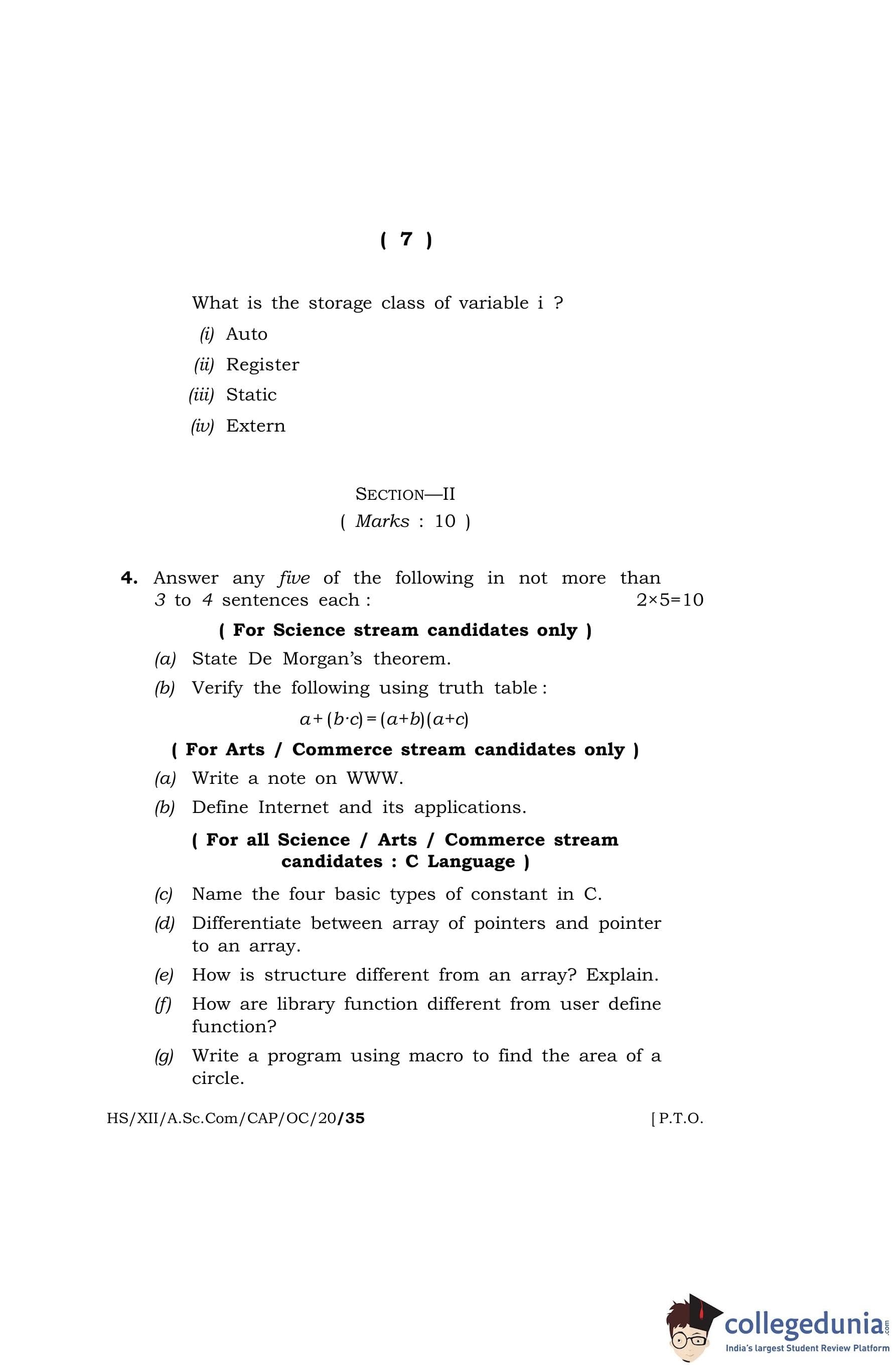 MBOSE Class 12 Computer Applications Question Paper 2020 with Answer Key