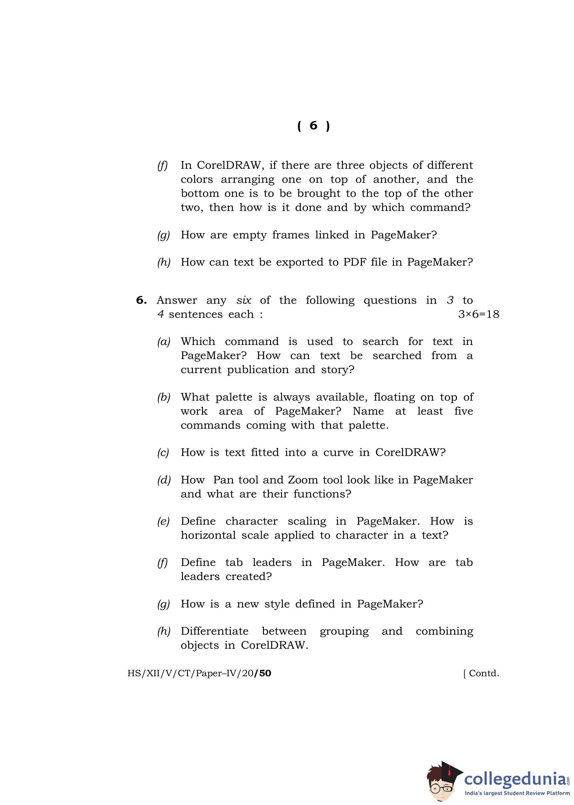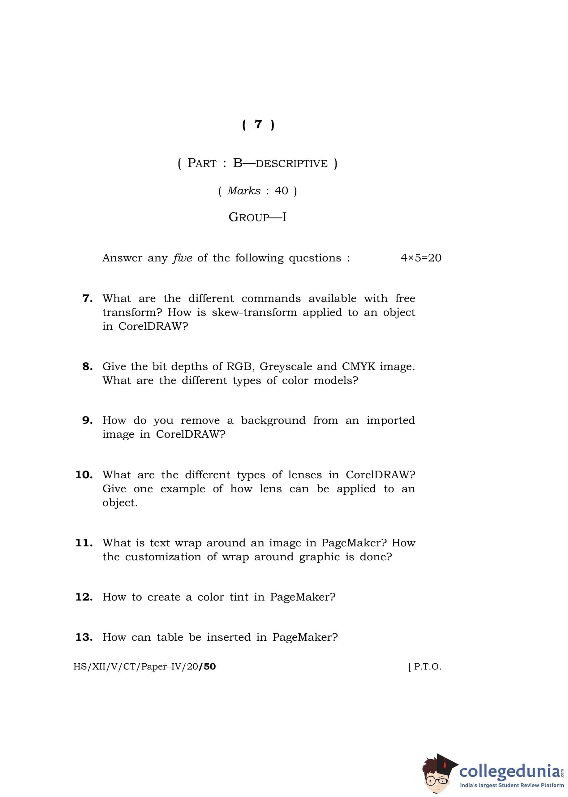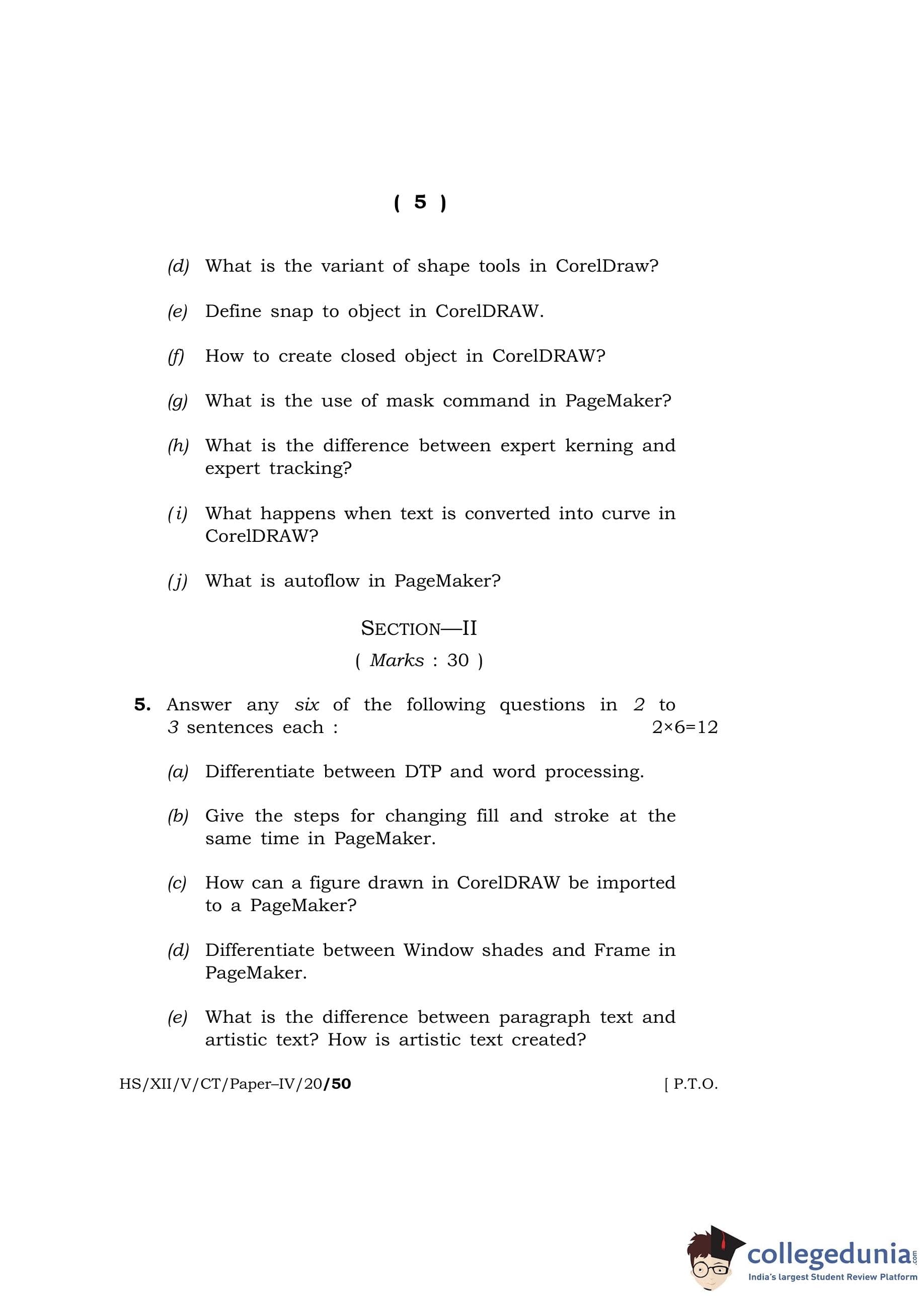 MBOSE Class 12 Computer Techniquie - IV Question Paper 2020