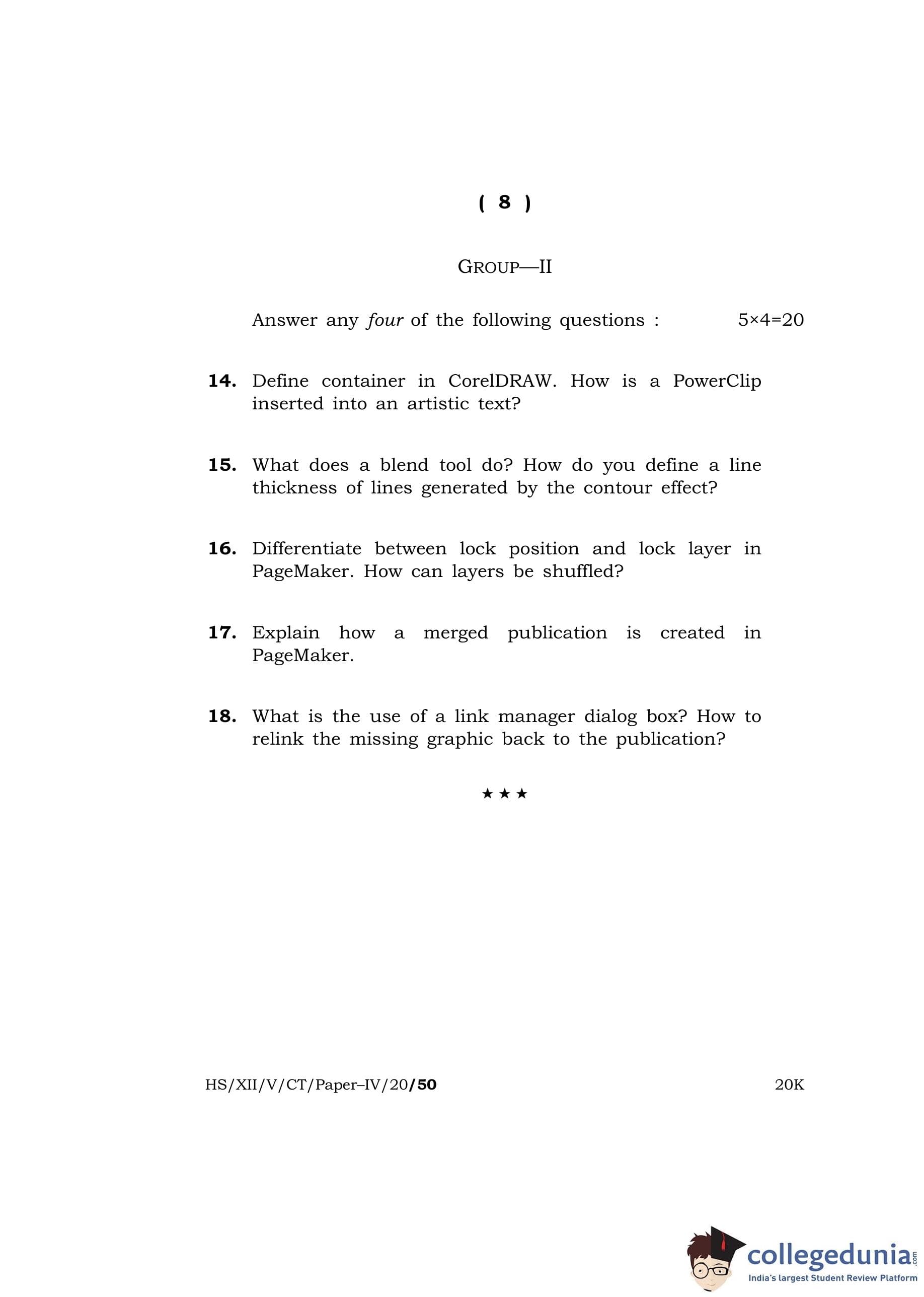 MBOSE Class 12 Computer Techniquie - IV Question Paper 2020 with Answer Key pdf is available for download here. The exam was conducted by Meghalaya Board of School Education on March 5, 2020 in the Morning Session 10 AM to 1 PM. The question paper comprised a total of 18 questions divided among 2 sections.