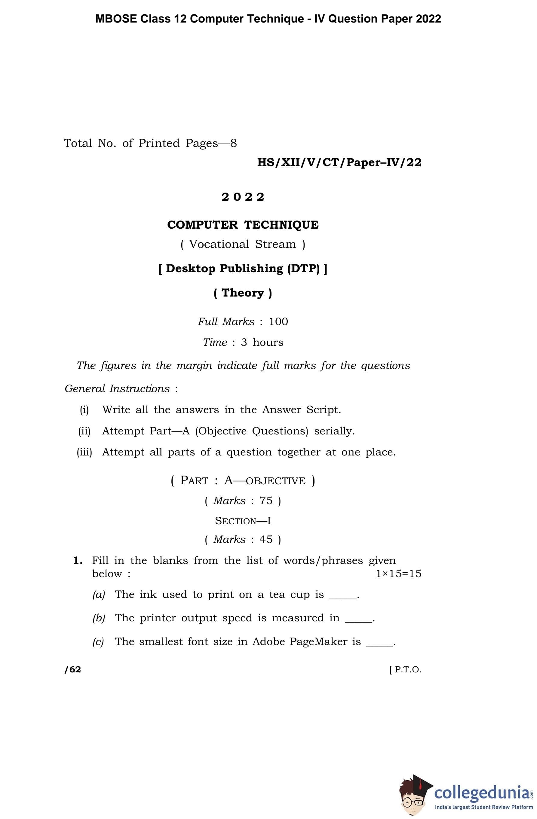 | MBOSE Class 12 Computer Techniquie - IV Question Paper 2022 PDF | MBOSE Class 12 Computer Techniquie - IV Answer Key 2022 PDF |