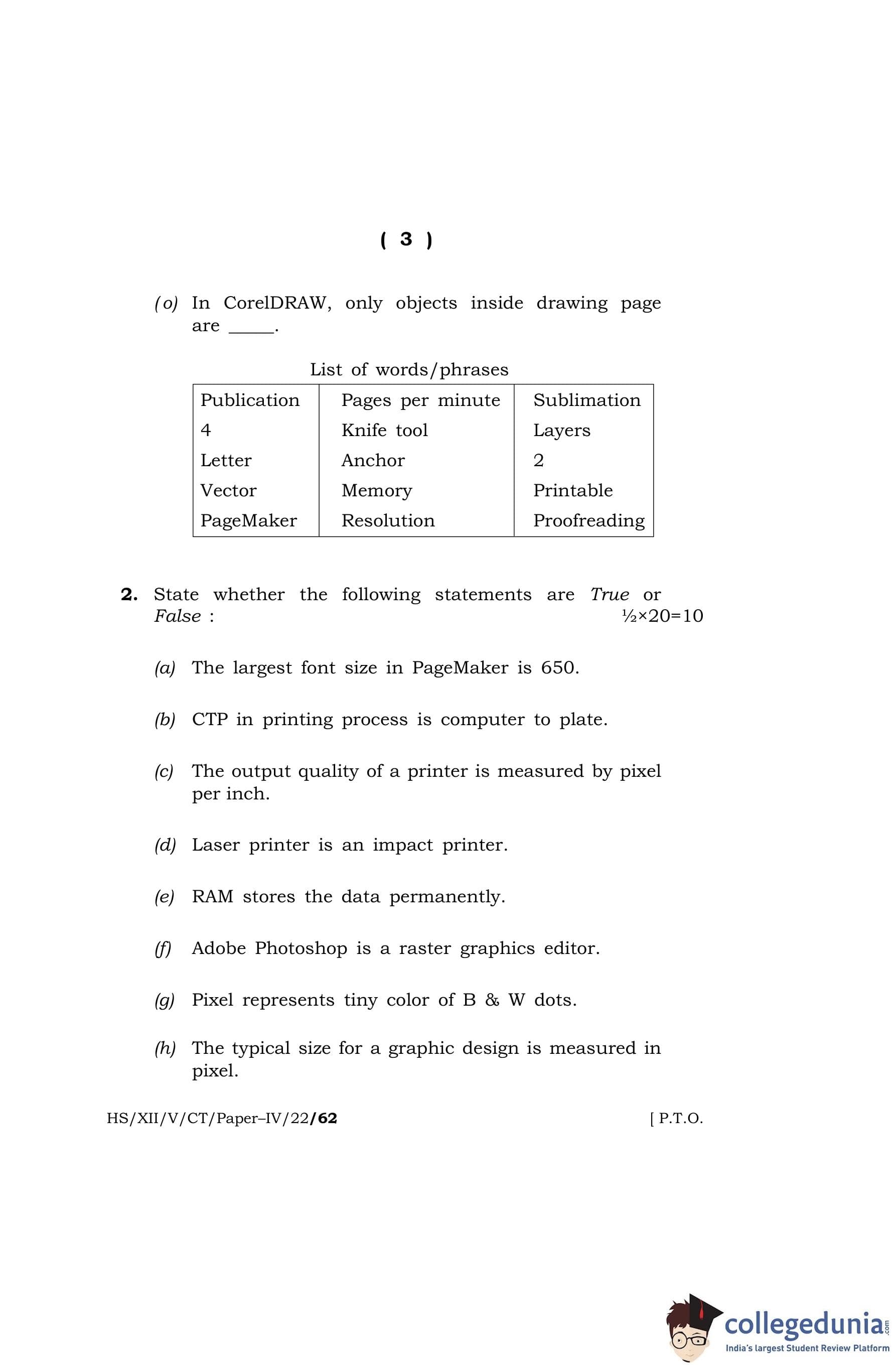 MBOSE Class 12 Computer Techniquie - IV Question Paper 2022