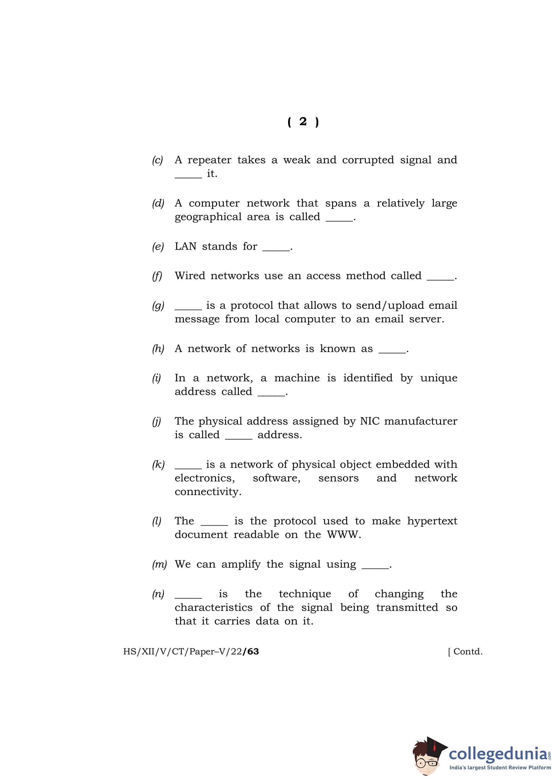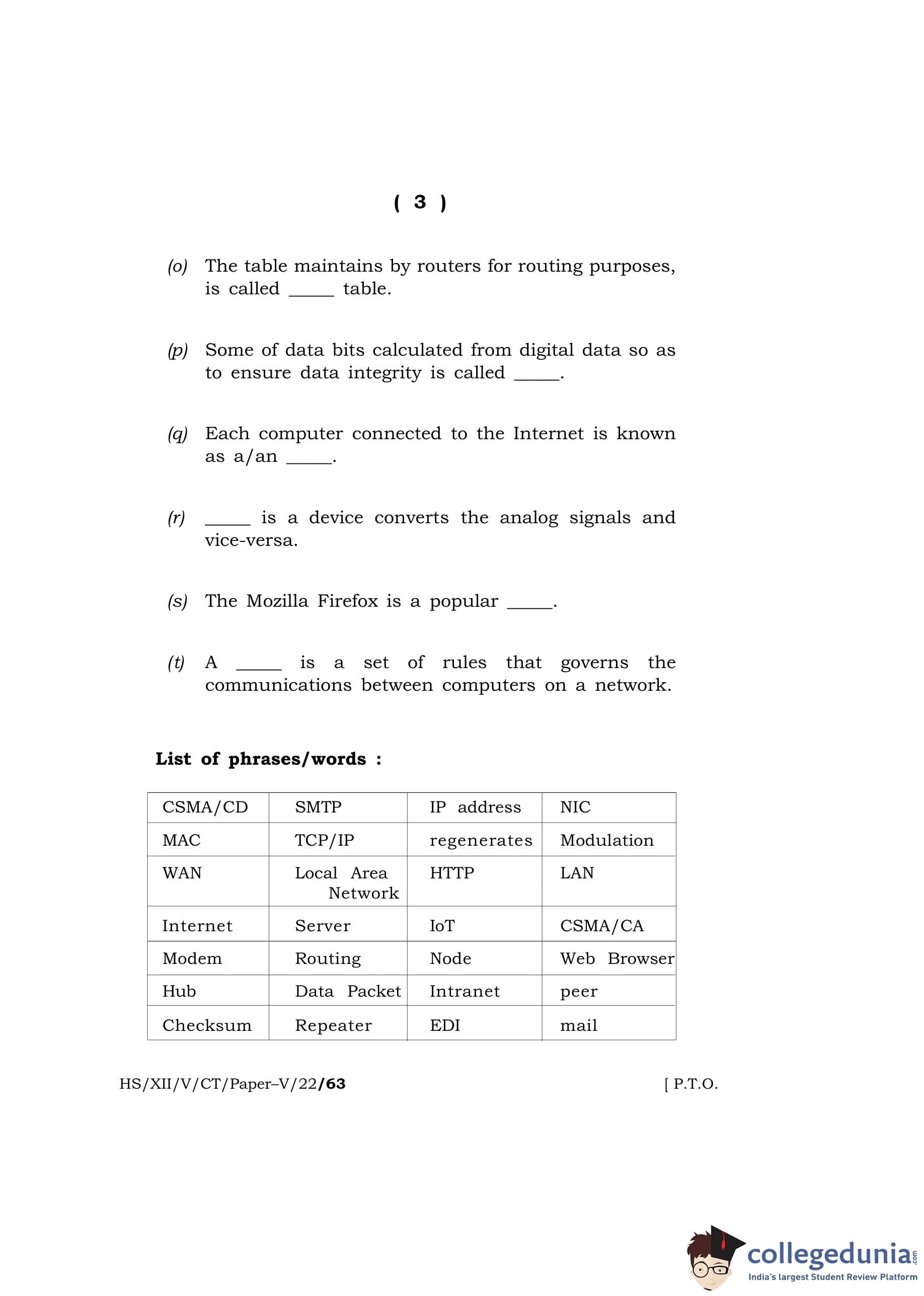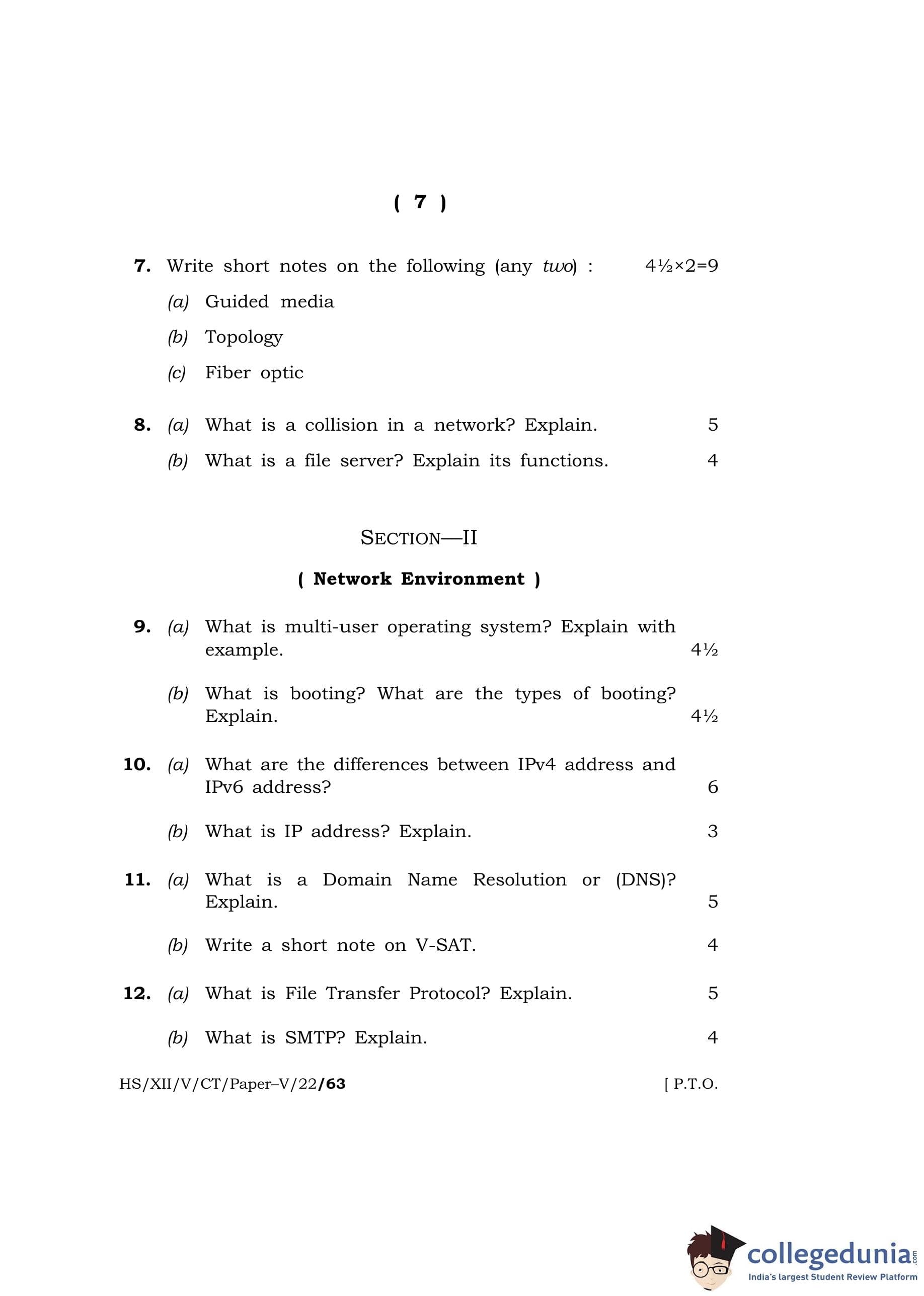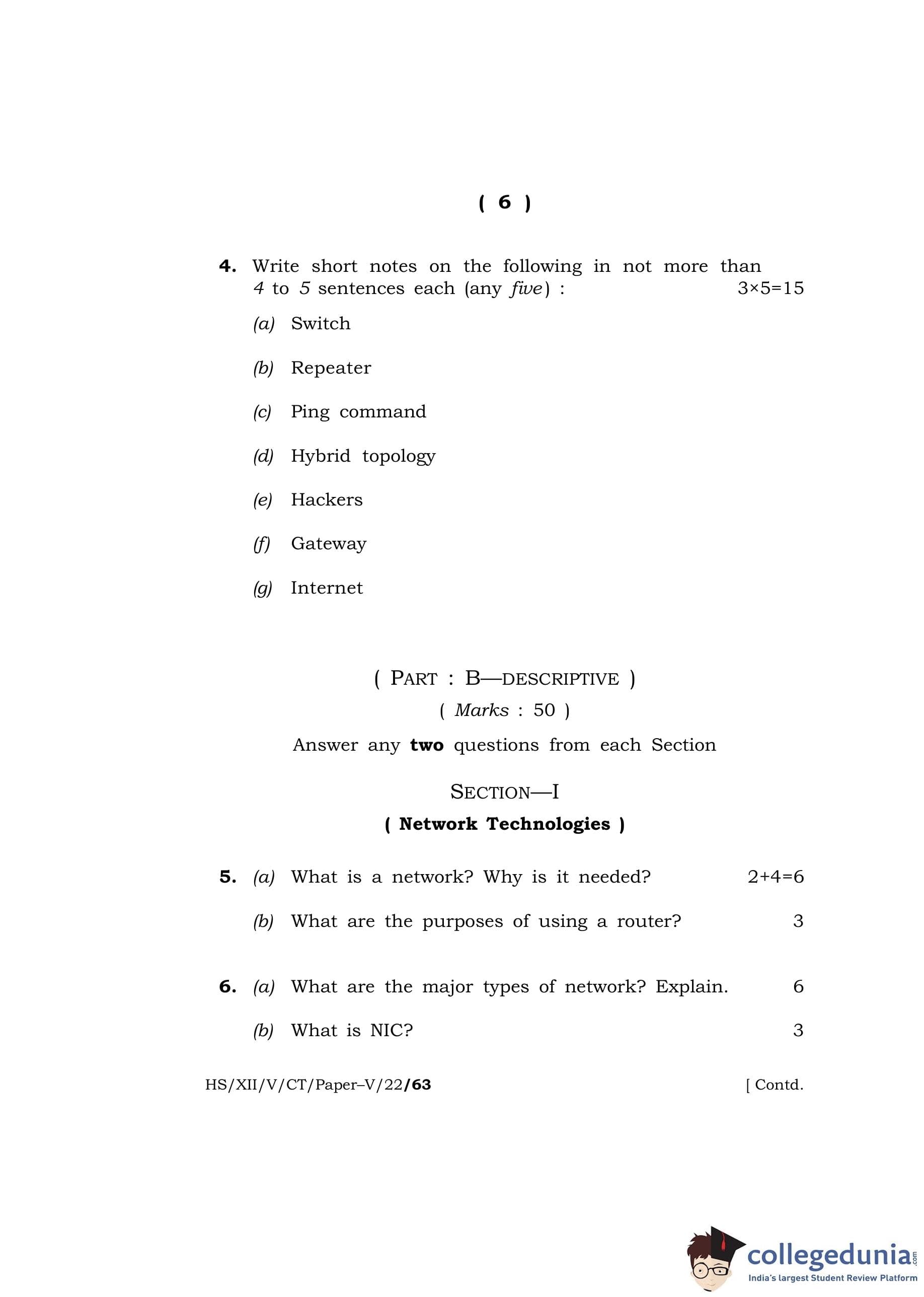 MBOSE Class 12 Computer Techniquie - V Question Paper 2022