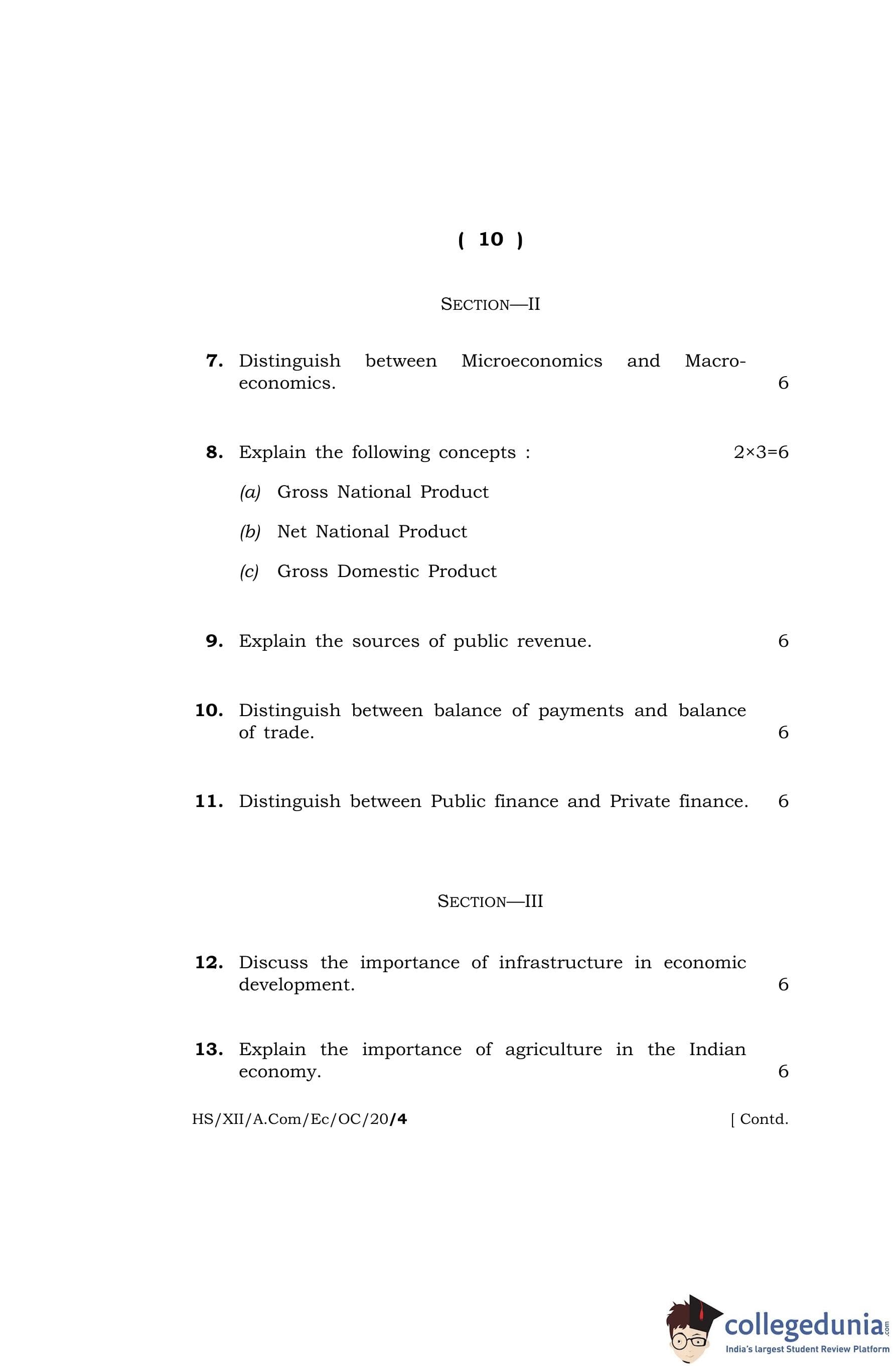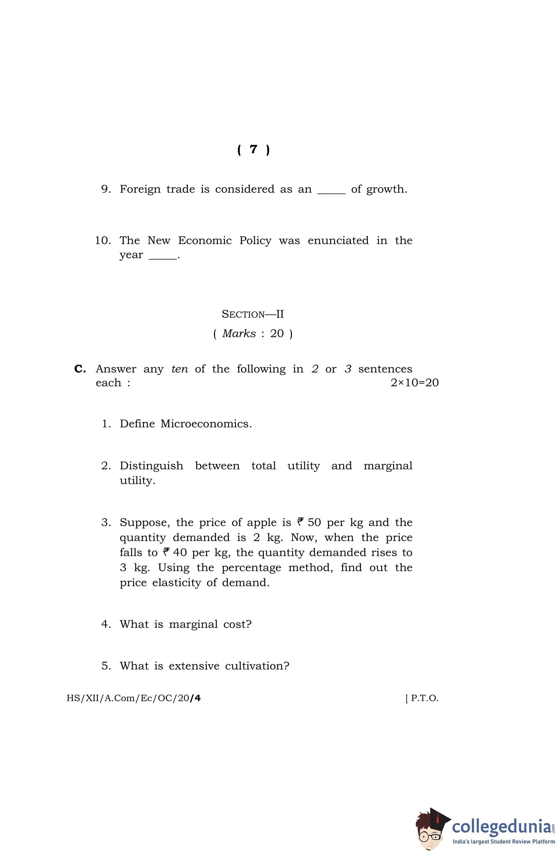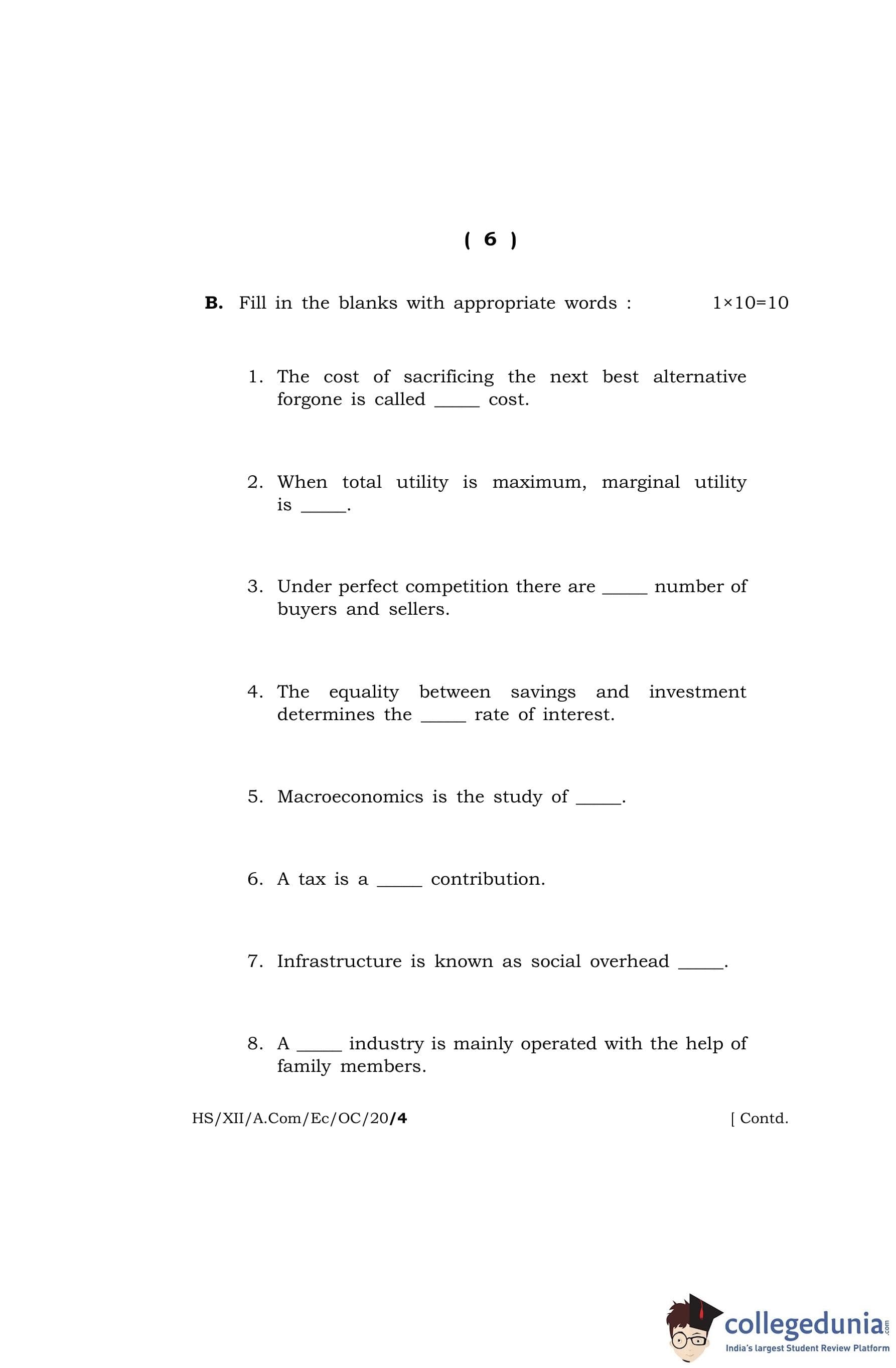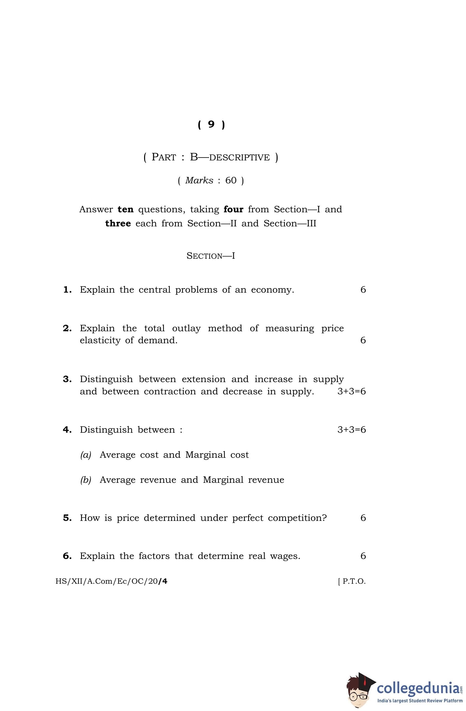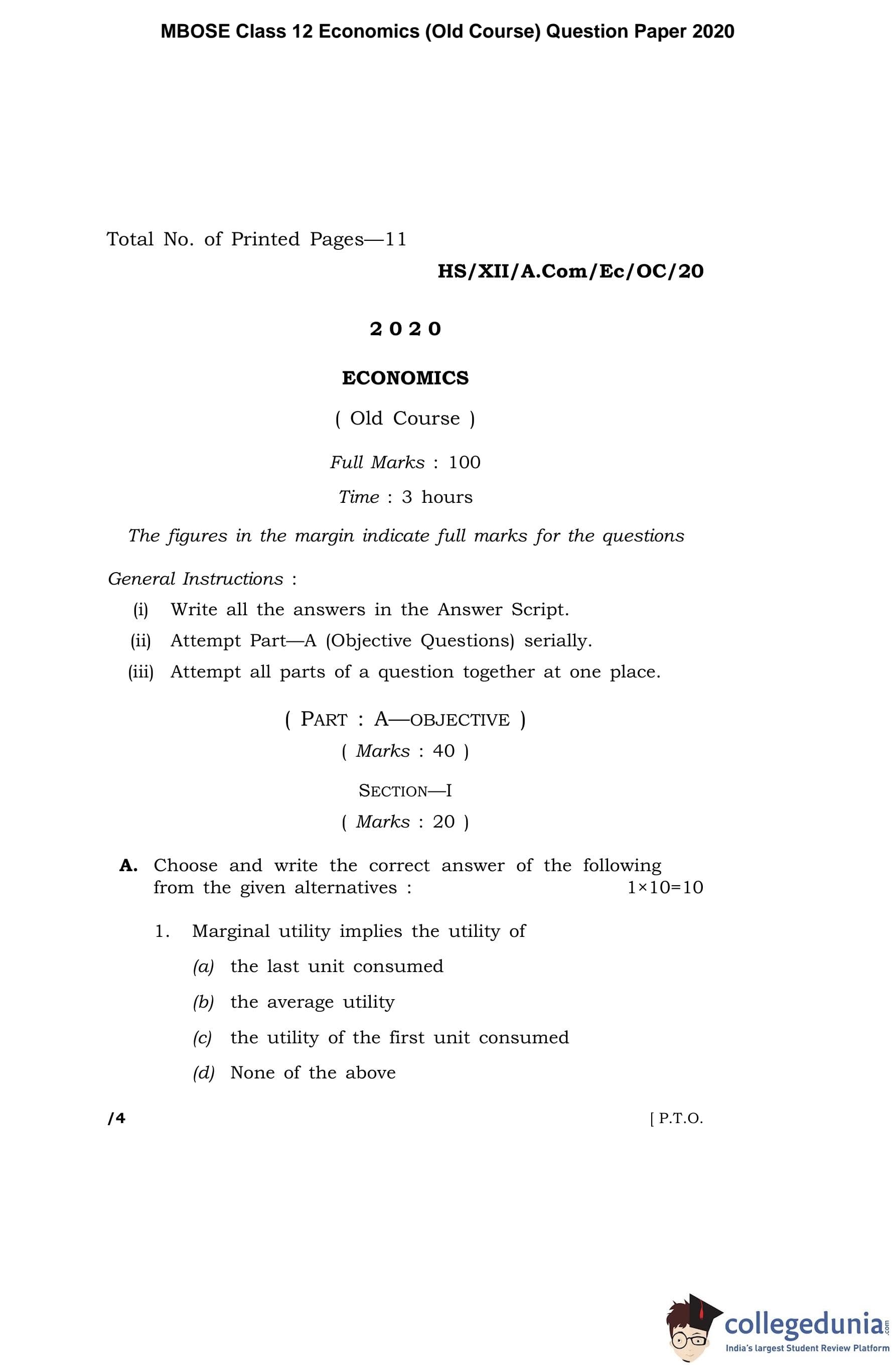 MBOSE Class 12 Economics Question Paper 2020 with Answer Key