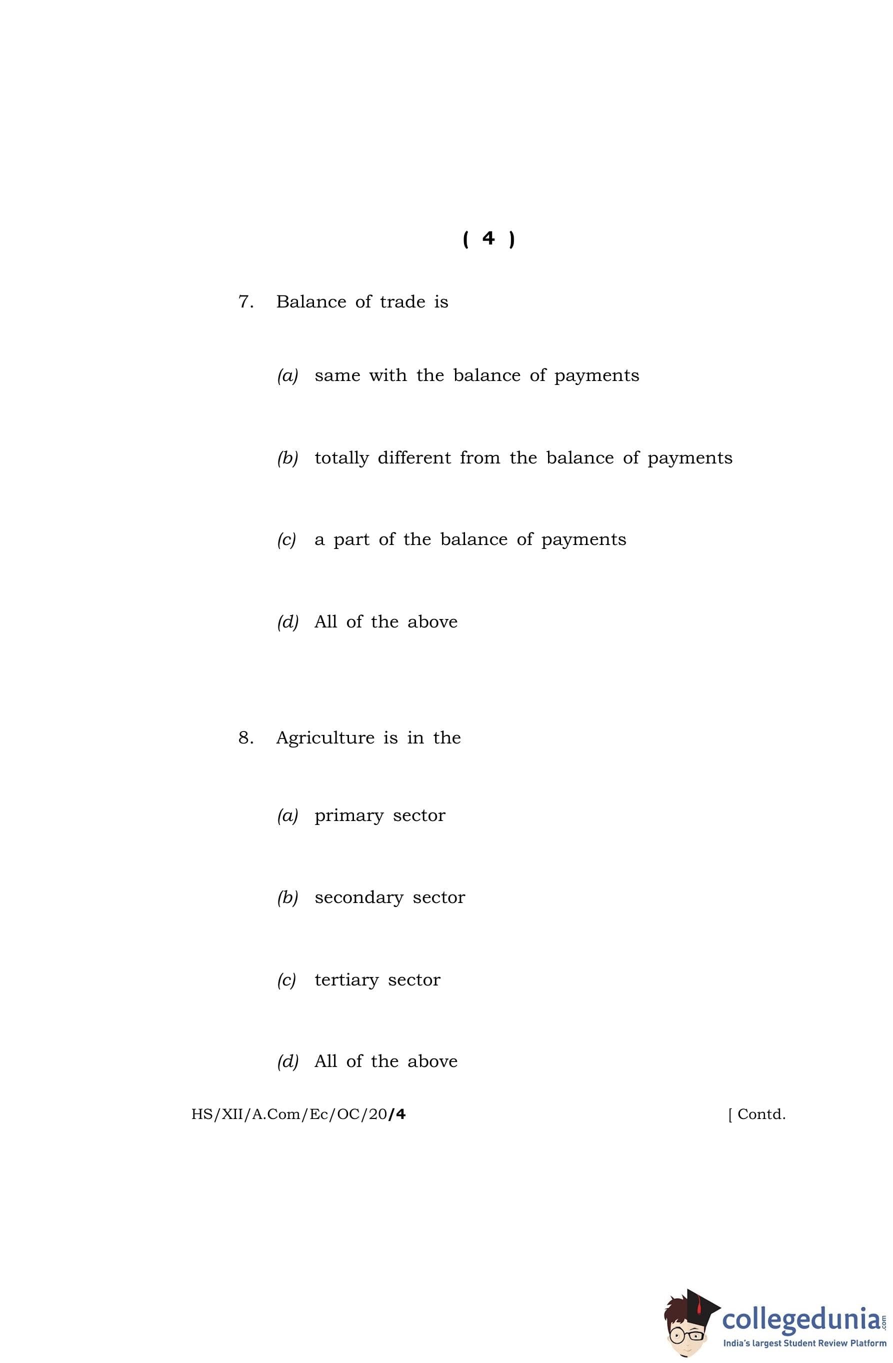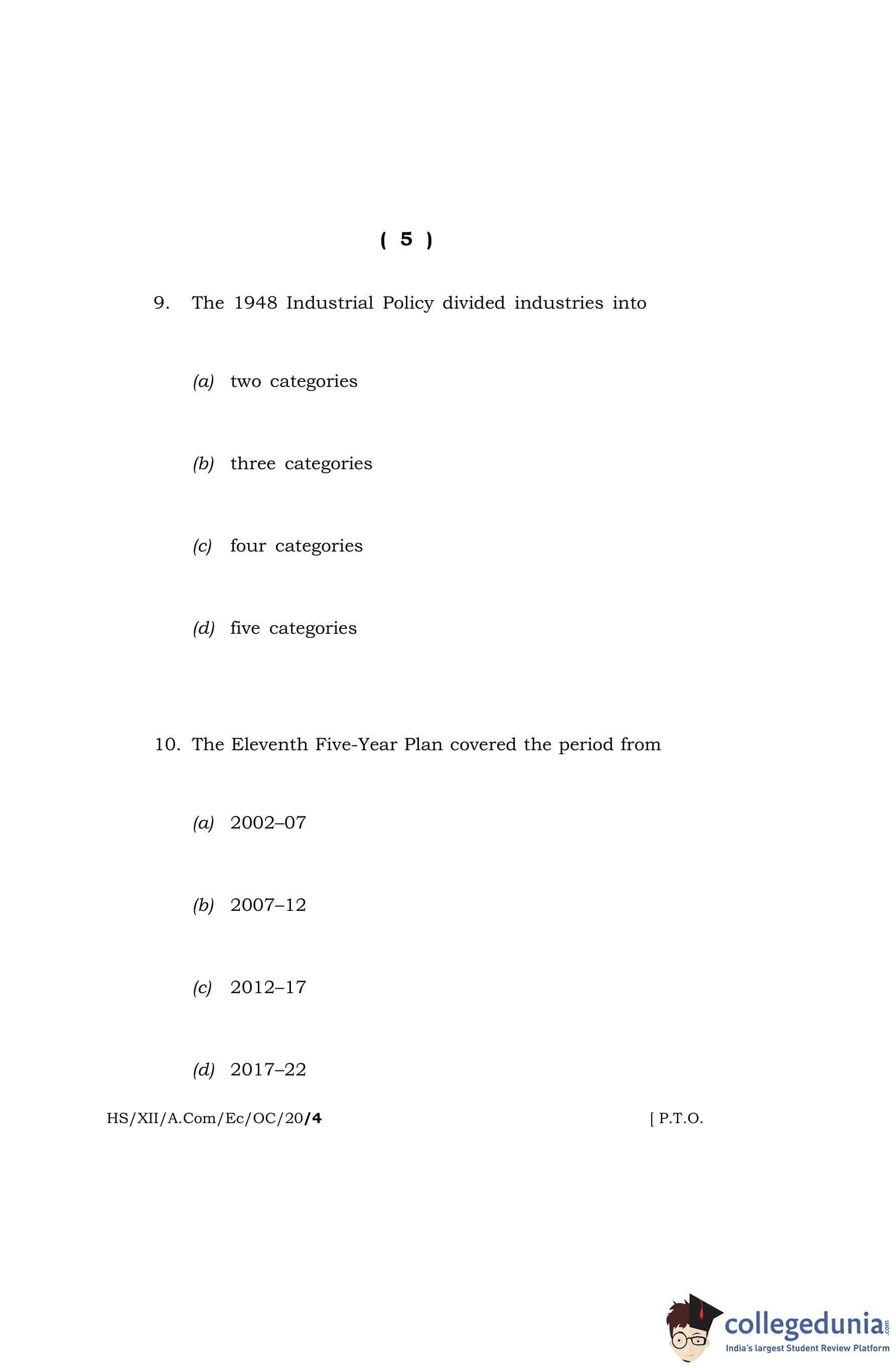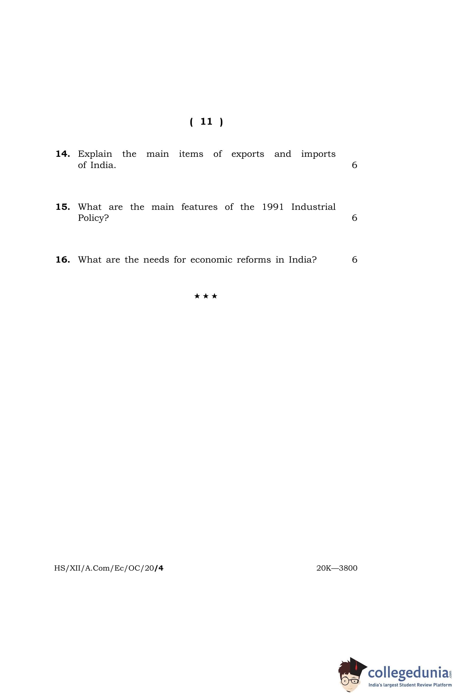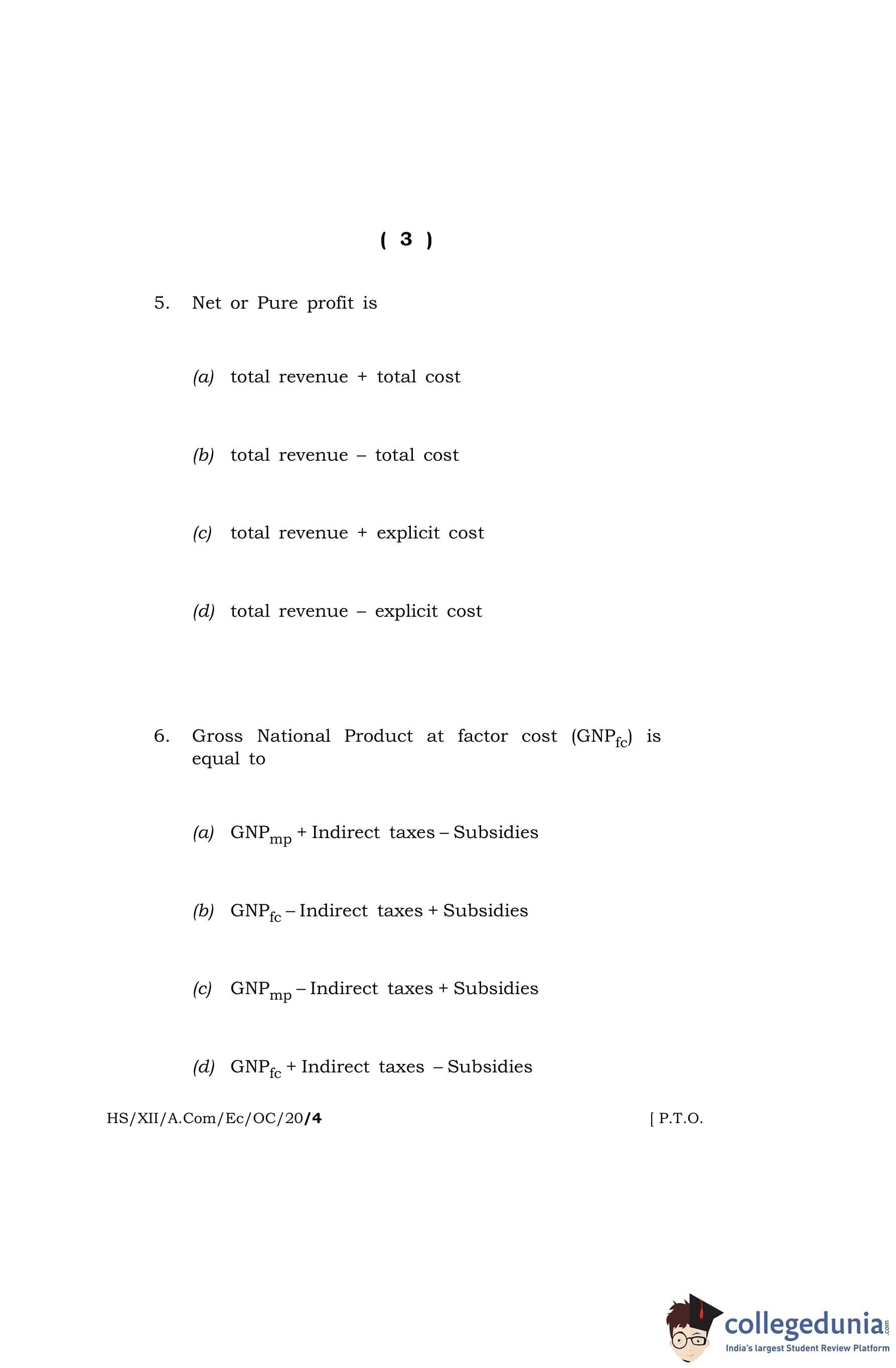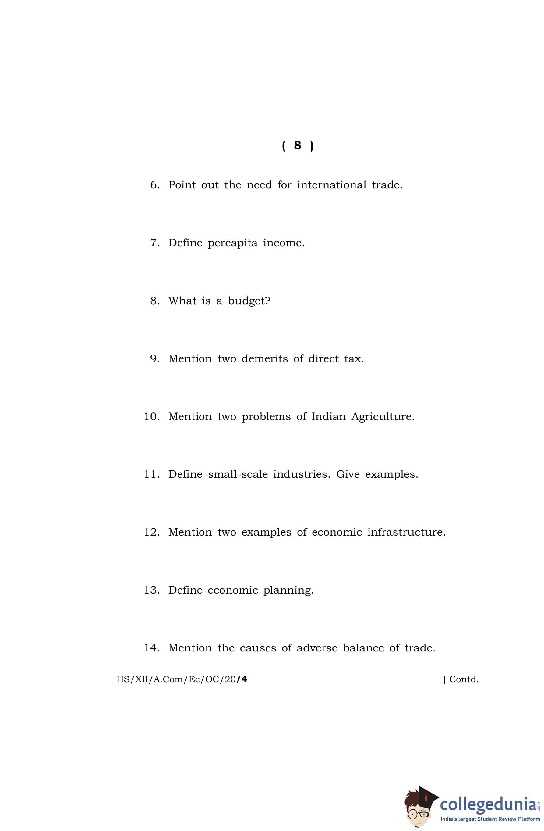 MBOSE Class 12 Economics Question Paper 2020 with Answer Key