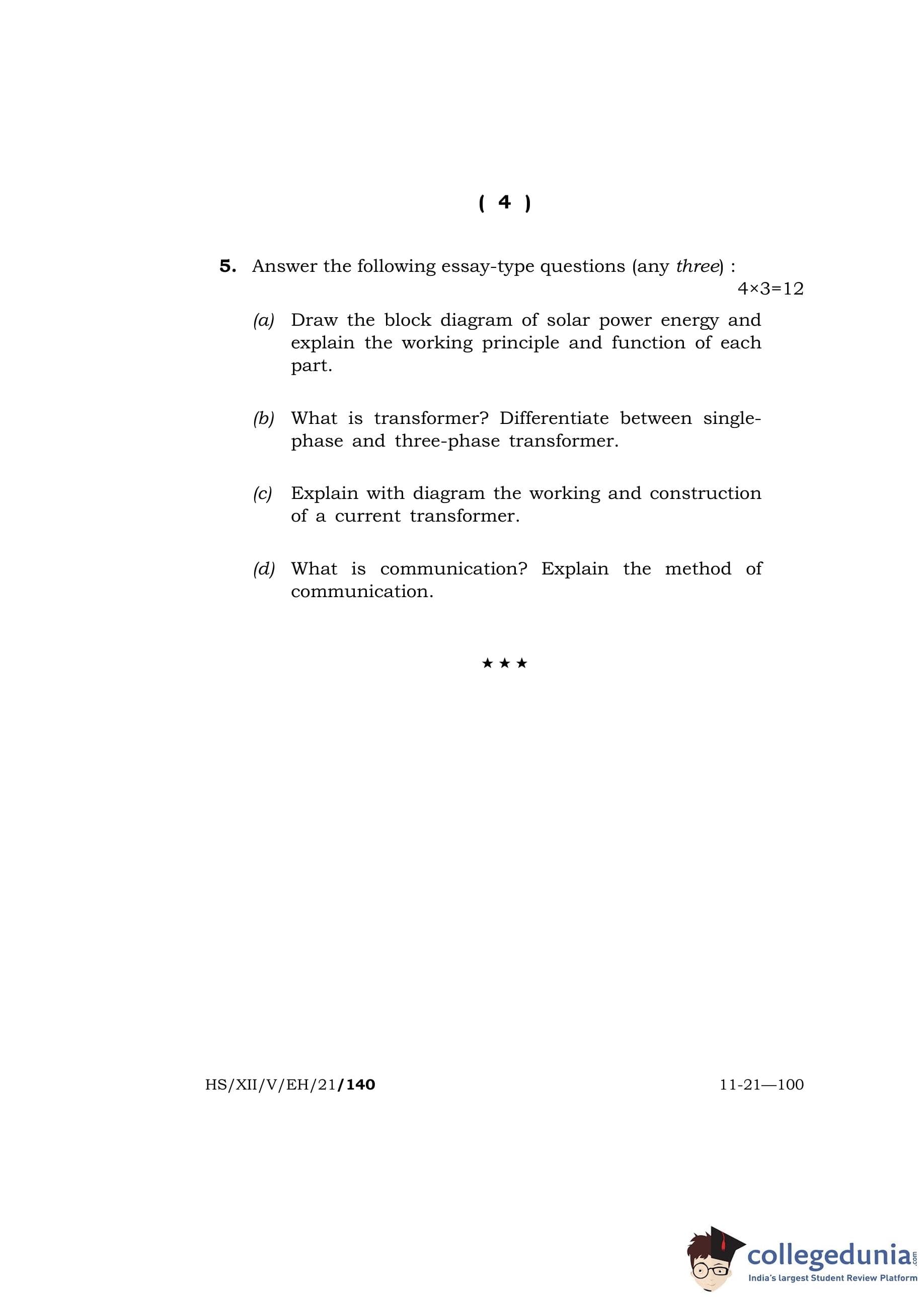 MBOSE Class 12 Electronics and Hardware Question Paper 2021 with Answer Key pdf is available for download here. The exam was conducted by Meghalaya Board of School Education on May 10, 2021 in the Morning Session 10 AM to 11 AM. The question paper comprised a total of 5 questions.