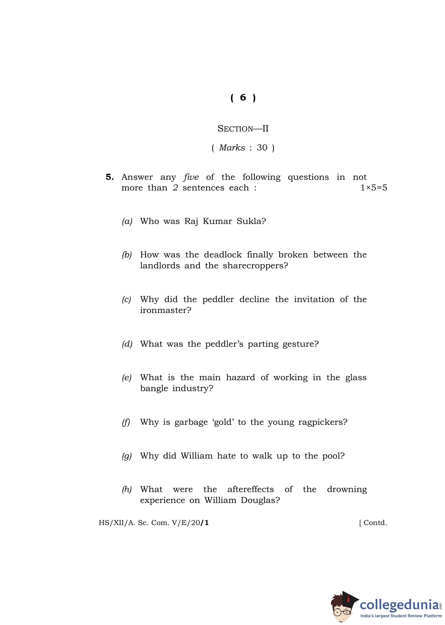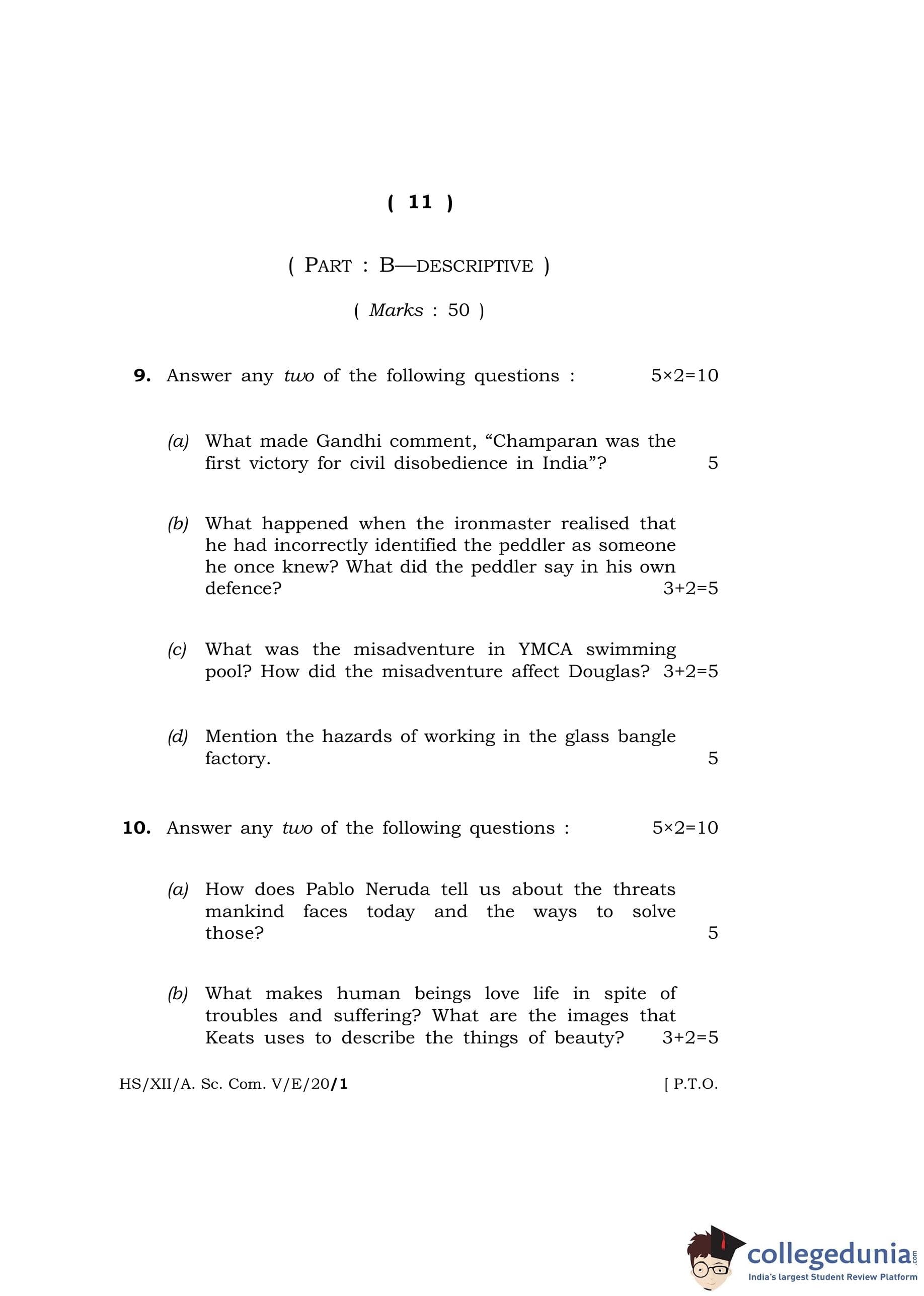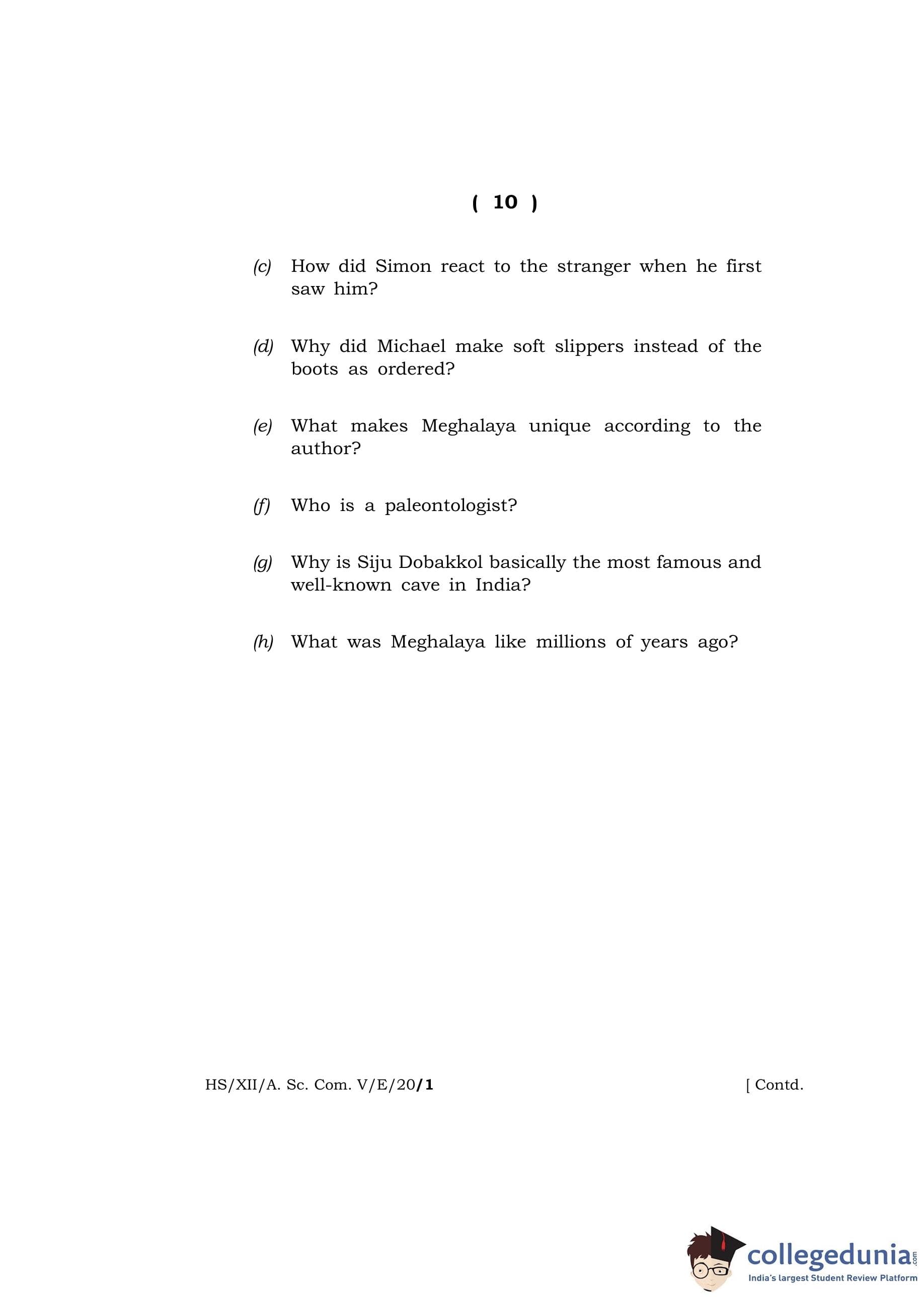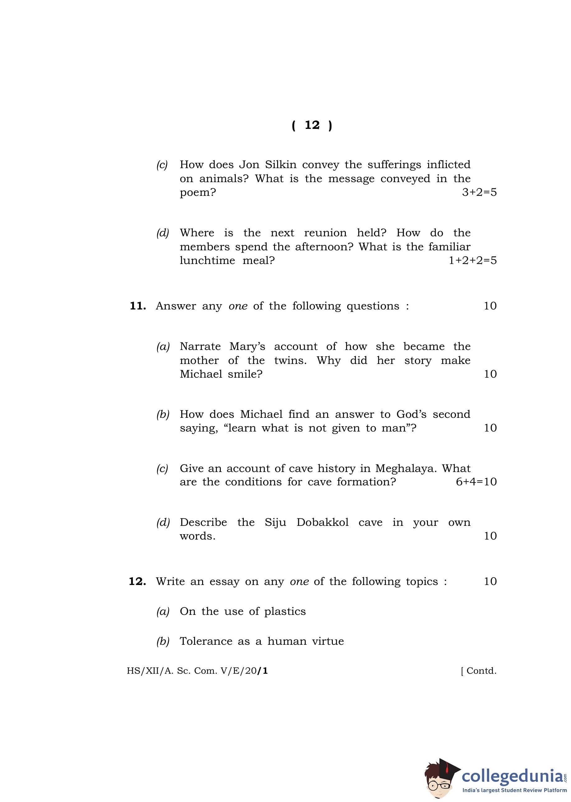 MBOSE Class 12 English Question Paper 2020 with Answer Key pdf is available for download here. The exam was conducted by Meghalaya Board of School Education on March 2, 2020 in the Morning Session 10 AM to 1 PM. The question paper comprised a total of 13 questions divided among 2 sections.
