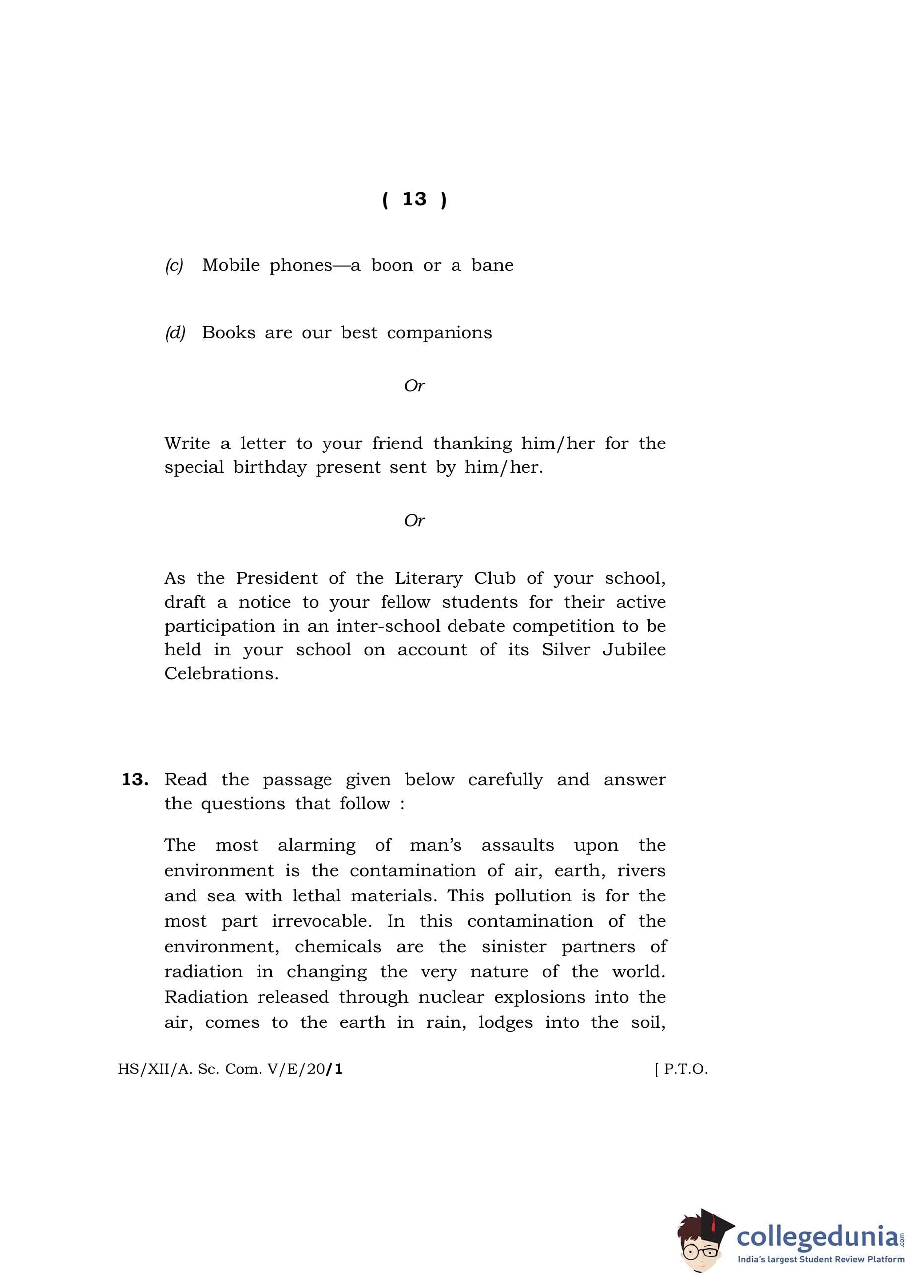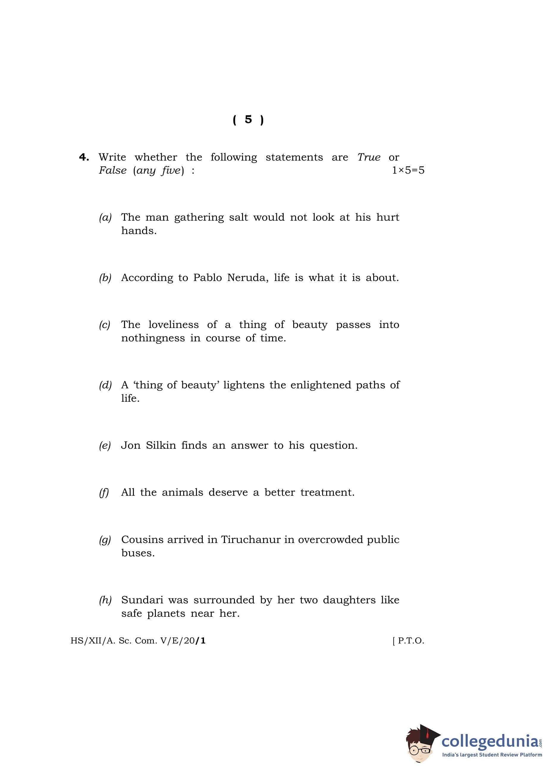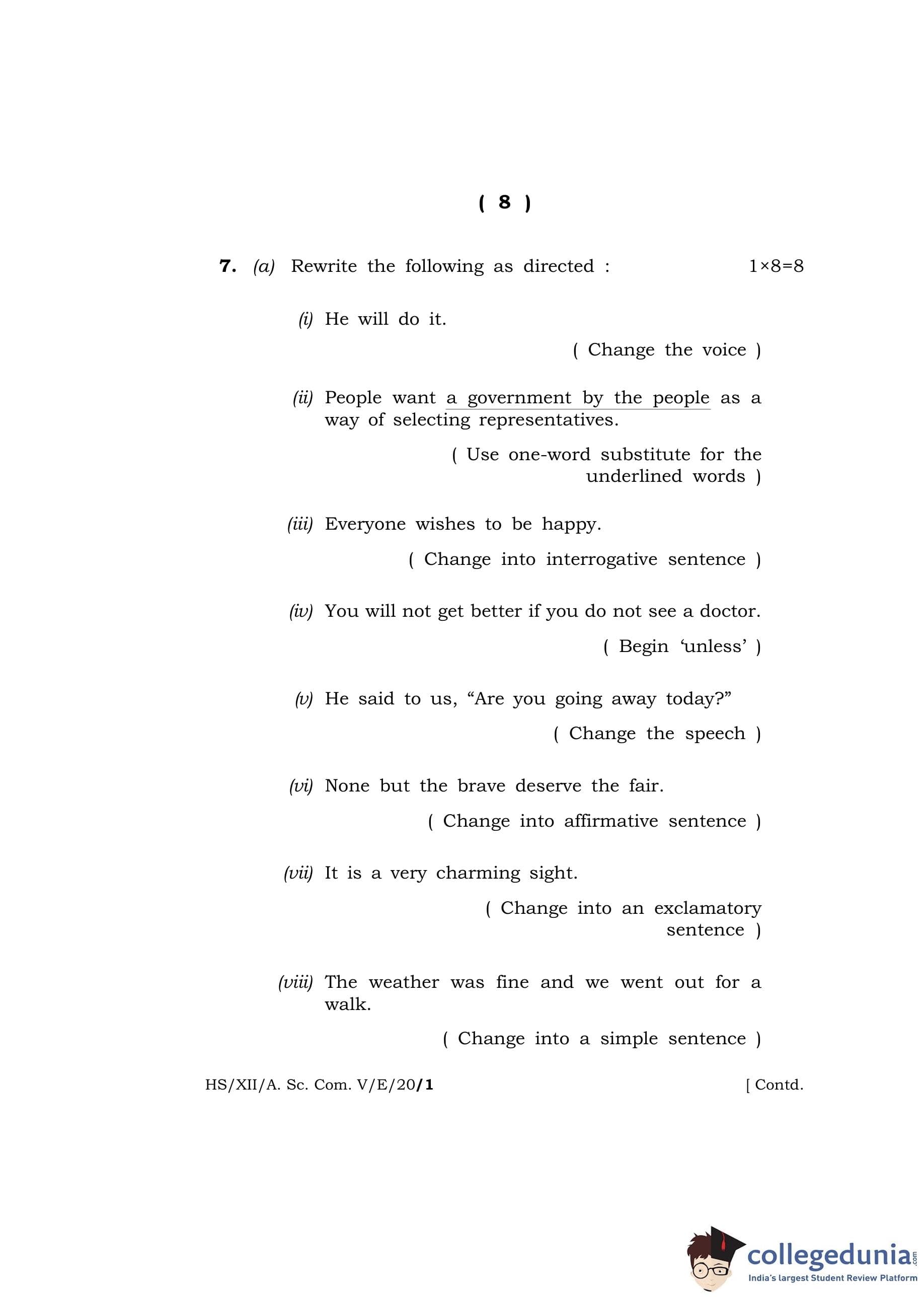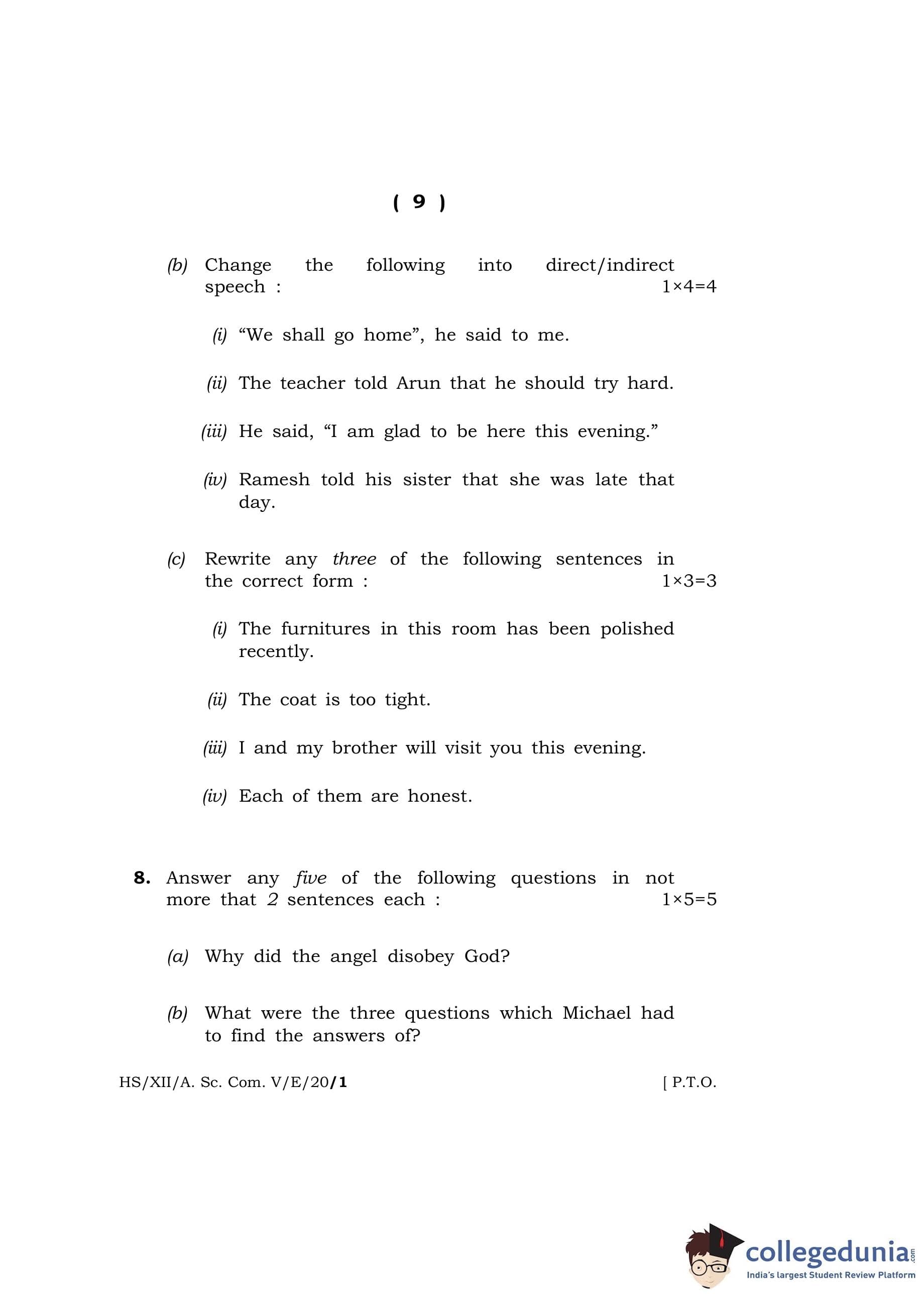 MBOSE Class 12 English Question Paper 2020 with Answer Key pdf is available for download here. The exam was conducted by Meghalaya Board of School Education on March 2, 2020 in the Morning Session 10 AM to 1 PM. The question paper comprised a total of 13 questions divided among 2 sections.