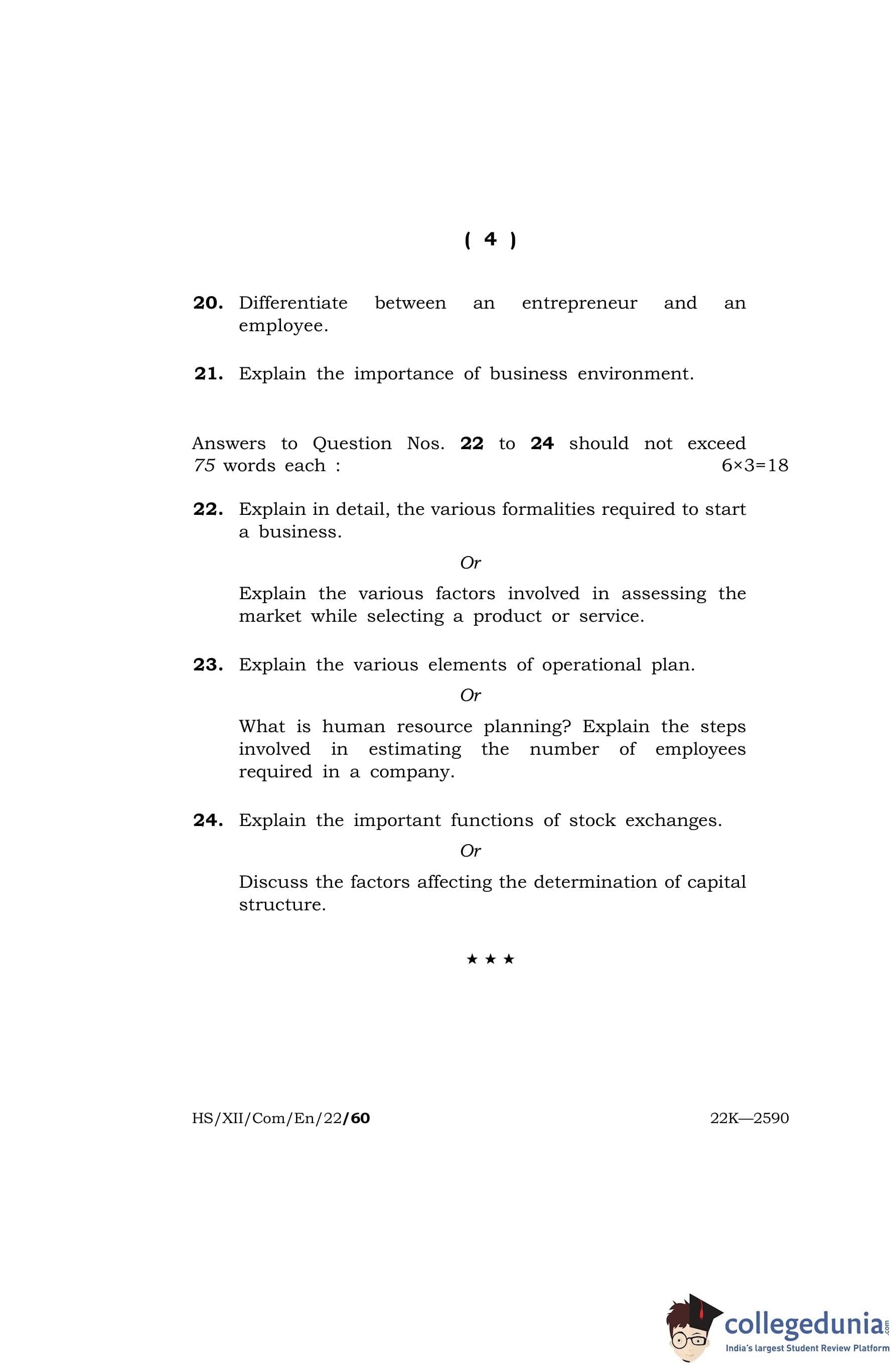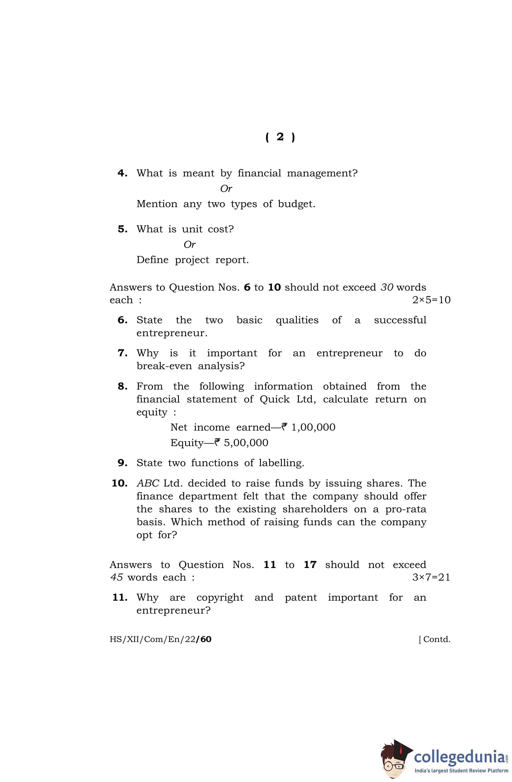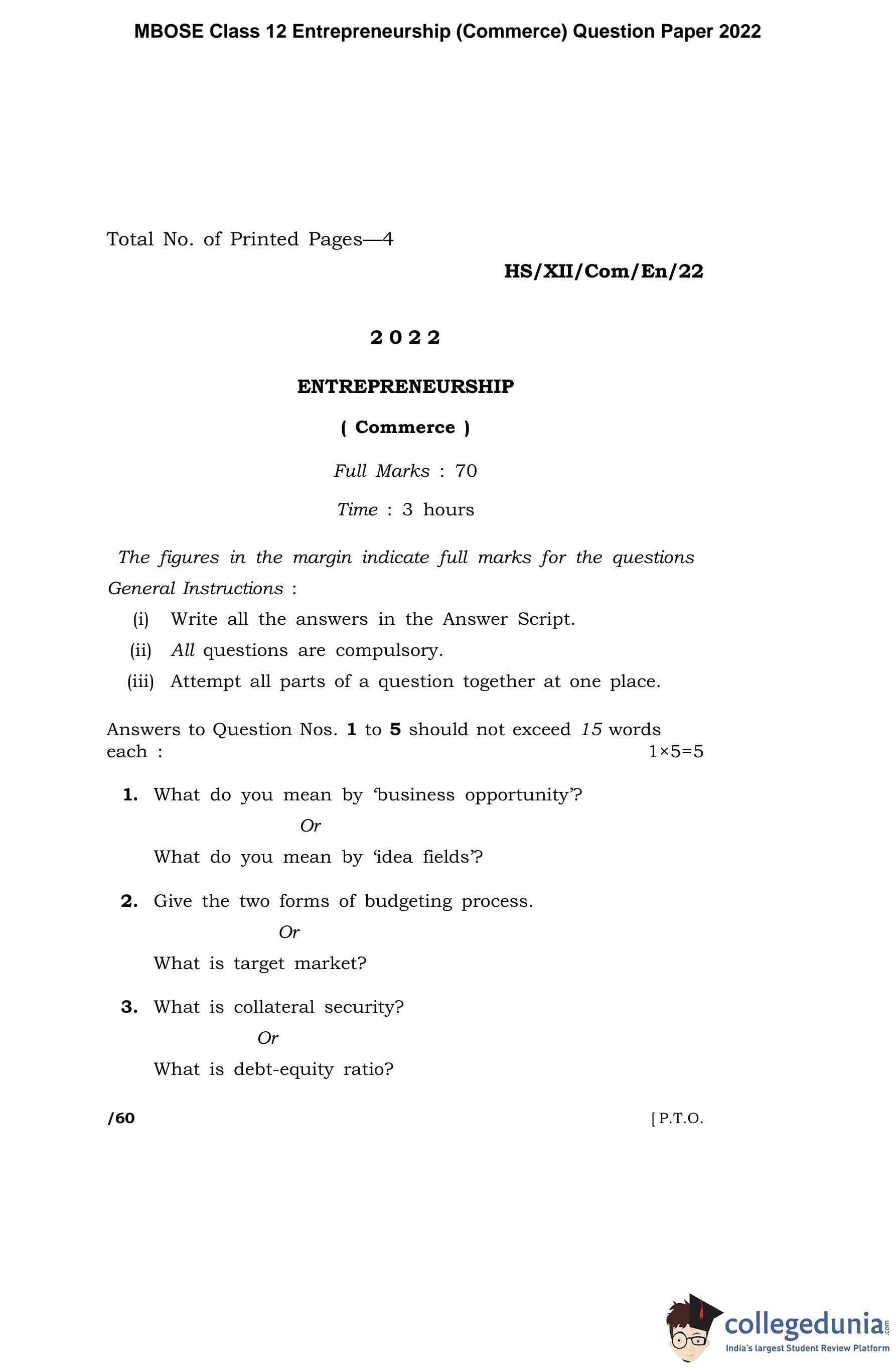 MBOSE Class 12 Entrepreneurship (Commerce) Question Paper 2022 with Answer Key pdf is available for download here. The exam was conducted by Meghalaya Board of School Education on March 30, 2022 in the Morning Session 10 AM to 1 PM. The question paper comprised a total of 24 questions.