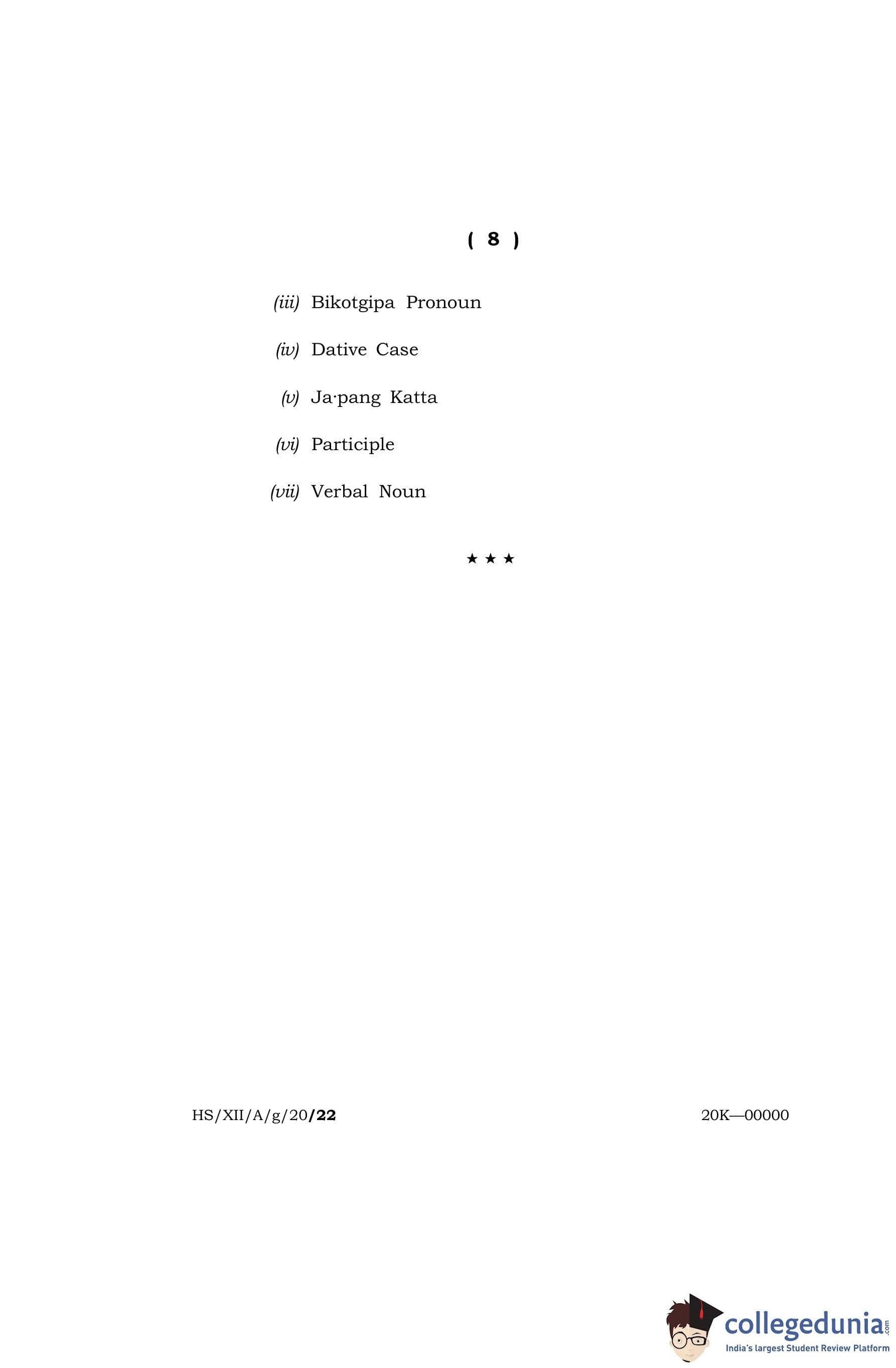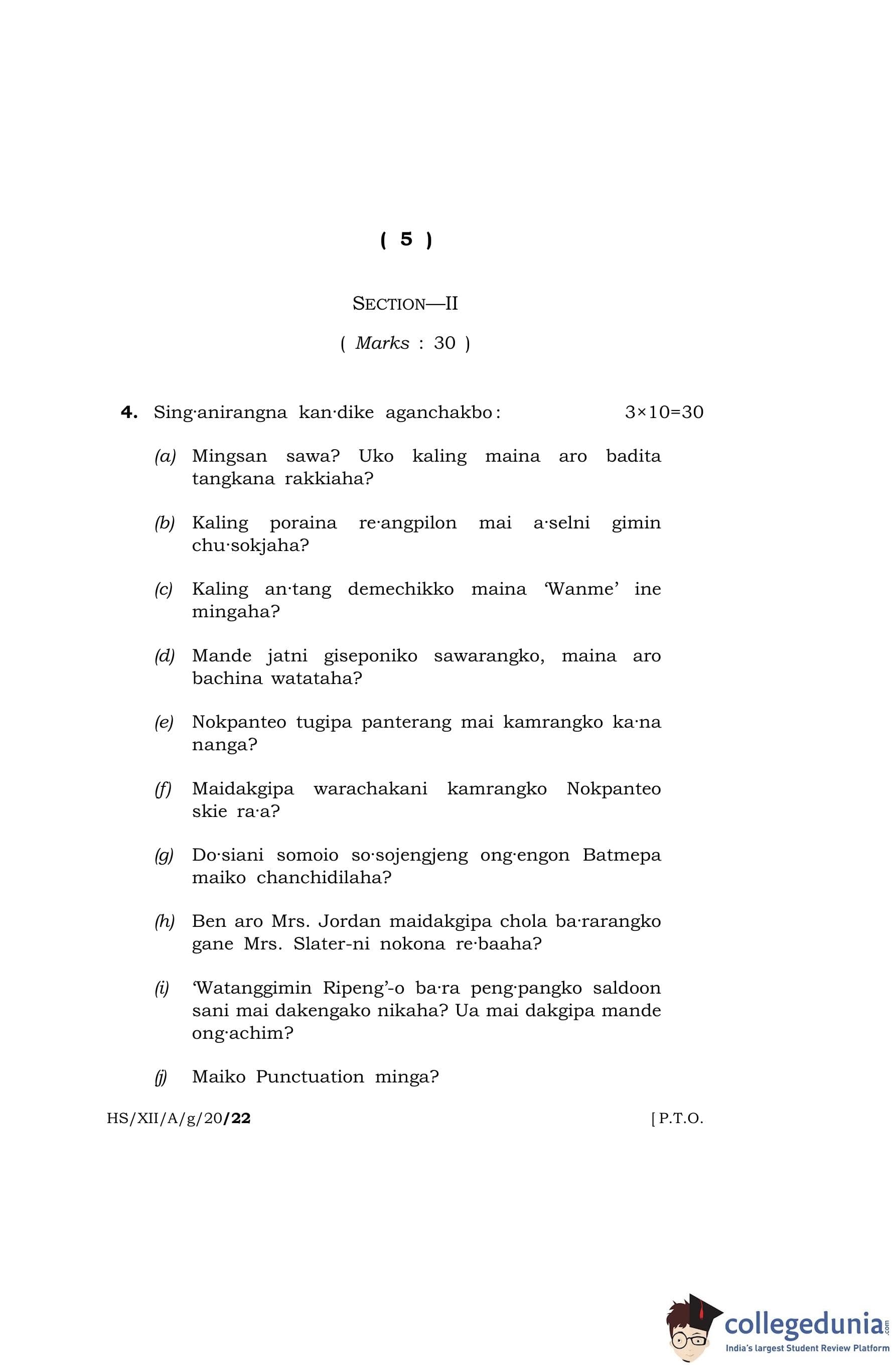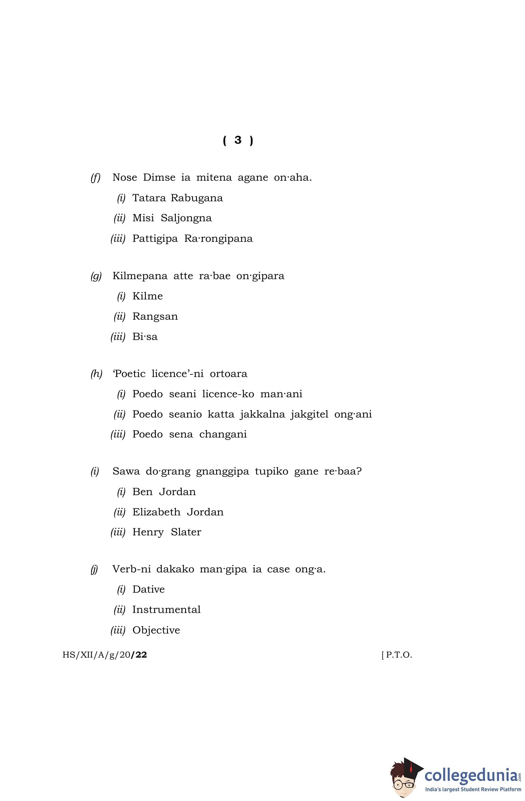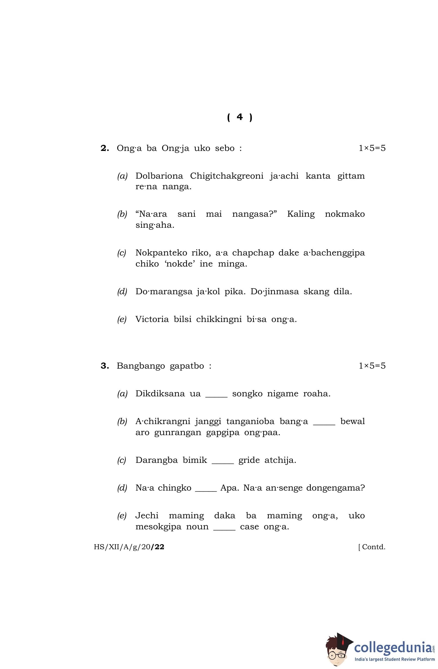 MBOSE Class 12 Garo (Elective) Question Paper 2020 with Answer Key pdf is available for download here. The exam was conducted by Meghalaya Board of School Education on March 19, 2020 in the Morning Session 10 AM to 1 PM. The question paper comprised a total of 9 questions divided among 2 sections.