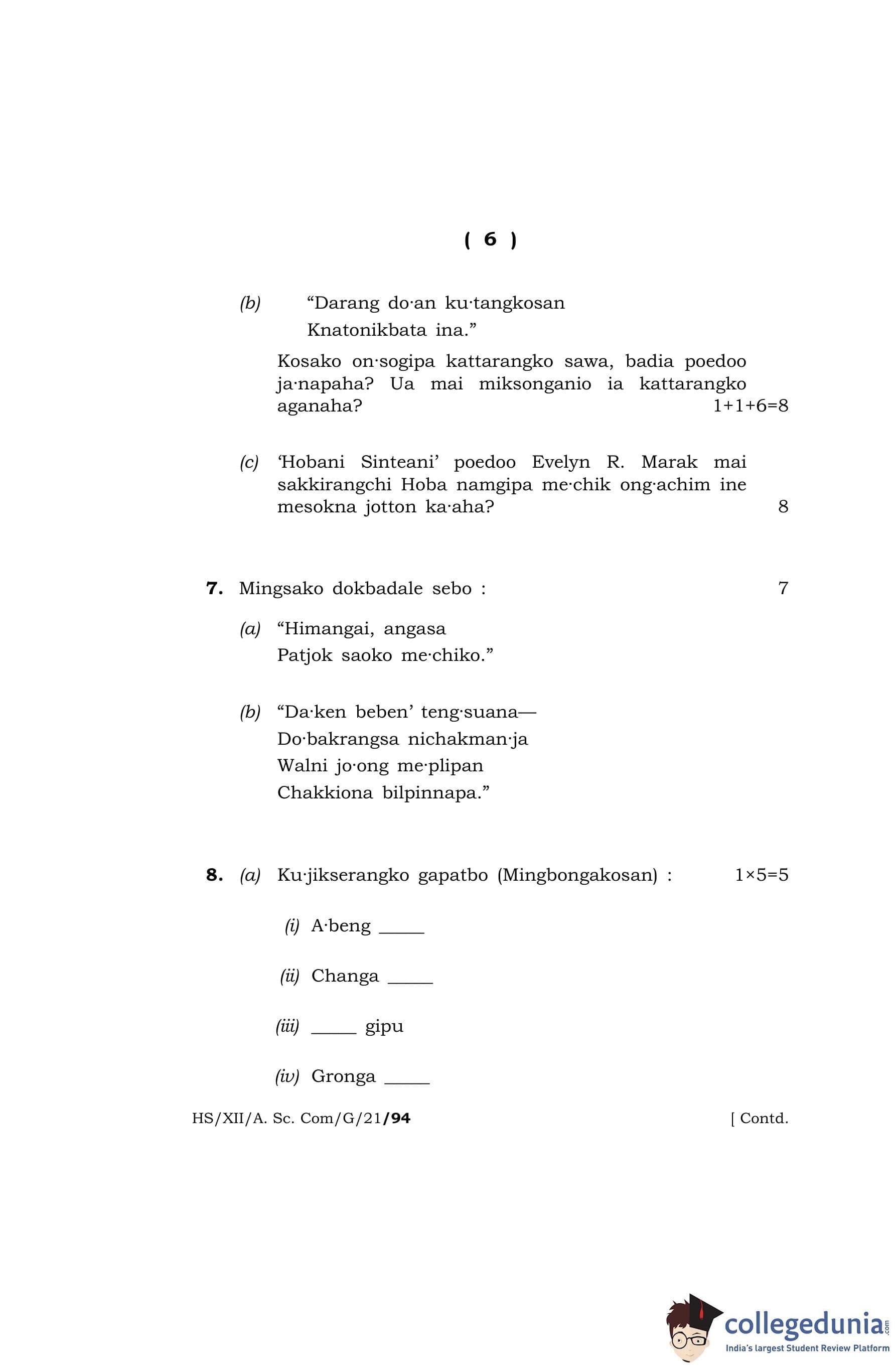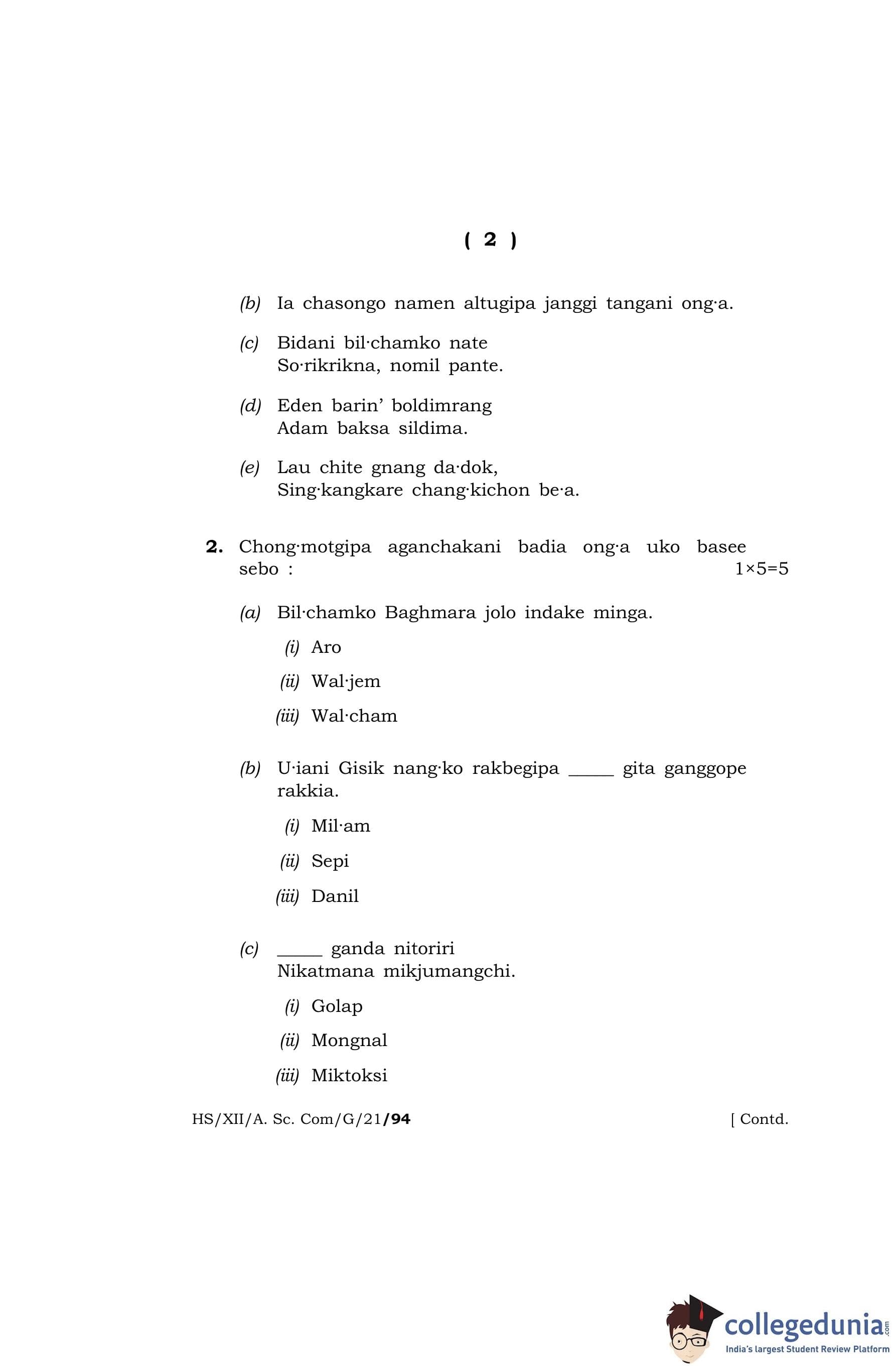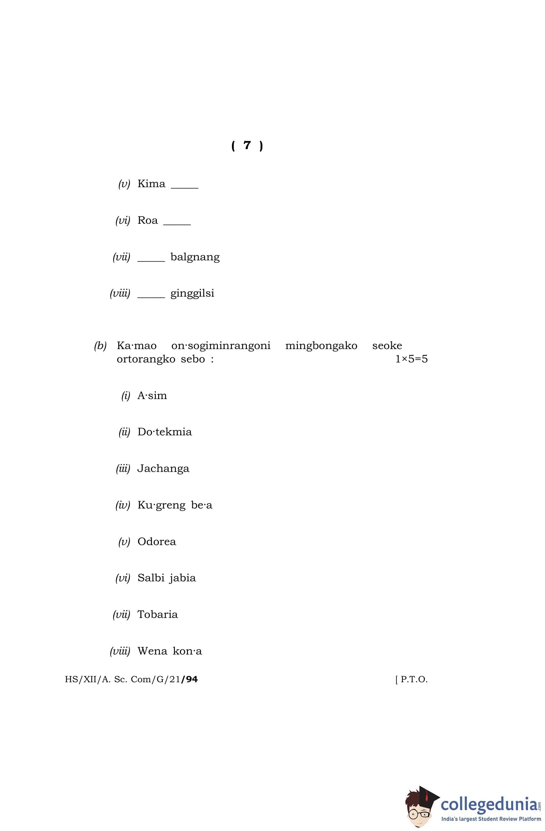 MBOSE Class 12 Garo Question Paper 2021 with Answer Key