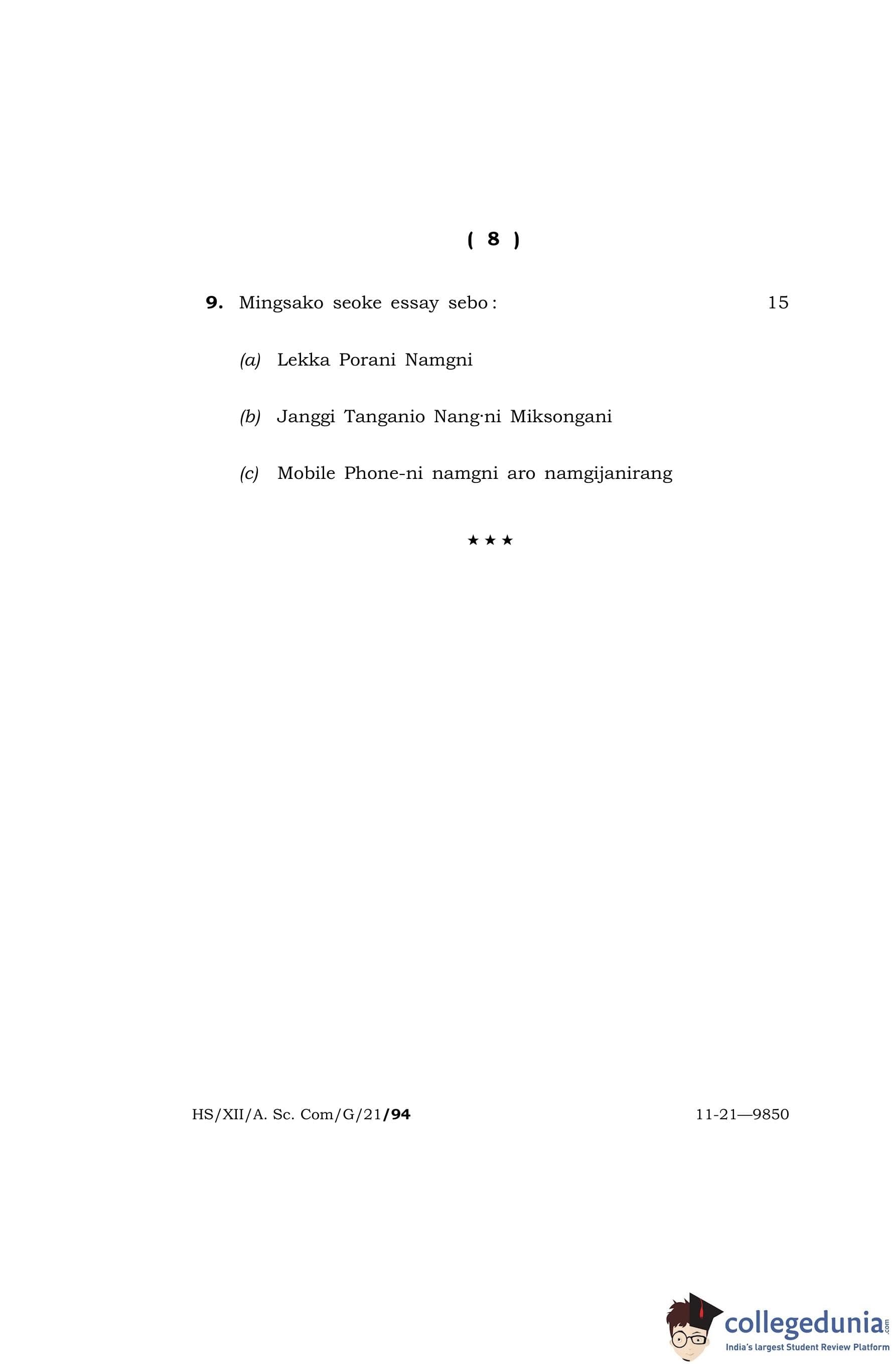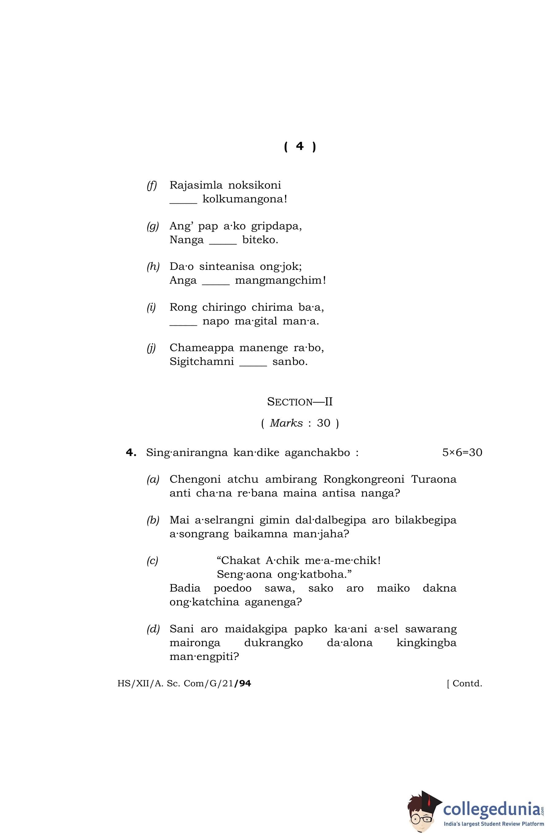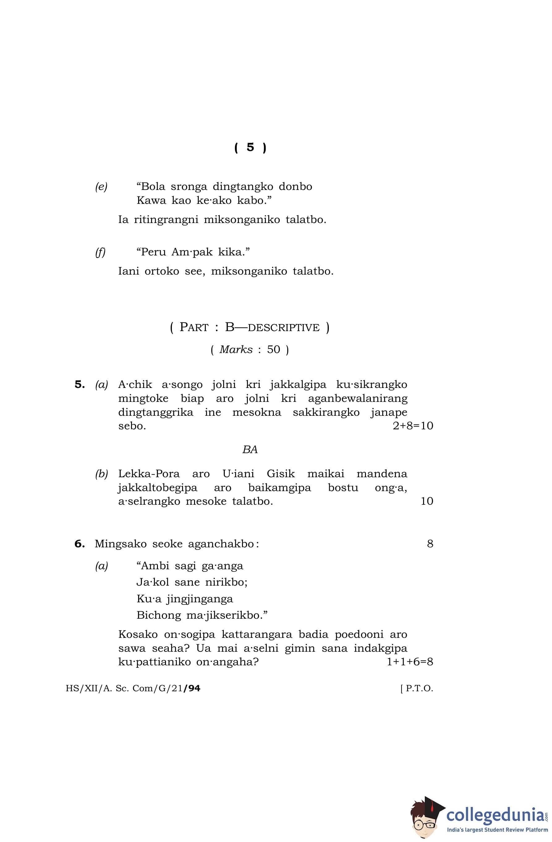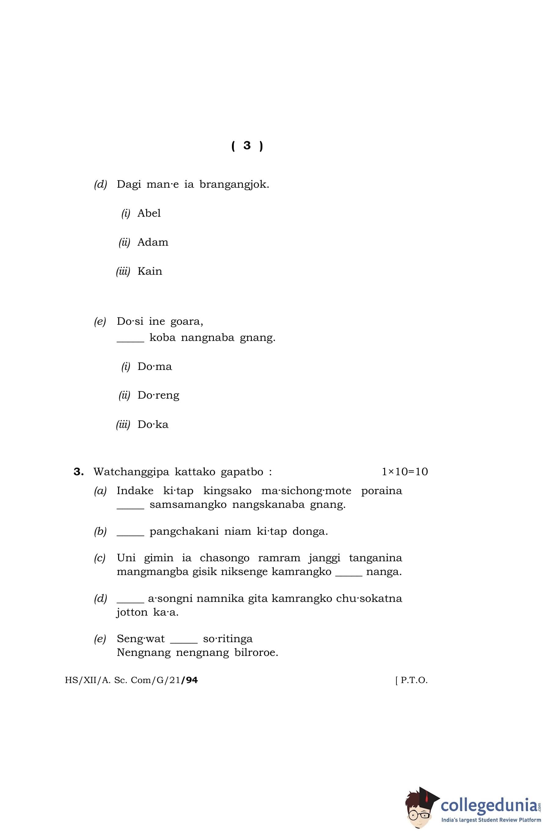 MBOSE Class 12 Garo Question Paper 2021 with Answer Key