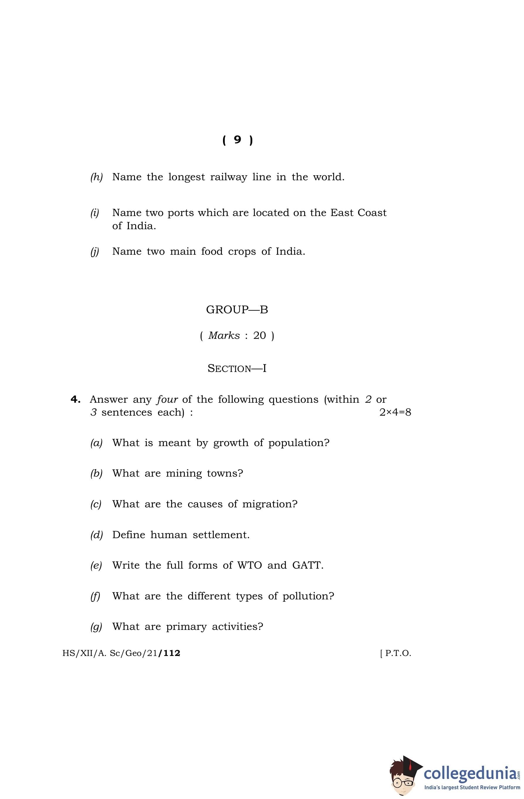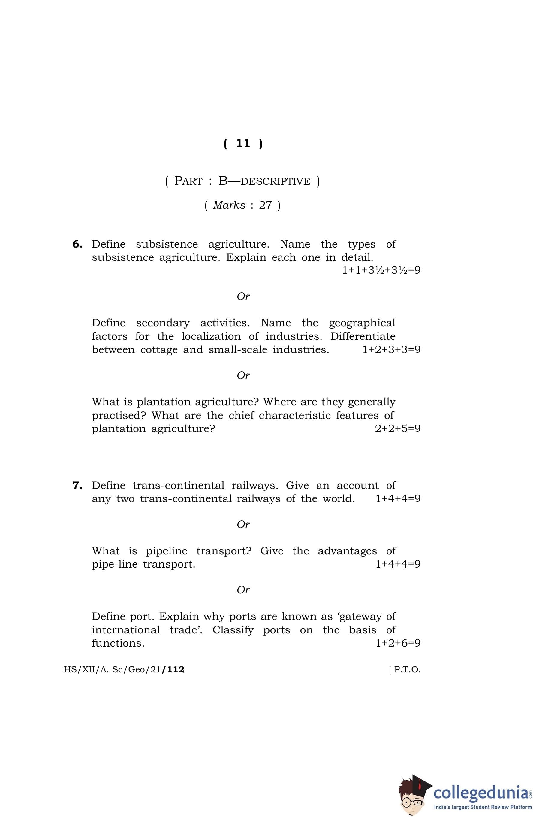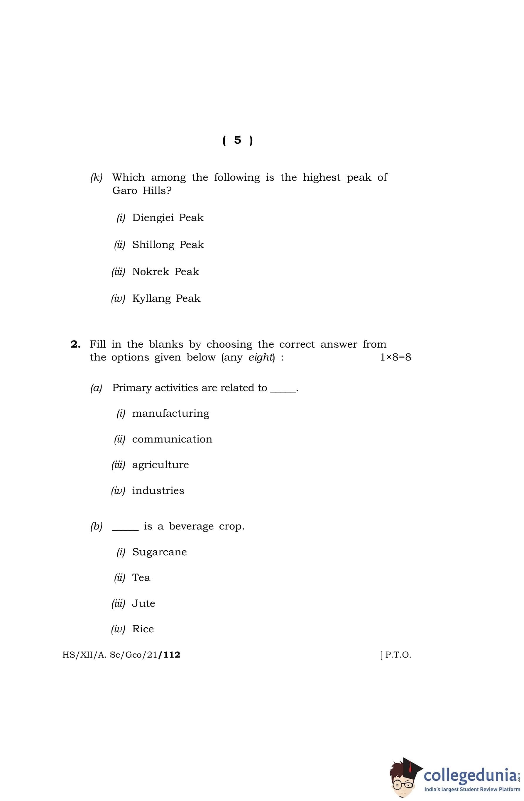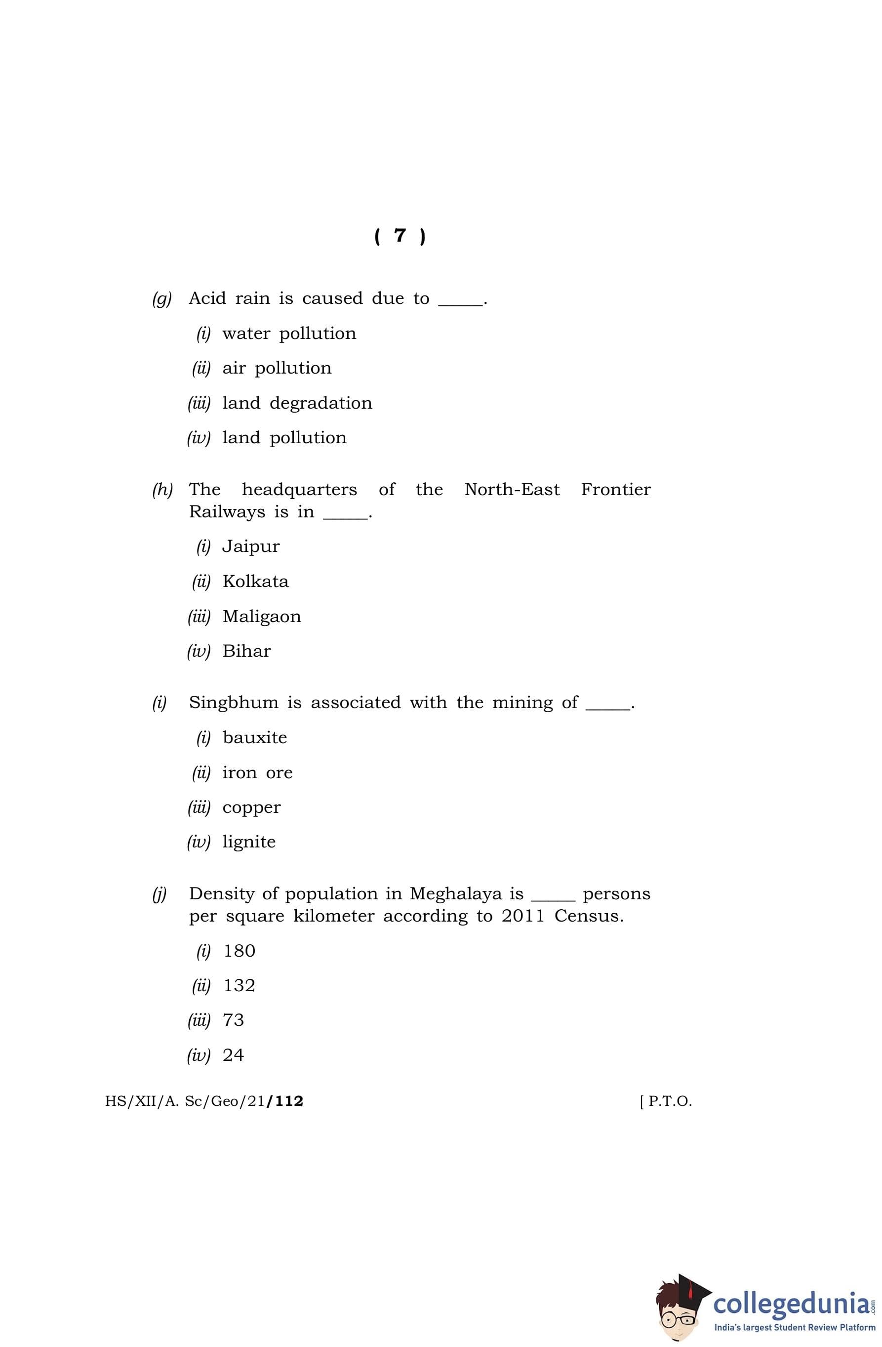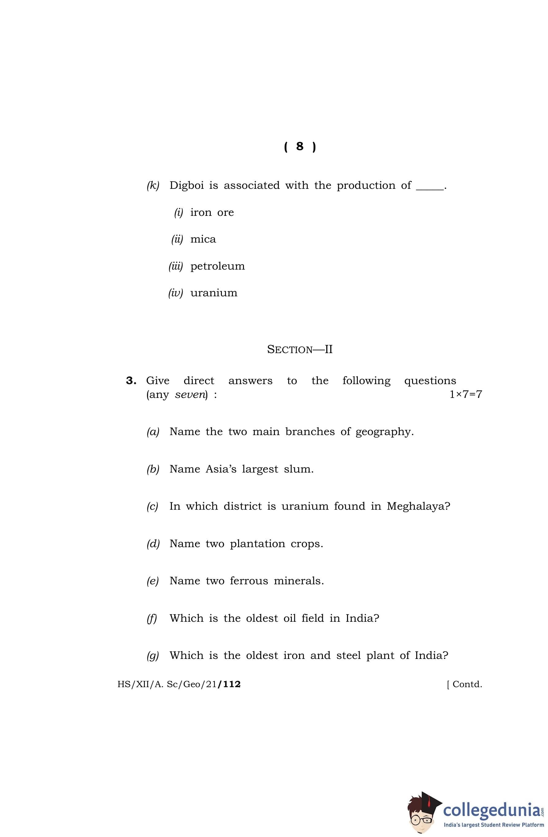 MBOSE Class 12 Geography Question Paper 2021 with Answer Key pdf is available for download here. The exam was conducted by Meghalaya Board of School Education on April 27, 2021 in the Morning Session 10 AM to 1 PM. The question paper comprised a total of 8 questions divided among 2 sections.