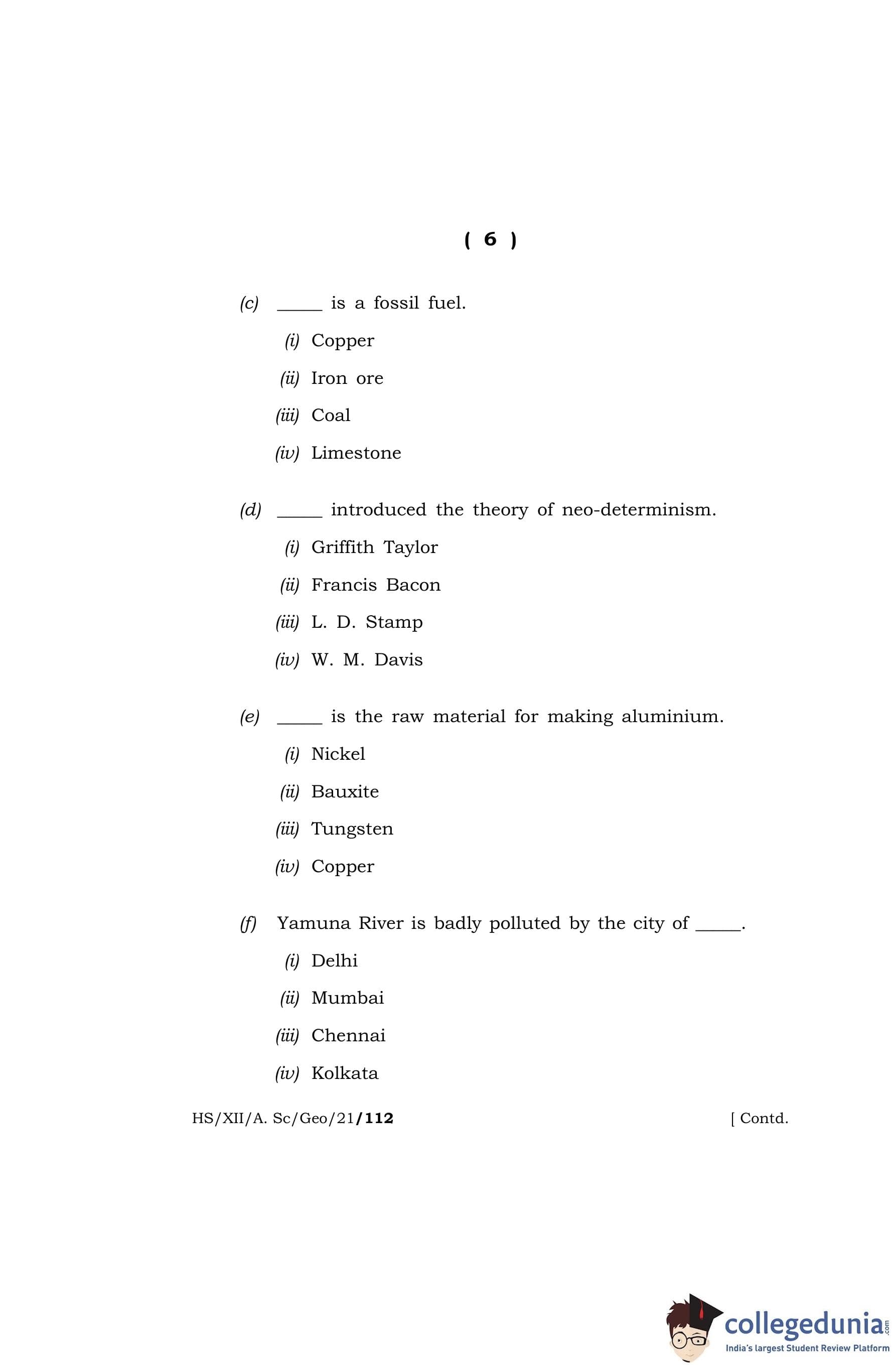 MBOSE Class 12 Geography Question Paper 2021 with Answer Key