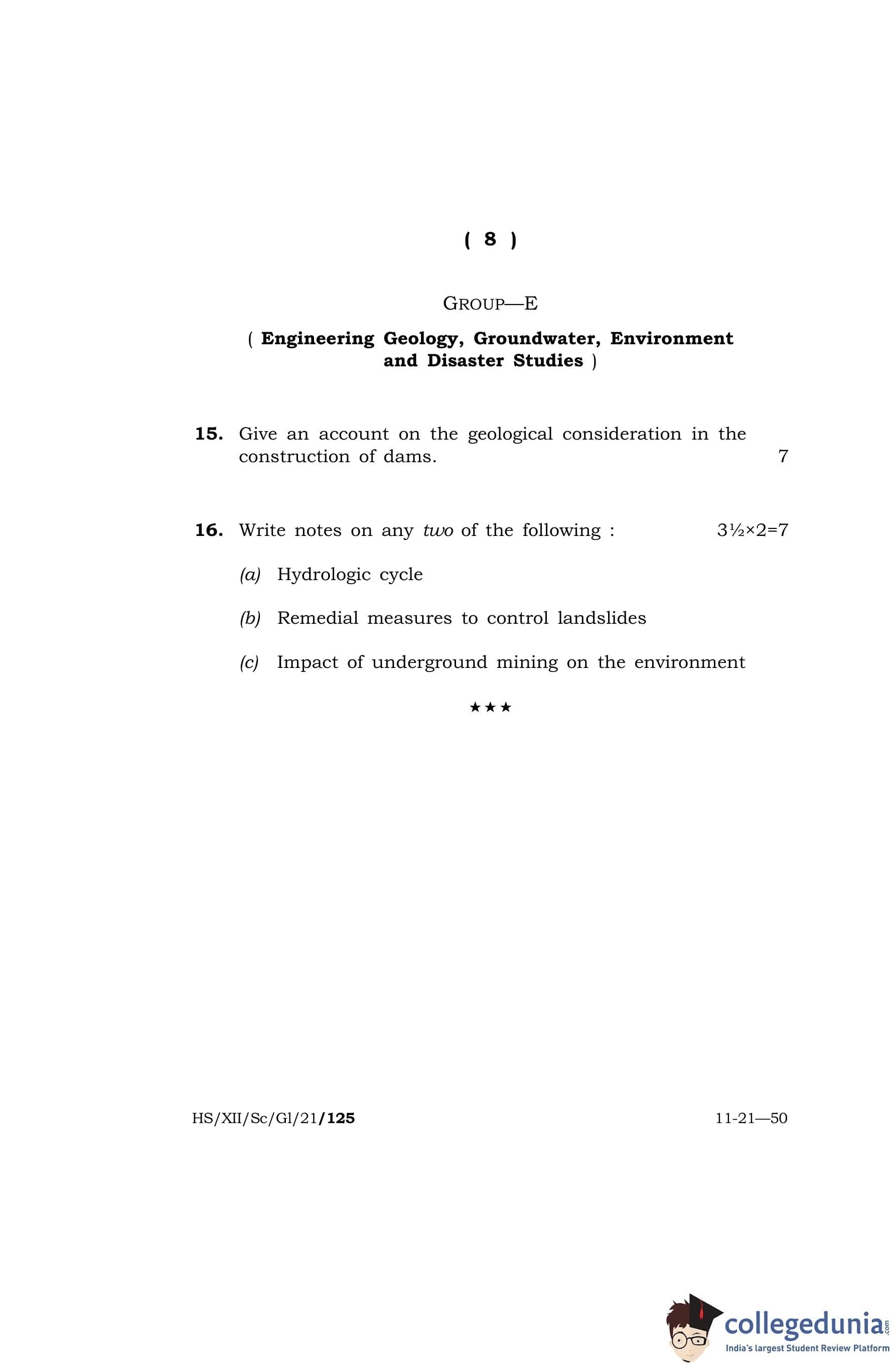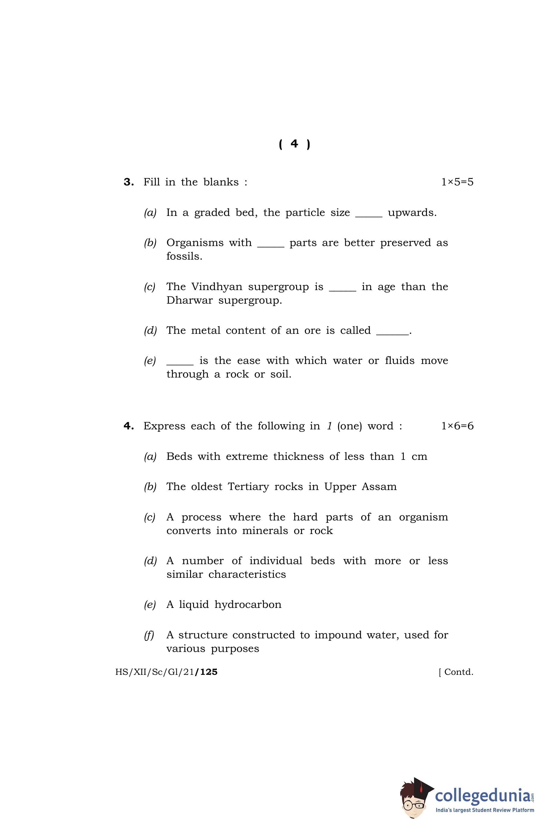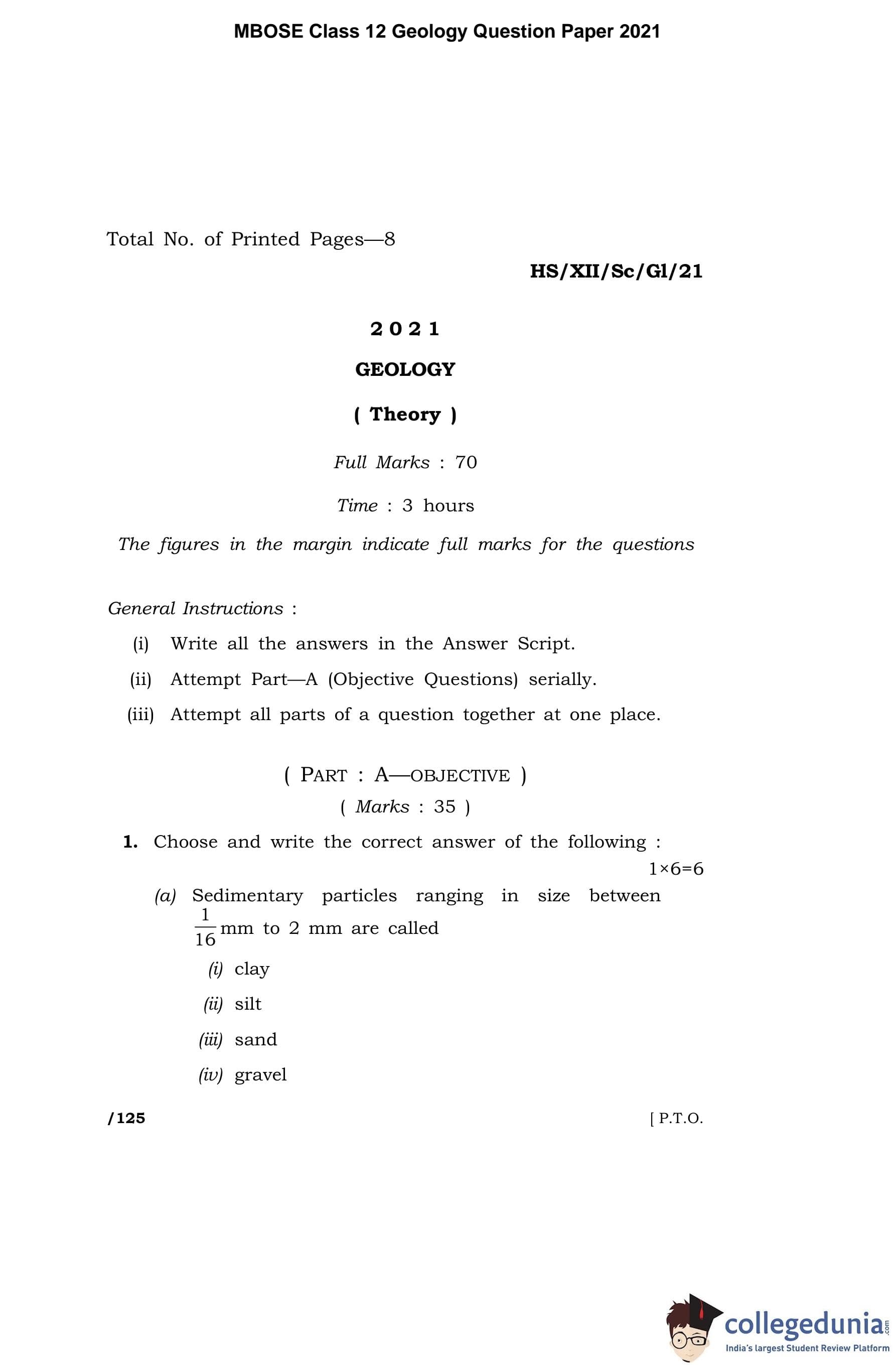 MBOSE Class 12 Geology Question Paper 2021 with Answer Key pdf is available for download here. The exam was conducted by Meghalaya Board of School Education on April 19, 2021 in the Morning Session 10 AM to 1 PM. The question paper comprised a total of 16 questions divided among 2 sections.