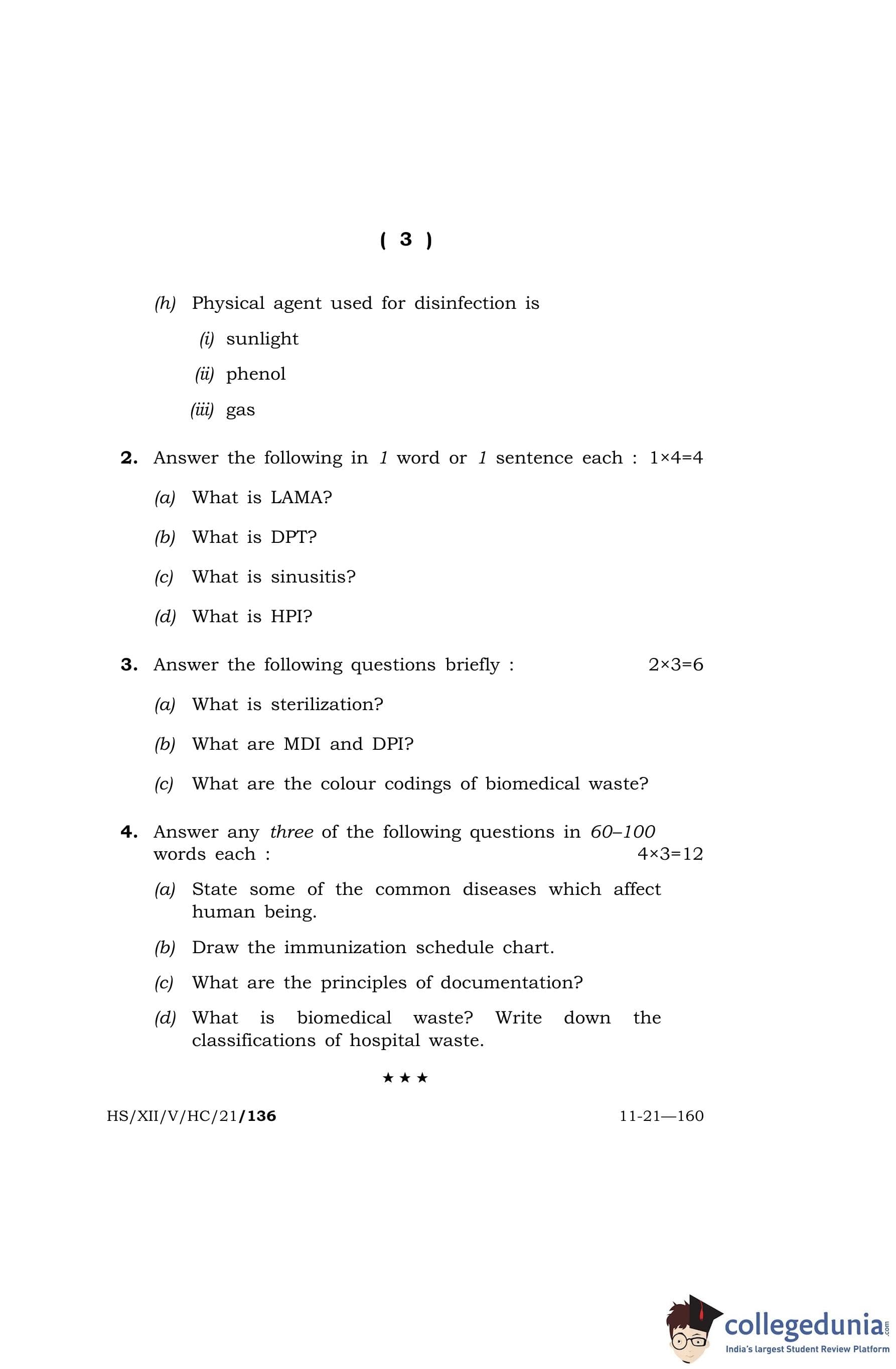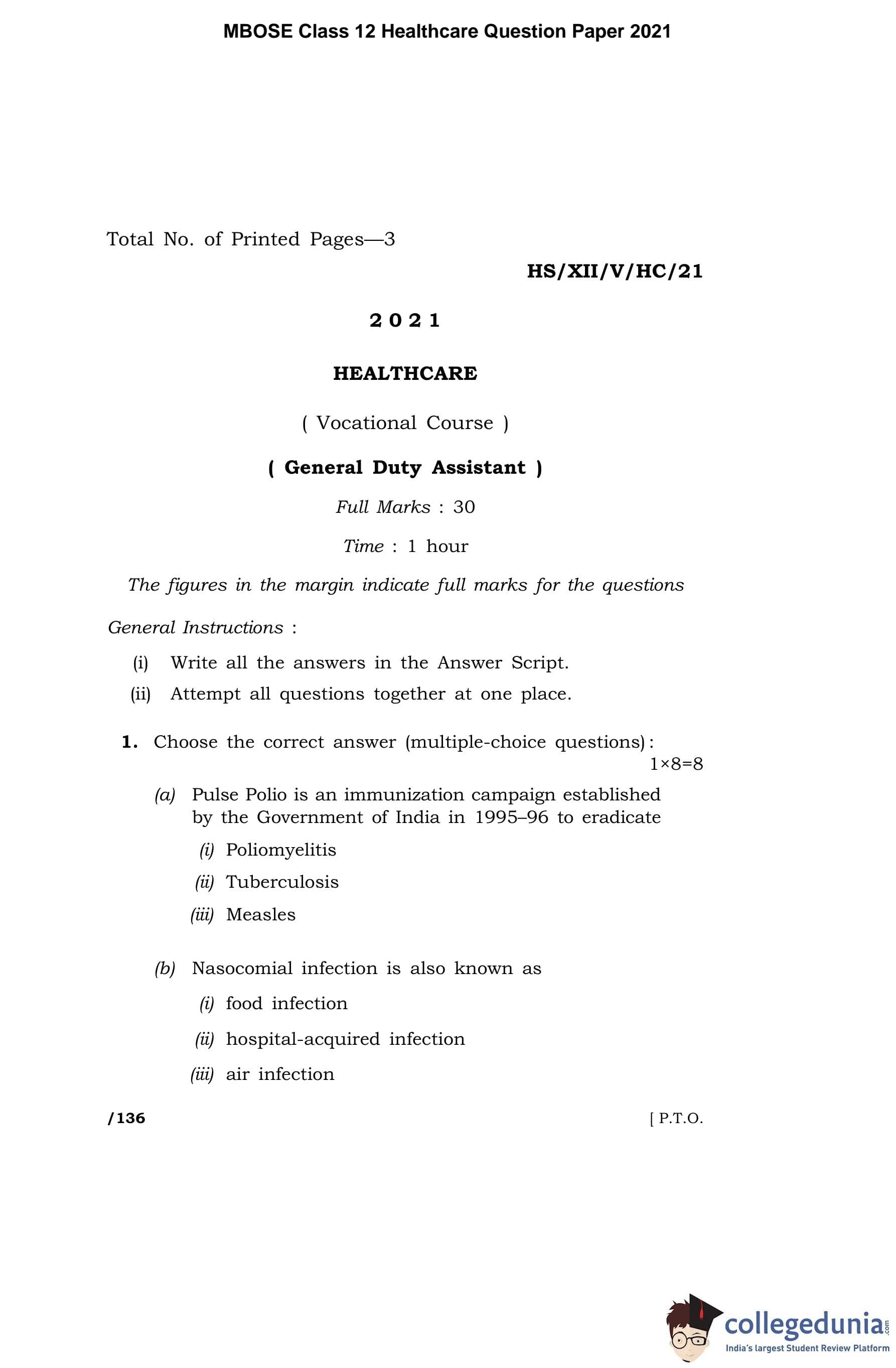 MBOSE Class 12 Healthcare Question Paper 2021 with Answer Key