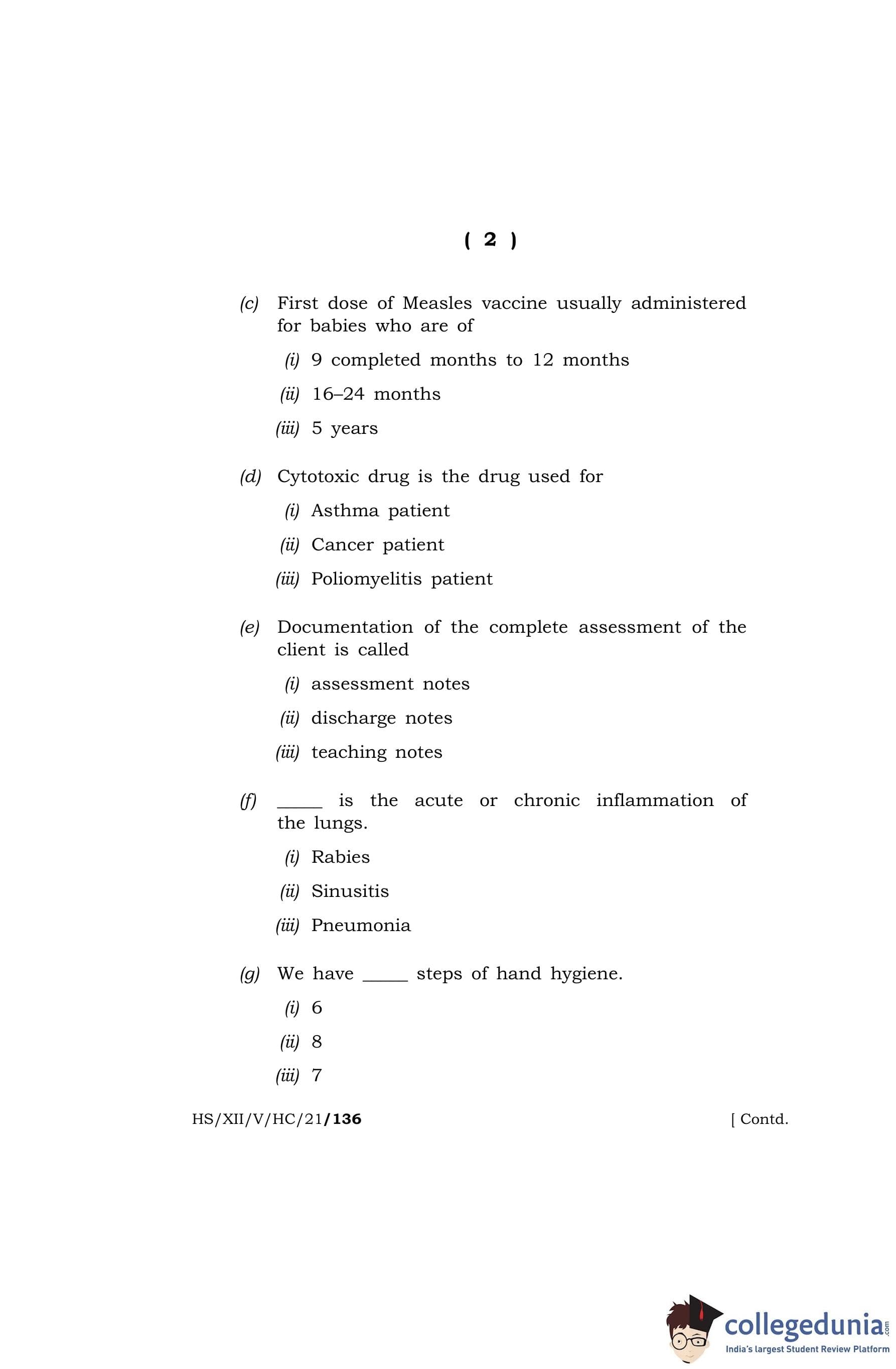 MBOSE Class 12 Healthcare Question Paper 2021 with Answer Key pdf is available for download here. The exam was conducted by Meghalaya Board of School Education on May 10, 2021 in the Morning Session 10 AM to 11 AM. The question paper comprised a total of 4 questions divided among 2 sections.