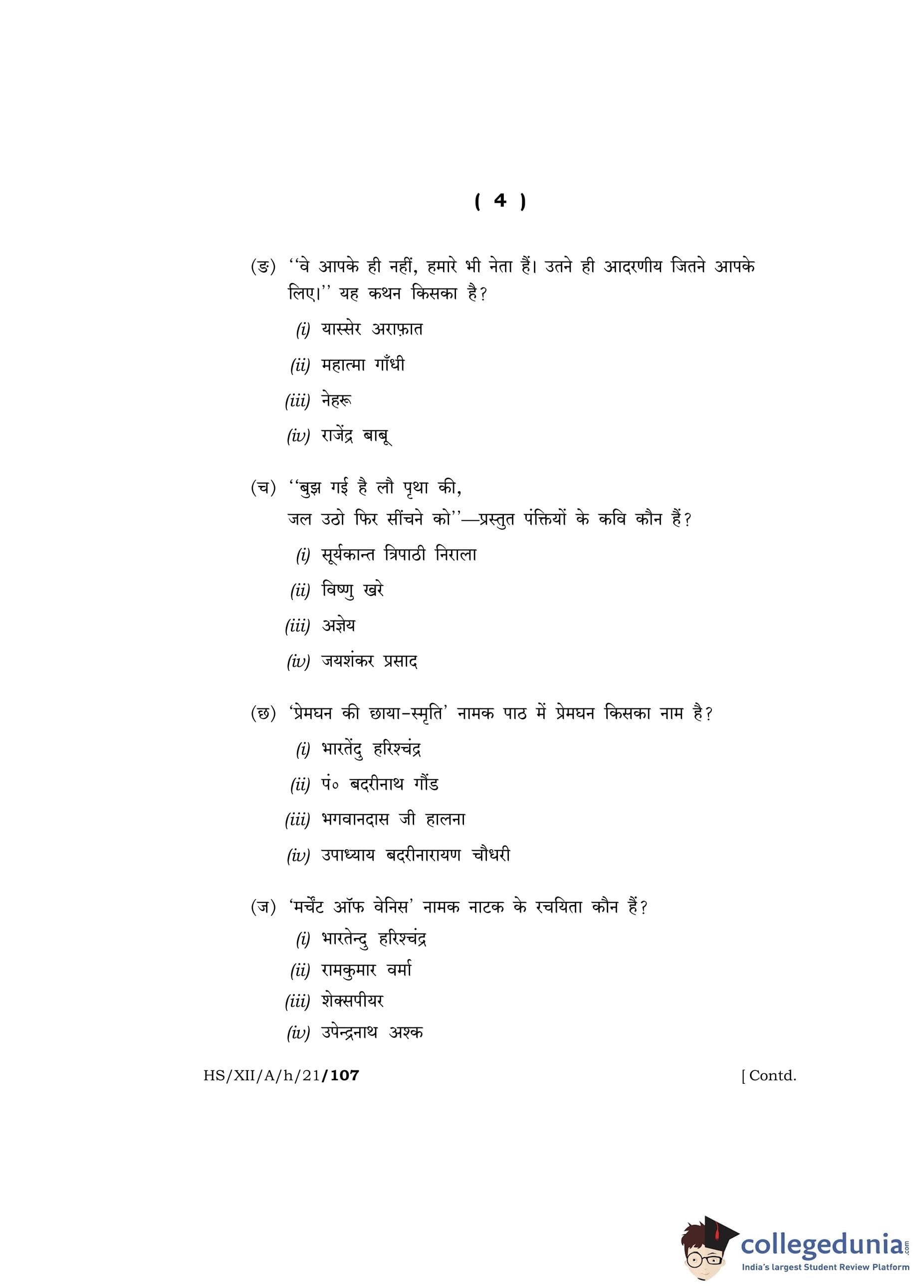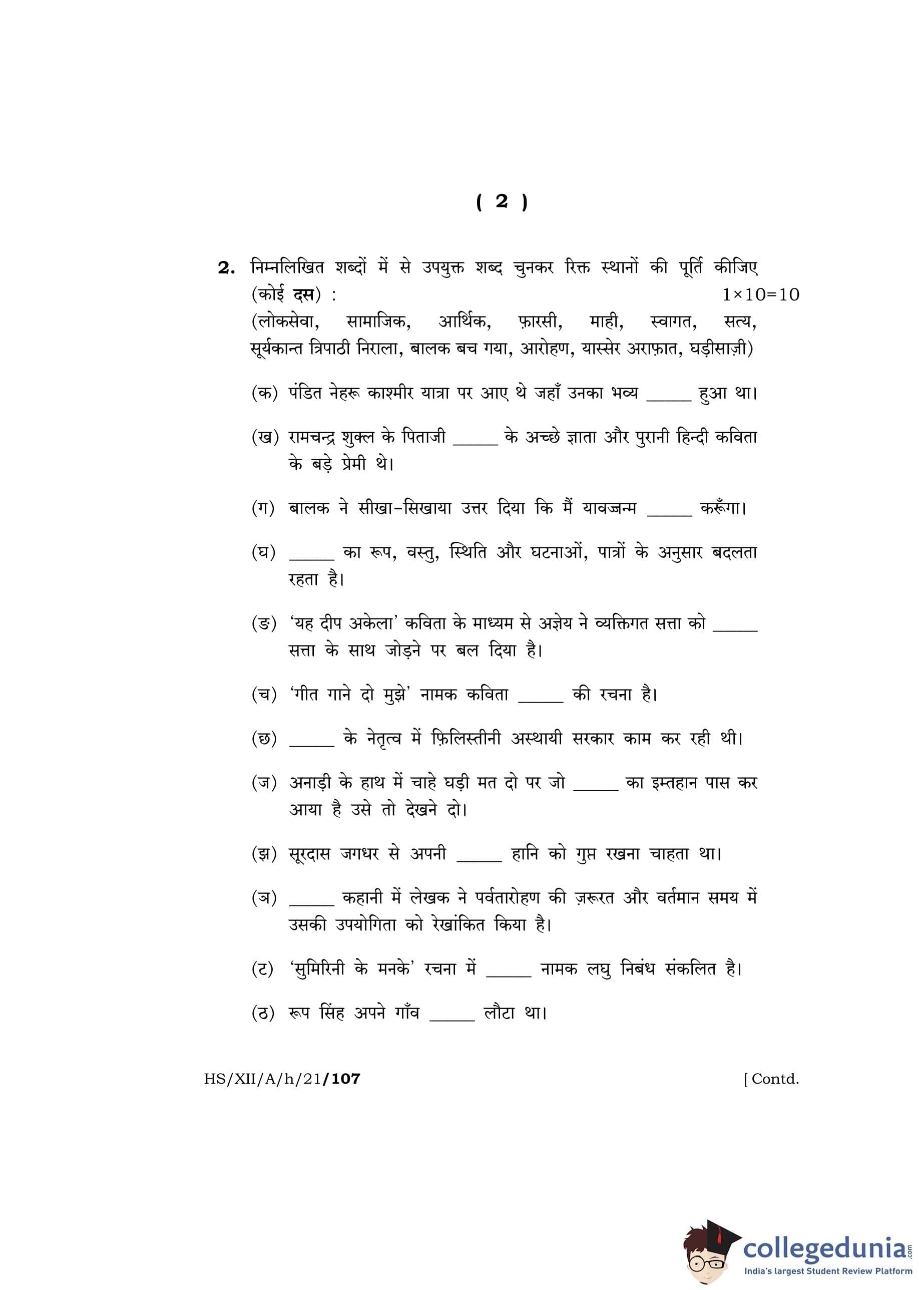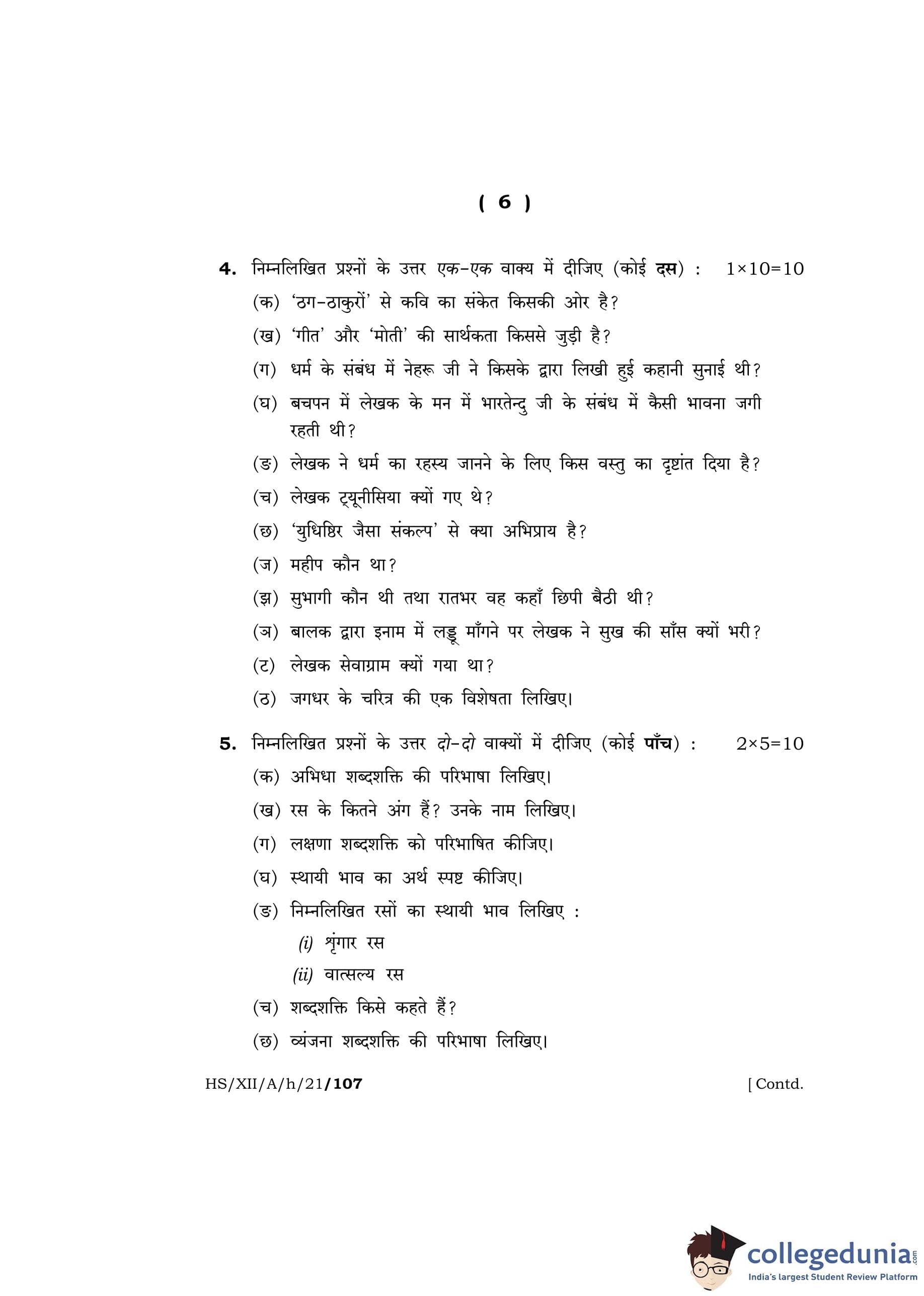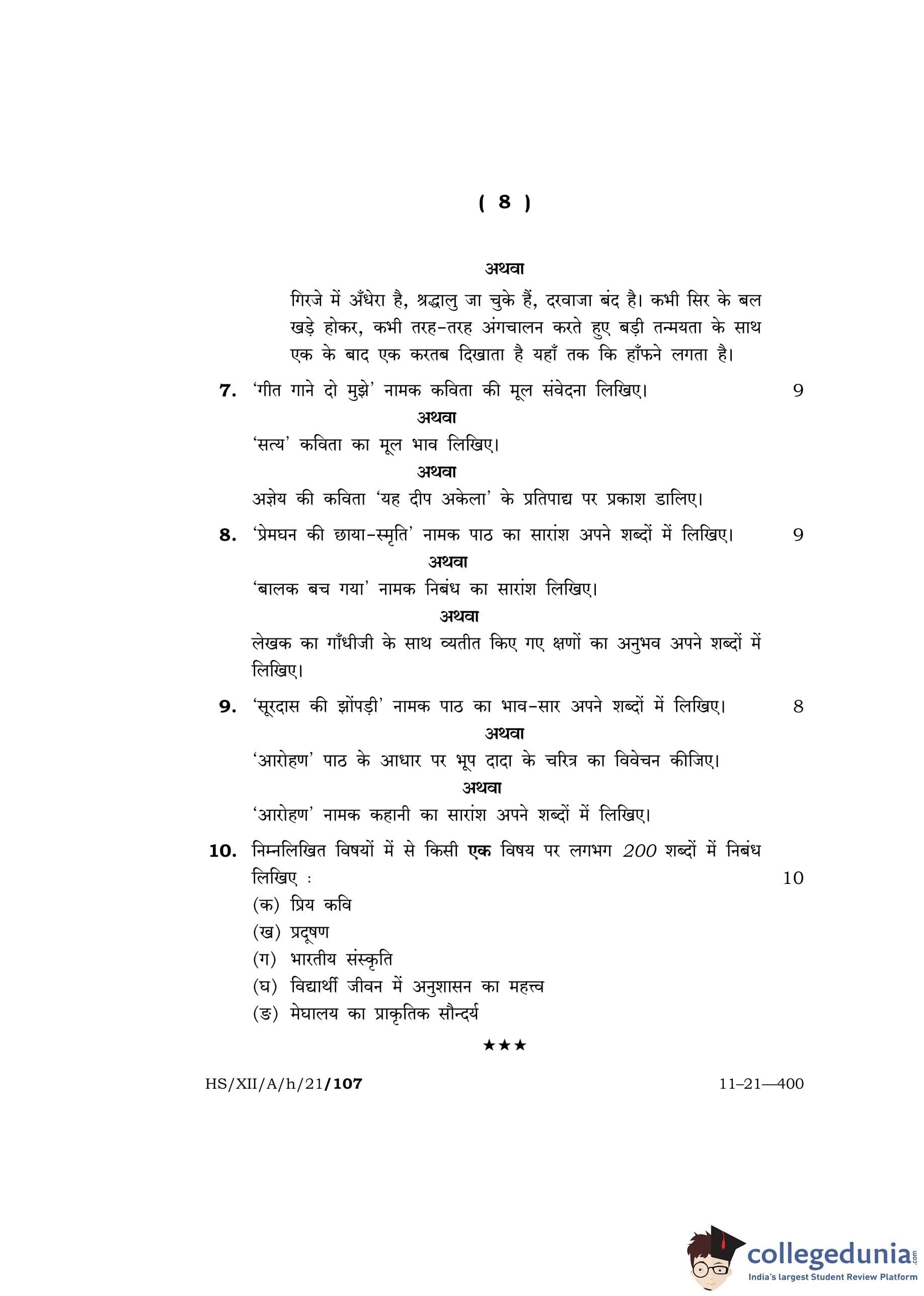 MBOSE Class 12 Hindi (Elective) Question Paper 2021 with Answer Key pdf is available for download here. The exam was conducted by Meghalaya Board of School Education on April 22, 2021 in the Morning Session 10 AM to 1 PM. The question paper comprised a total of 10 questions.