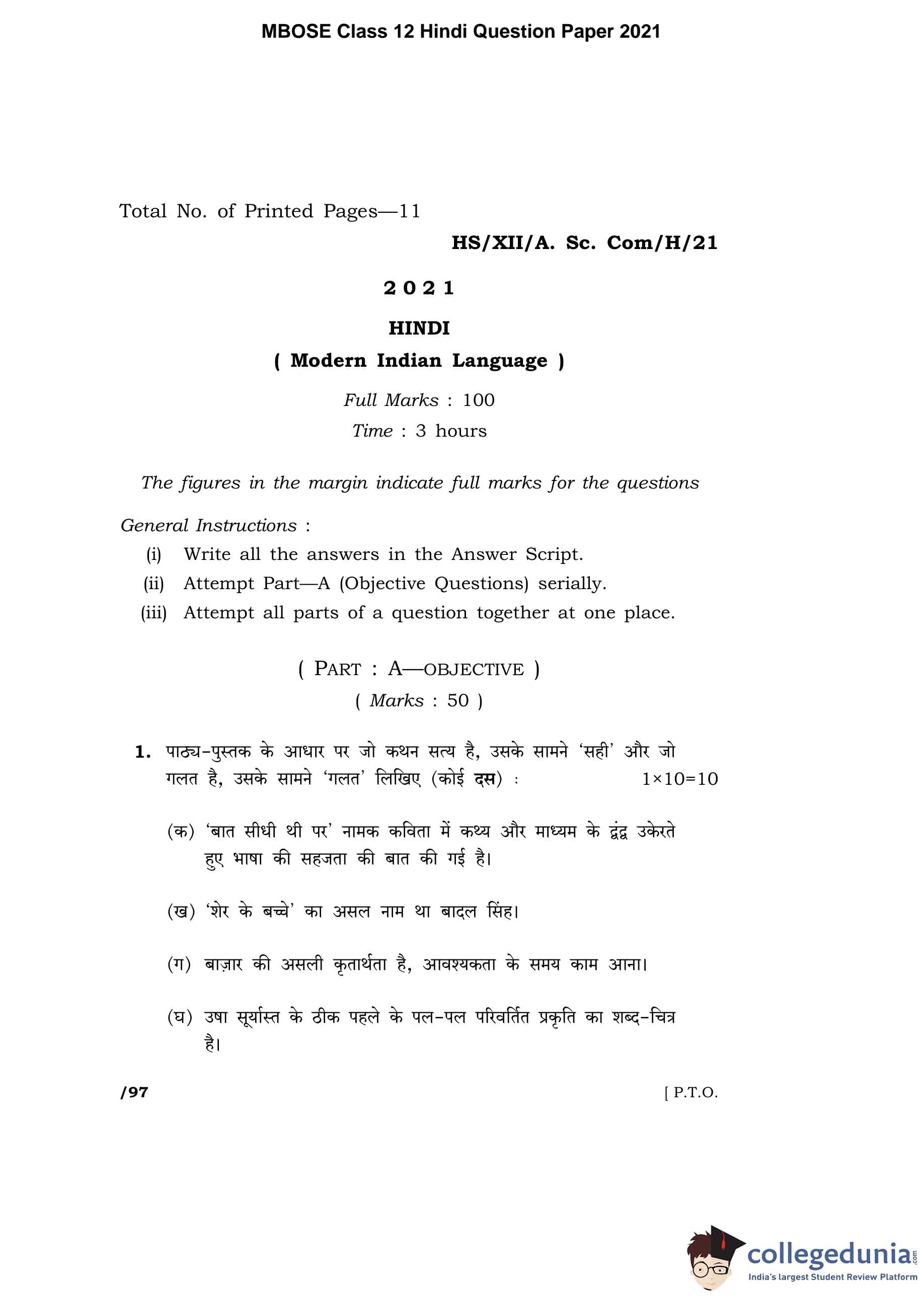 | MBOSE Class 12 Hindi Question Paper 2021 PDF | MBOSE Class 12 Hindi Answer Key 2021 PDF |