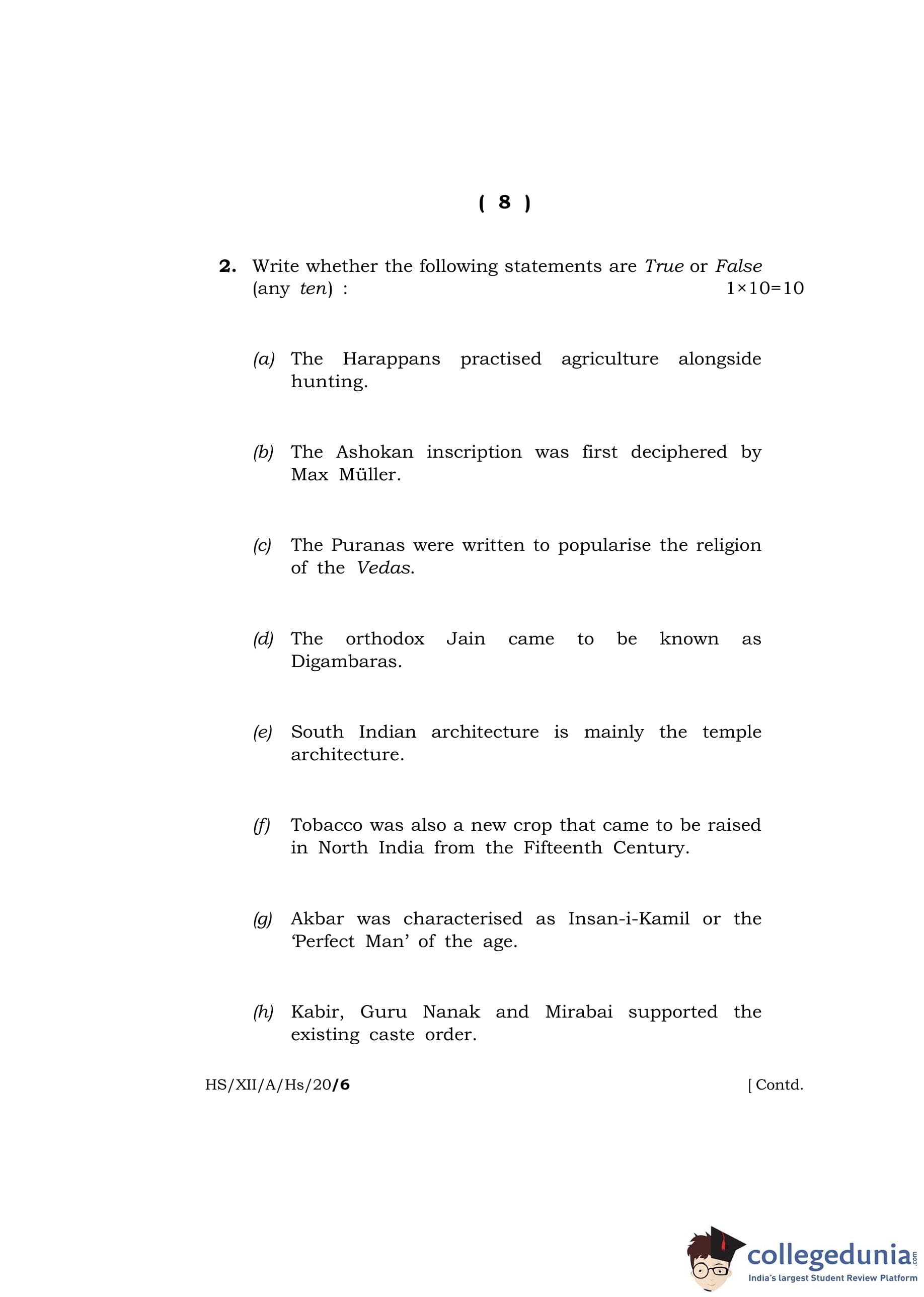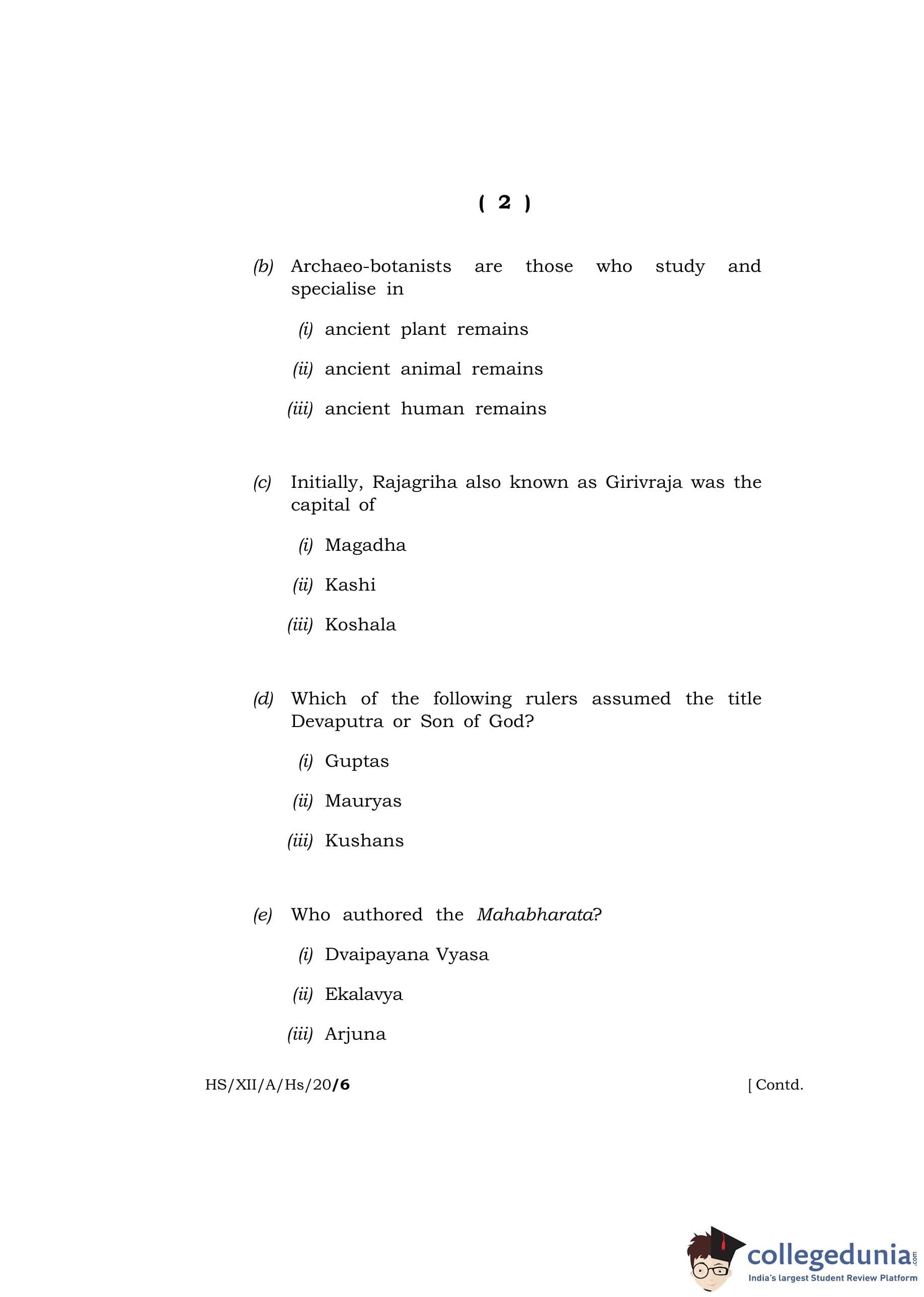 MBOSE Class 12 History Question Paper 2020 with Answer Key pdf is available for download here. The exam was conducted by Meghalaya Board of School Education on March 9, 2020 in the Morning Session 10 AM to 1 PM. The question paper comprised a total of 4 questions divided among 2 sections.