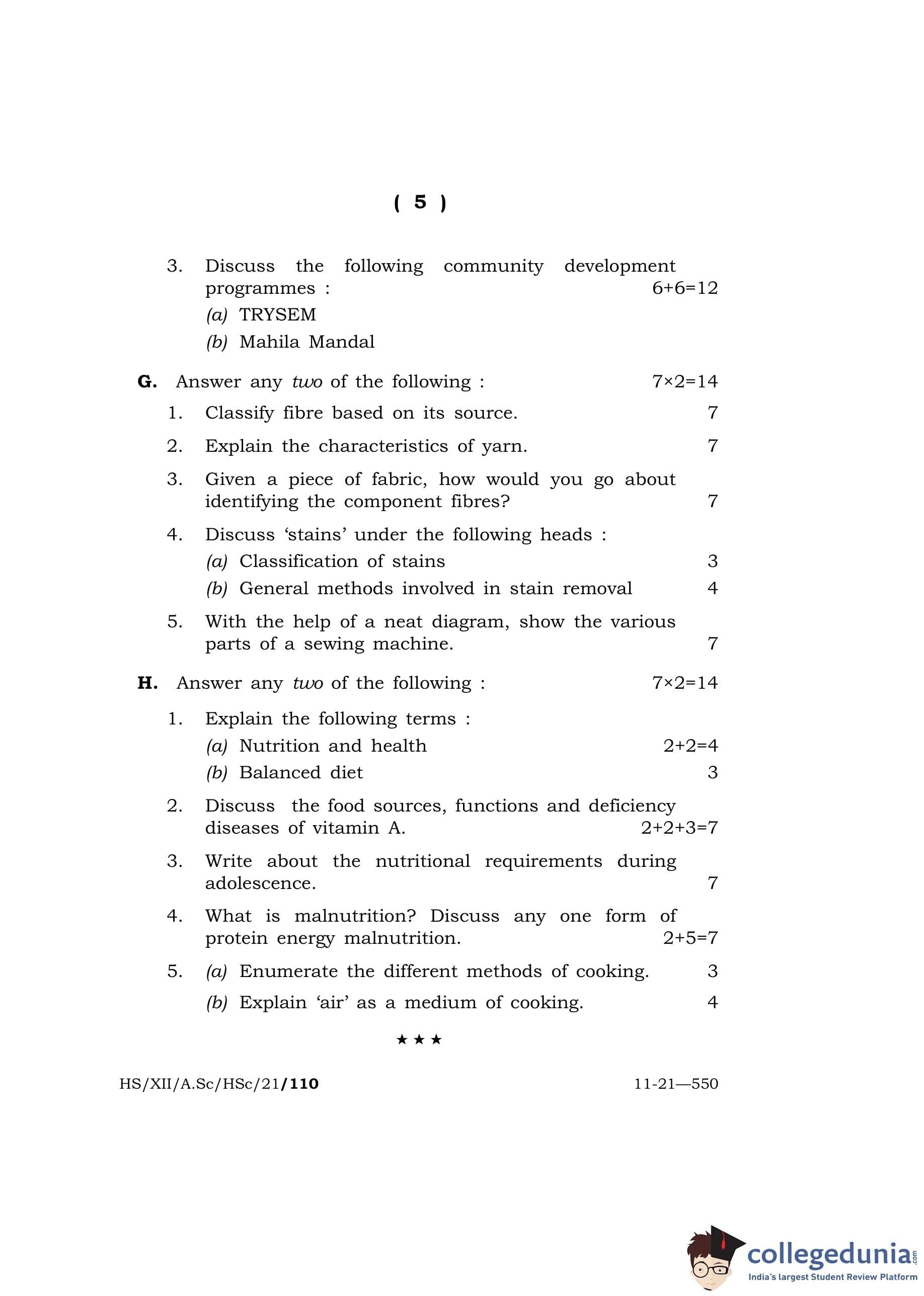 MBOSE Class 12 Home Science Question Paper 2021 with Answer Key pdf is available for download here. The exam was conducted by Meghalaya Board of School Education on May 5, 2021 in the Morning Session 10 AM to 1 PM. The question paper comprised a total of 8 questions divided among 2 sections.