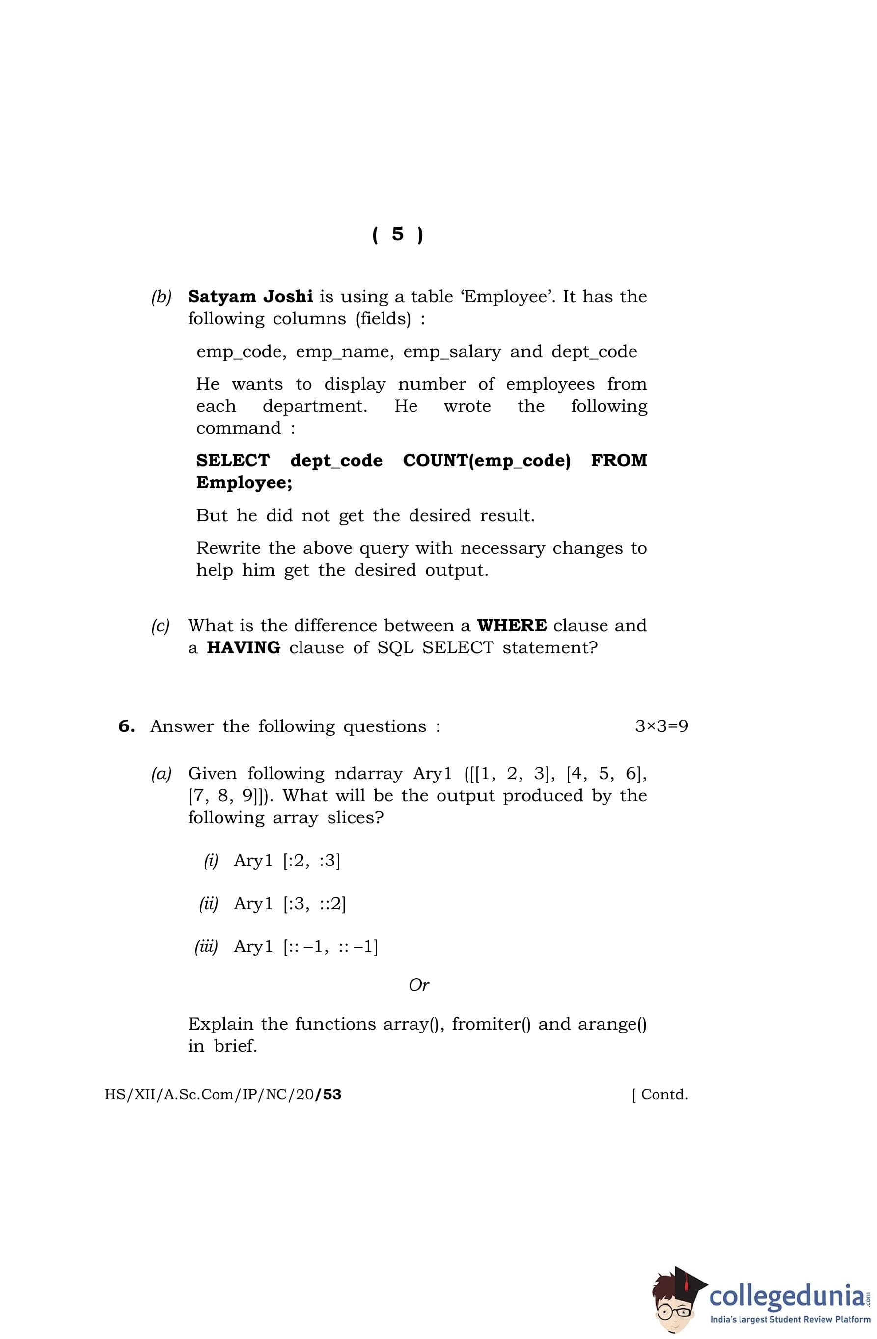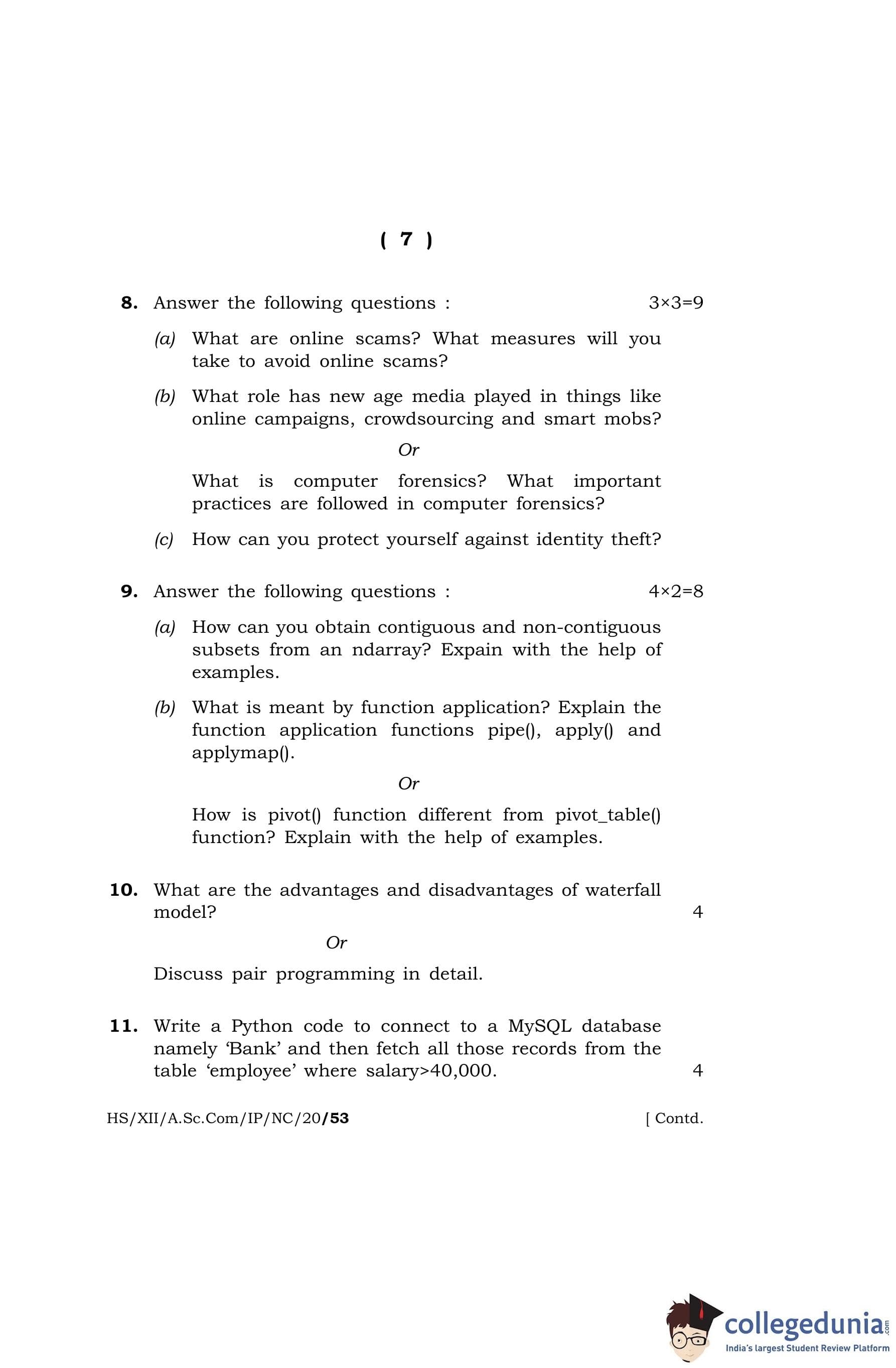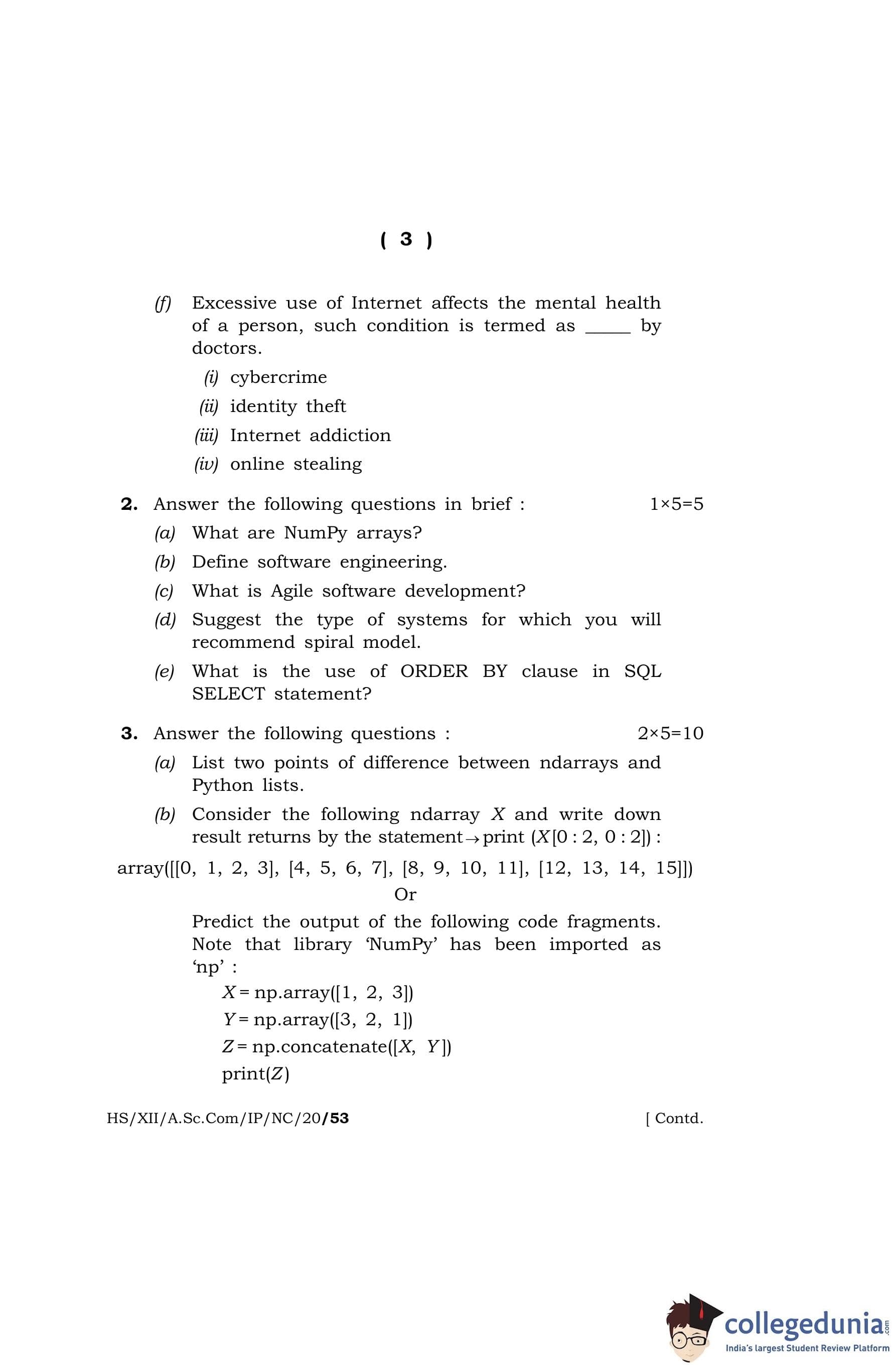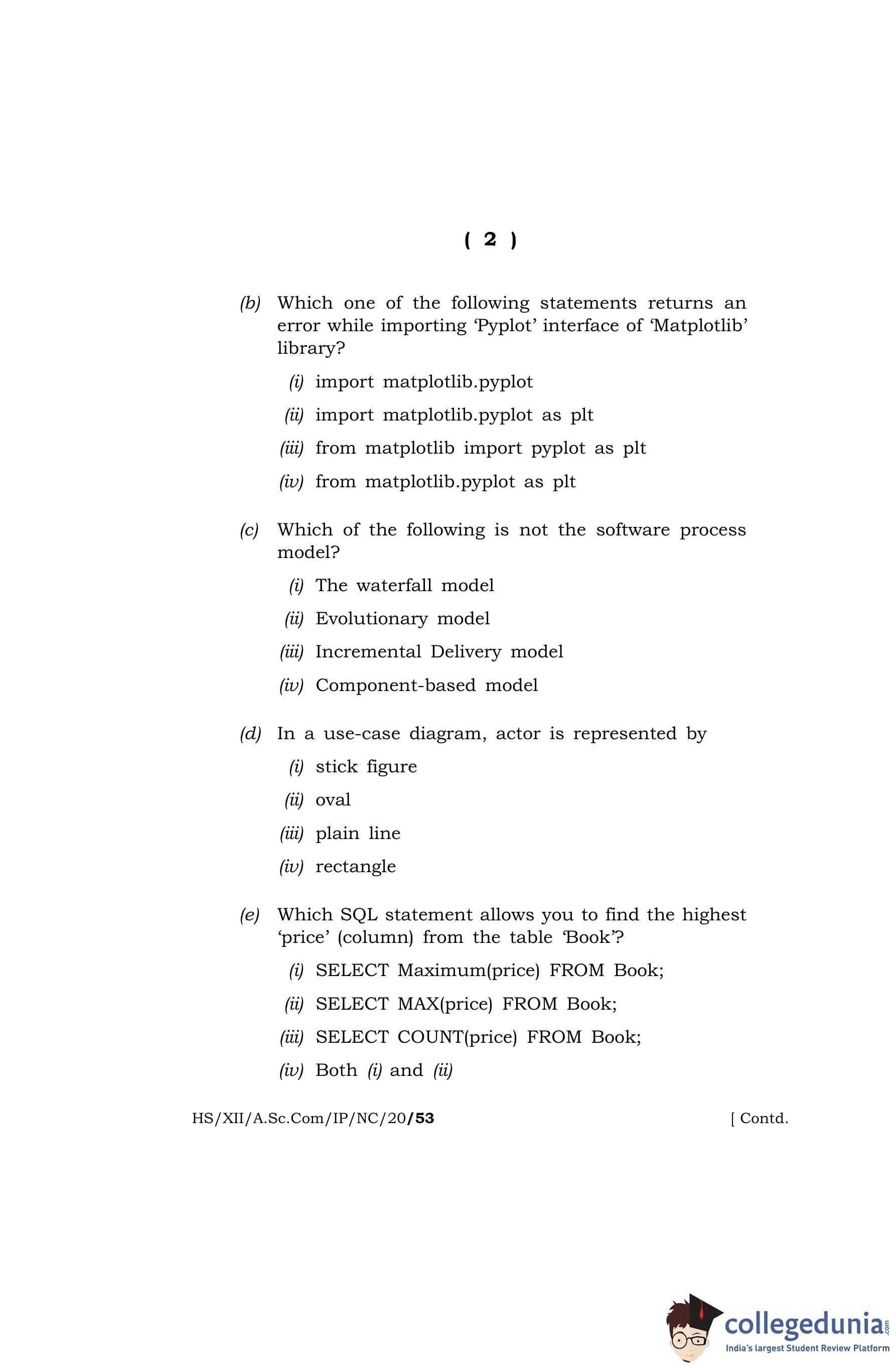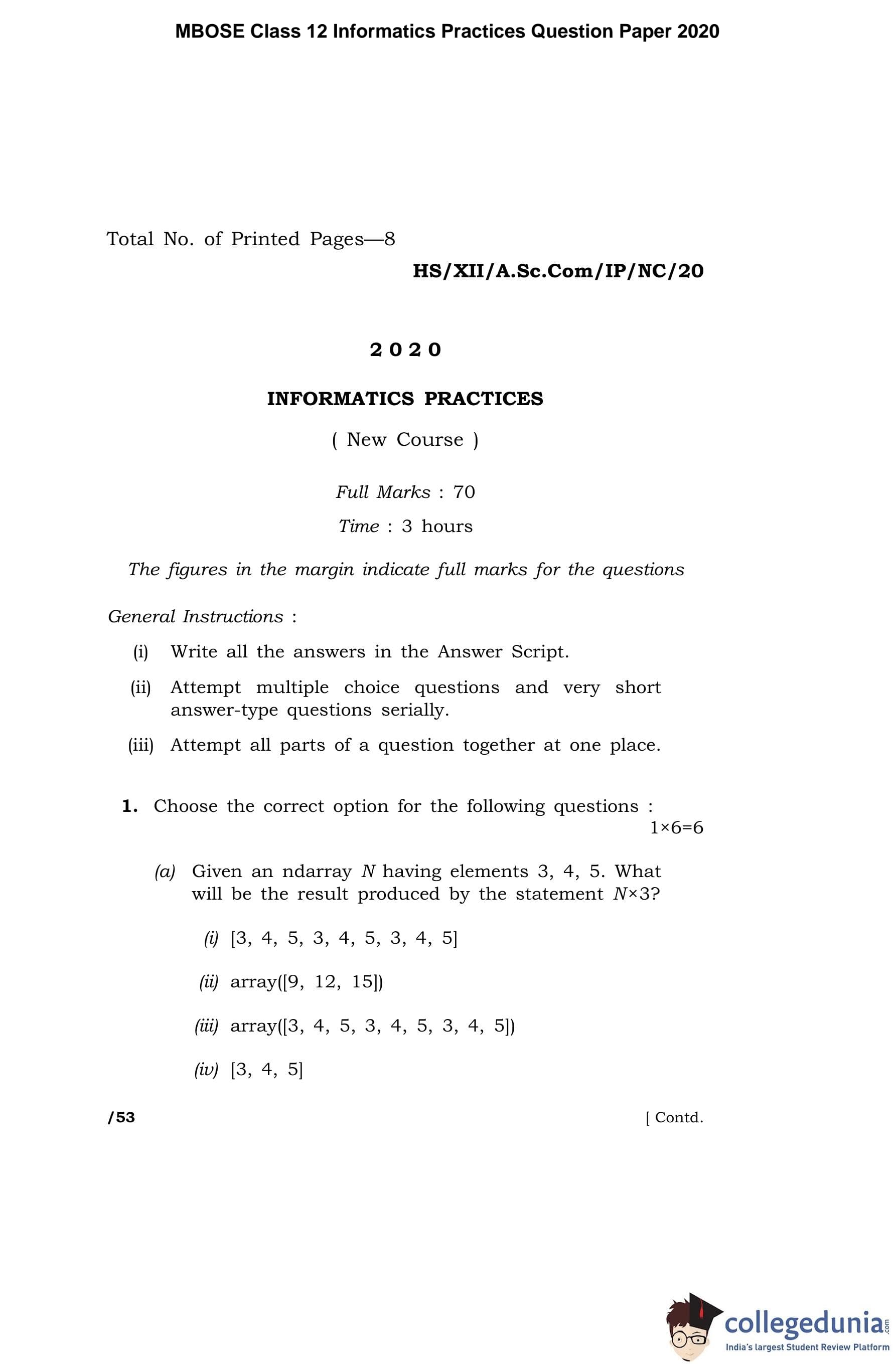 MBOSE Class 12 Informatics Practices Question Paper 2020