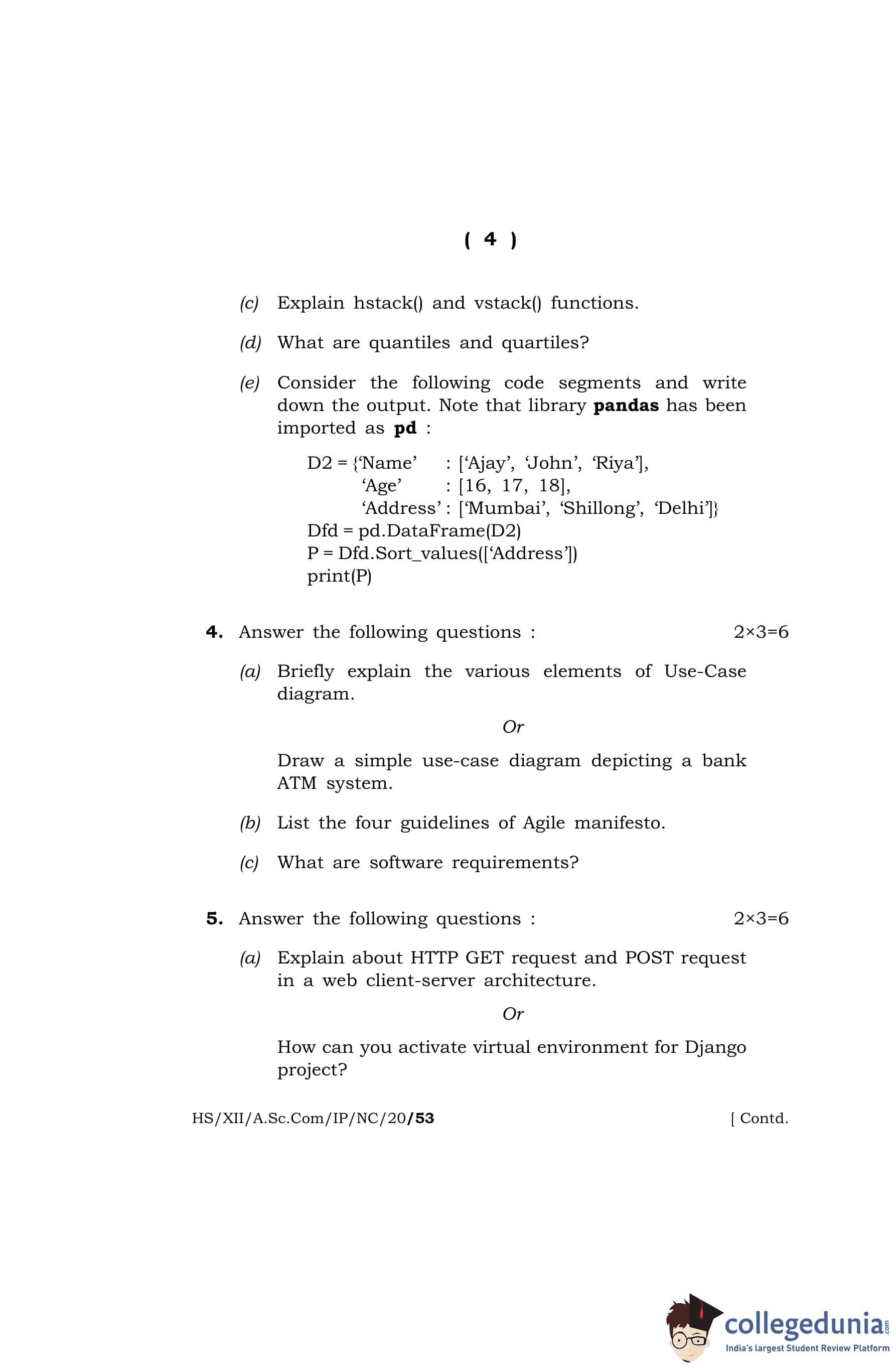 MBOSE Class 12 Informatics Practices Question Paper 2020 with Answer Key pdf is available for download here. The exam was conducted by Meghalaya Board of School Education on March 16, 2020 in the Morning Session 10 AM to 1 PM. The question paper comprised a total of 11 questions.