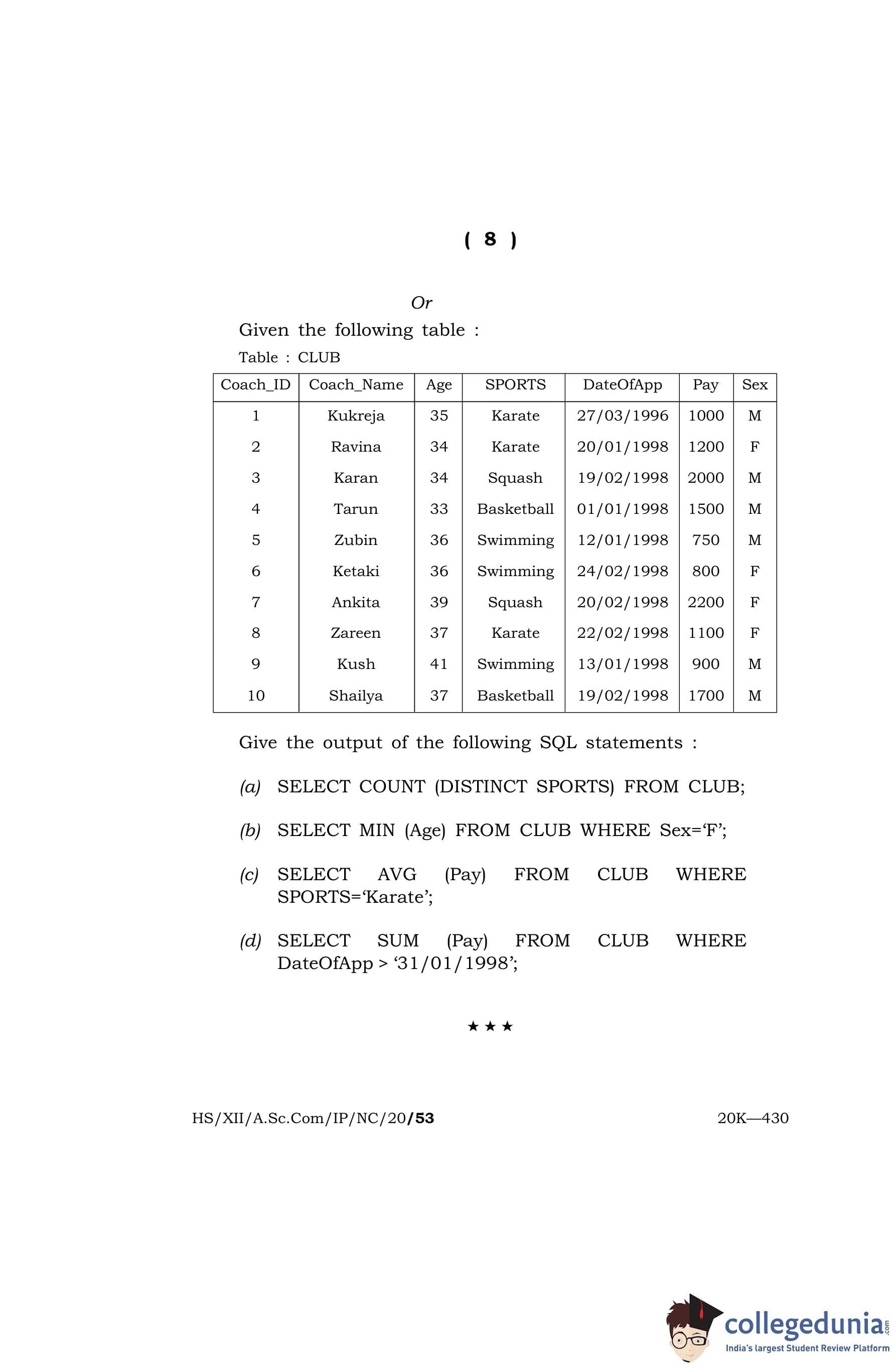 | MBOSE Class 12 Informatics Practices Question Paper 2020 | MBOSE Class 12 Informatics Practices Answer Key 2020 |