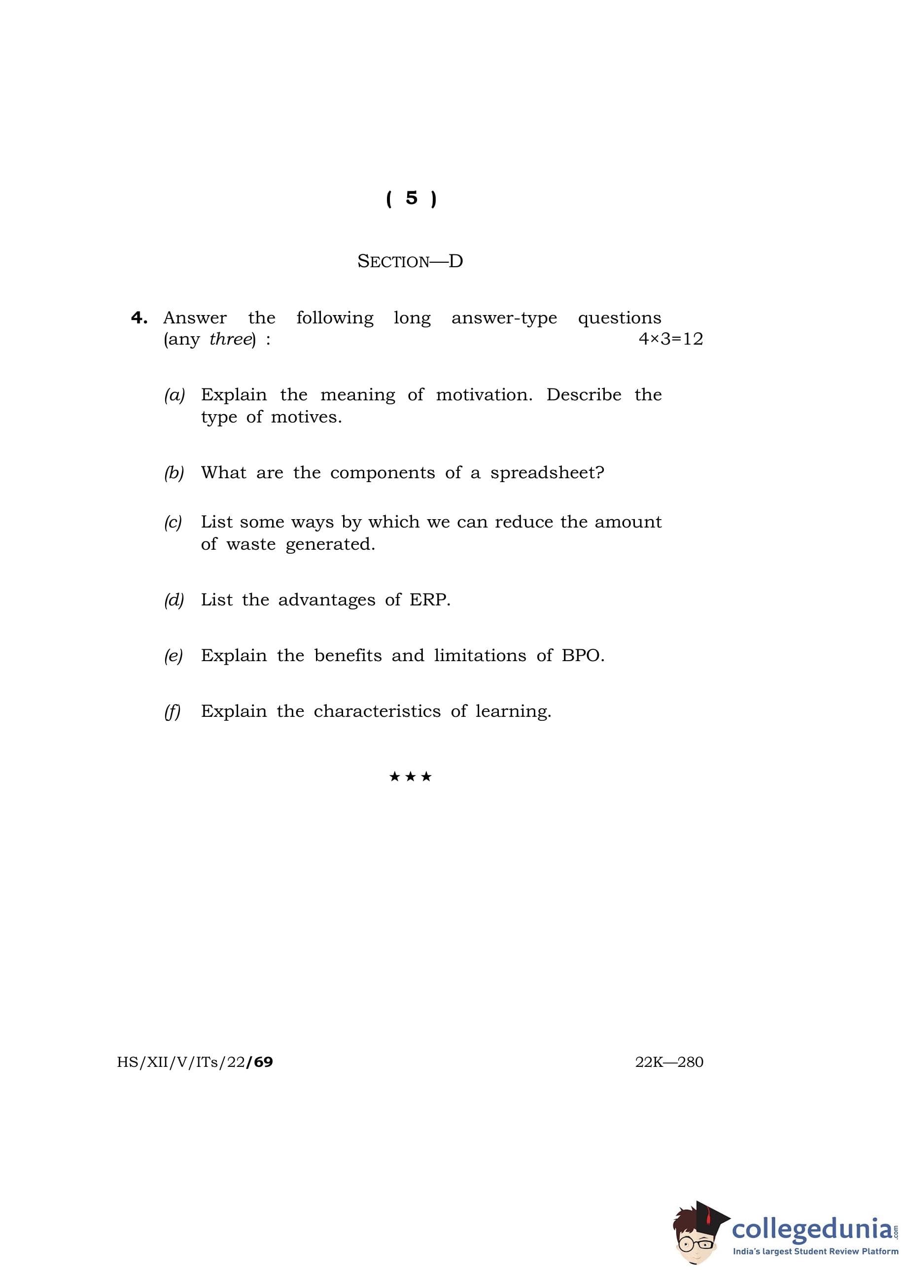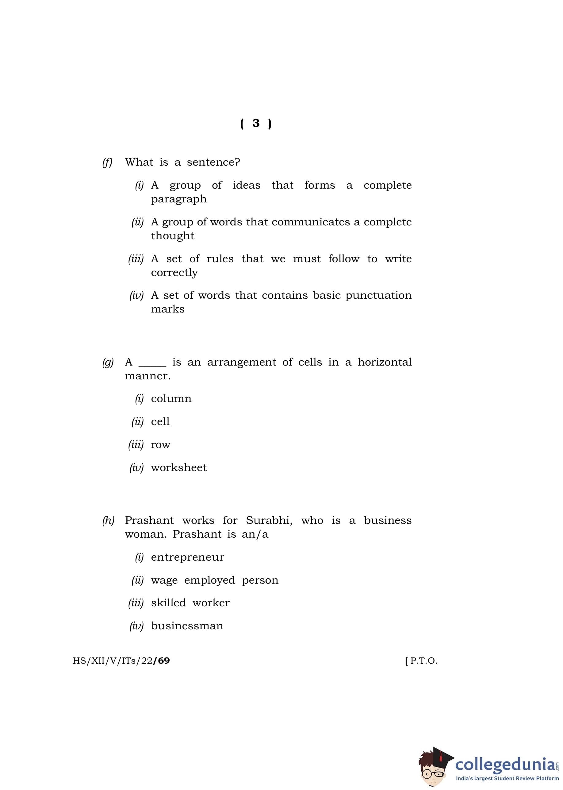 MBOSE Class 12 IT/ITES Question Paper 2022